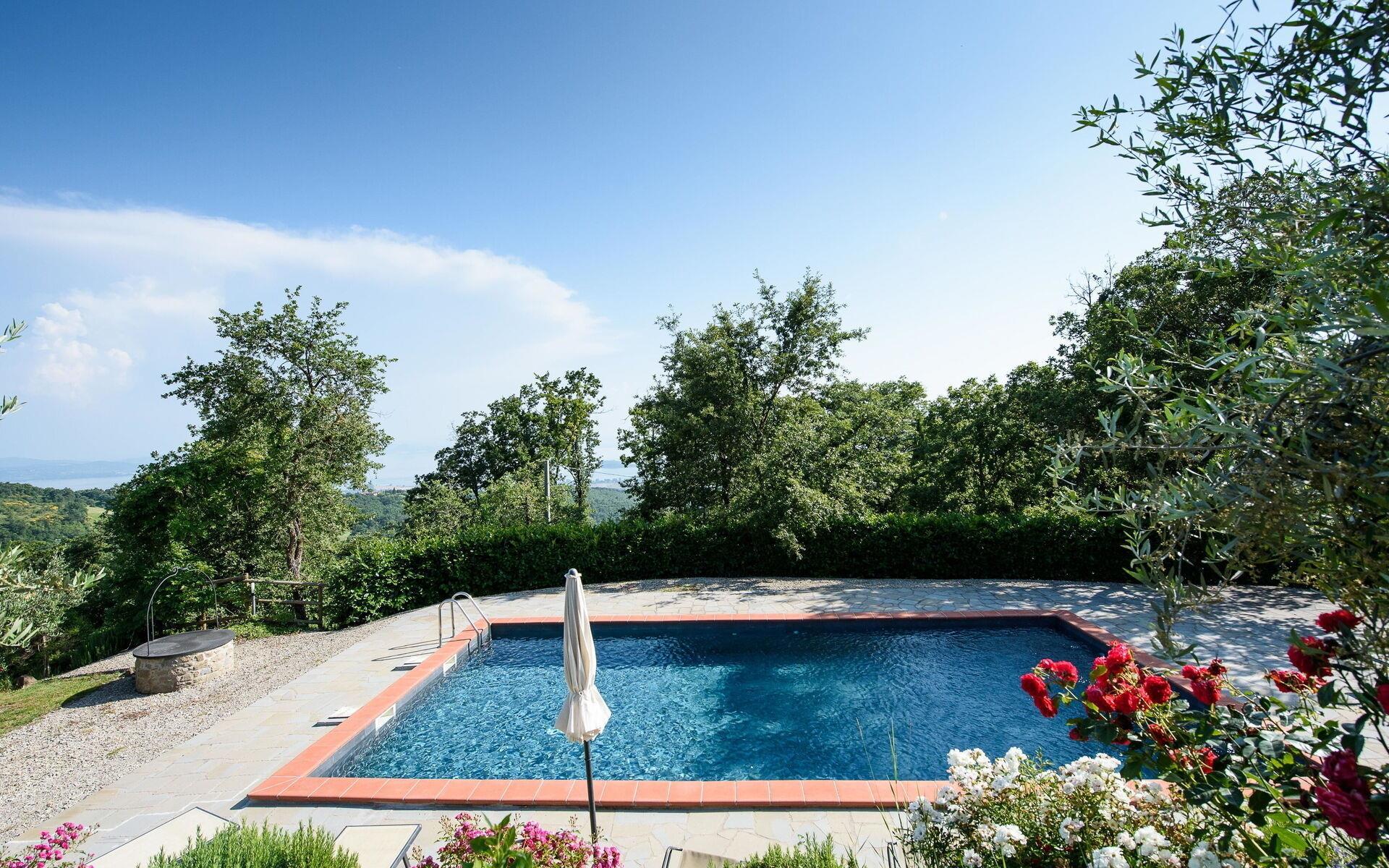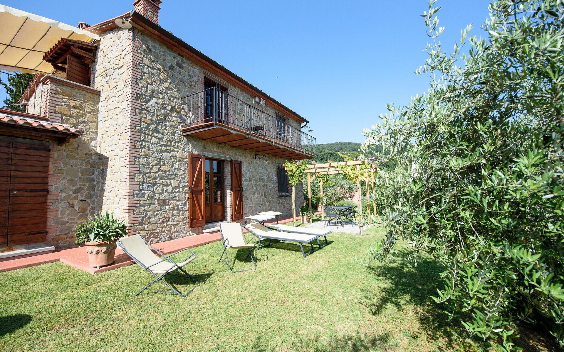 Das Anwesen ist von Olivenbäumen und einem weitläufigen, eleganten Garten umgeben, der vollständig von einer blühenden Hecke begrenzt wird, von der aus Sie Zugang zum schönen Swimmingpool (5 x 10 Meter - feste Tiefe 1,50 Meter - geöffnet vom 1. Mai bis 30. September) haben, der den ganzen Tag über der Sonne ausgesetzt ist und mit einer Sonnenterrasse aus toskanischem Serena-Stein und Sonnenschirmen ausgestattet ist, um sich in völliger Ruhe und Privatsphäre zu entspannen.