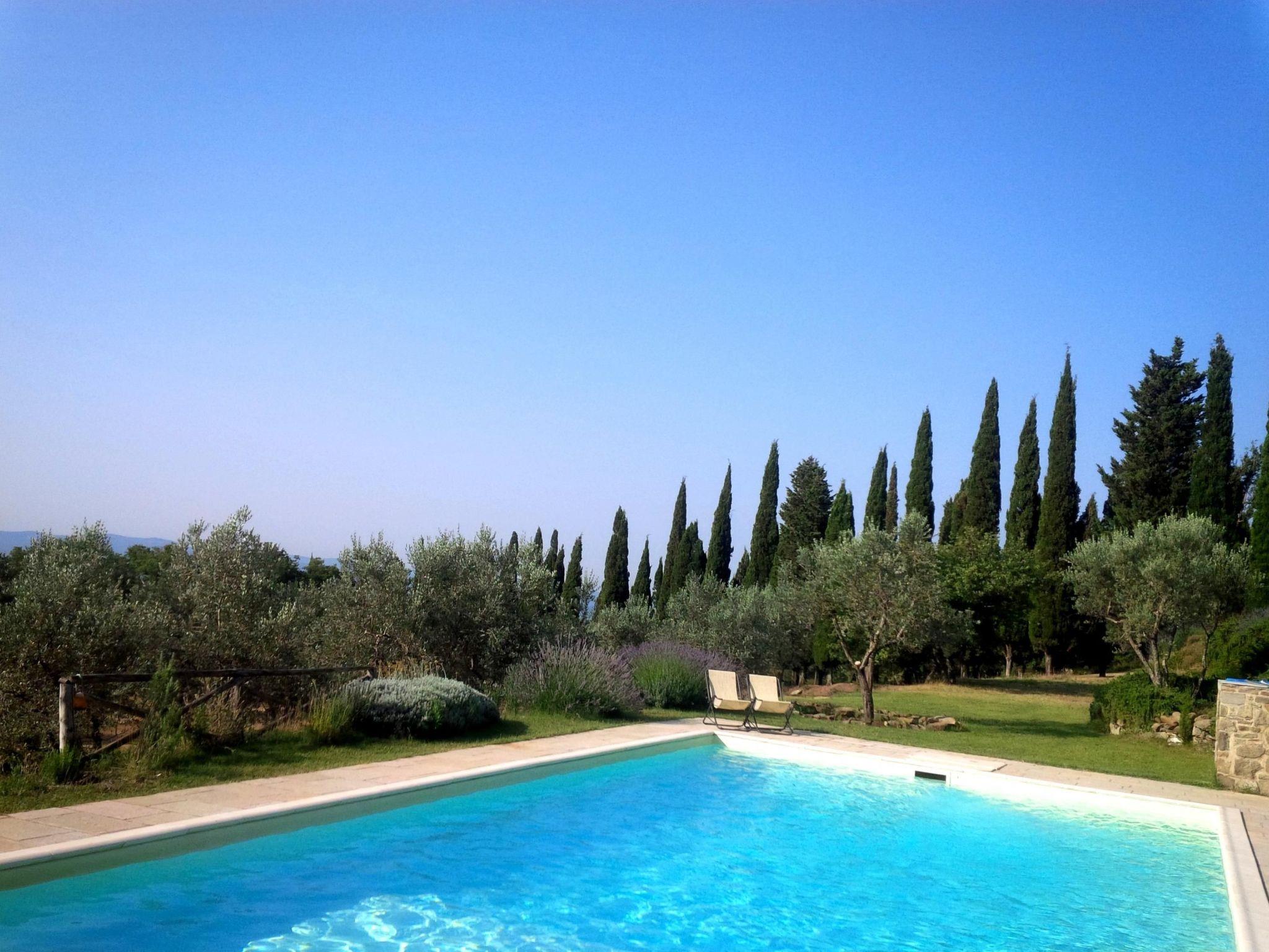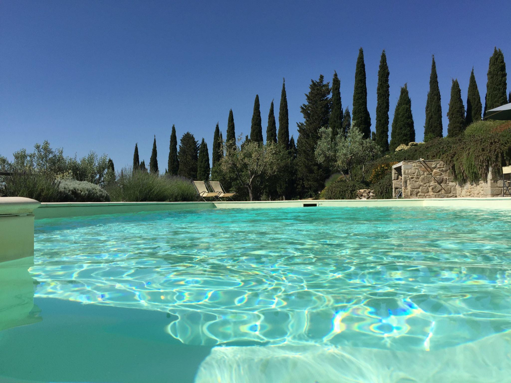 Ein unabhängiges Steingebäude auf dem Landgut Poggio Corsucci, einem Ort von großer natürlicher Schönheit im Herzen der Toskana. Mitten im Grünen, umgeben von großen Rasenflächen, wird es durch eine große Pergola bereichert, von der aus Sie einen unvergesslichen Sonnenuntergang bewundern können. Zwischen Florenz, Siena und Arezzo gelegen, ist es ein hervorragender Ausgangspunkt für die Besichtigung der berühmtesten Kunst- und Kulturzentren, für die Organisation von Wein- und Gastronomietouren in Mittelitalien und für die totale Entspannung am Rande eines von jahrhundertealten Olivenbäumen und Zypressen umgebenen Swimmingpools.