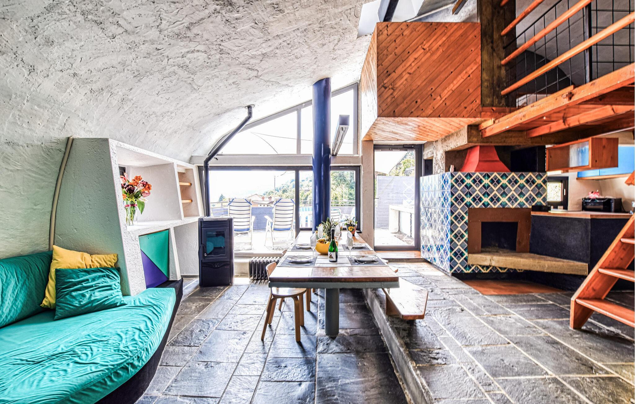 Erleben Sie einen unvergesslichen Urlaub in dieser einzigartigen POP ART Design-Ferienwohnung in Lovere am Iseosee. Ihre stilvolle Unterkunft im 70er-Jahre-Design bietet Ihnen nicht nur einen atemberaubenden Ausblick auf den See, sondern auch eine Terrasse, die mit einem Kinderpool ausgestattet ist. Genießen Sie Ihre Mahlzeiten im Freien, während Sie den Panoramablick auf das Wasser und die umliegenden Berge bewundern. Nutzen Sie den offenen Wohnbereich, der mit seinem charmanten Retro-Stil eine einladende Atmosphäre schafft, um gesellige Abende zu verbringen.