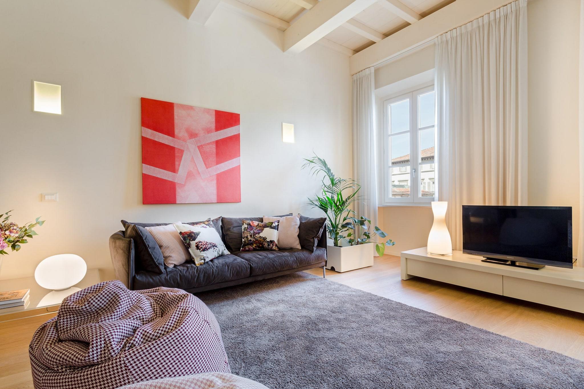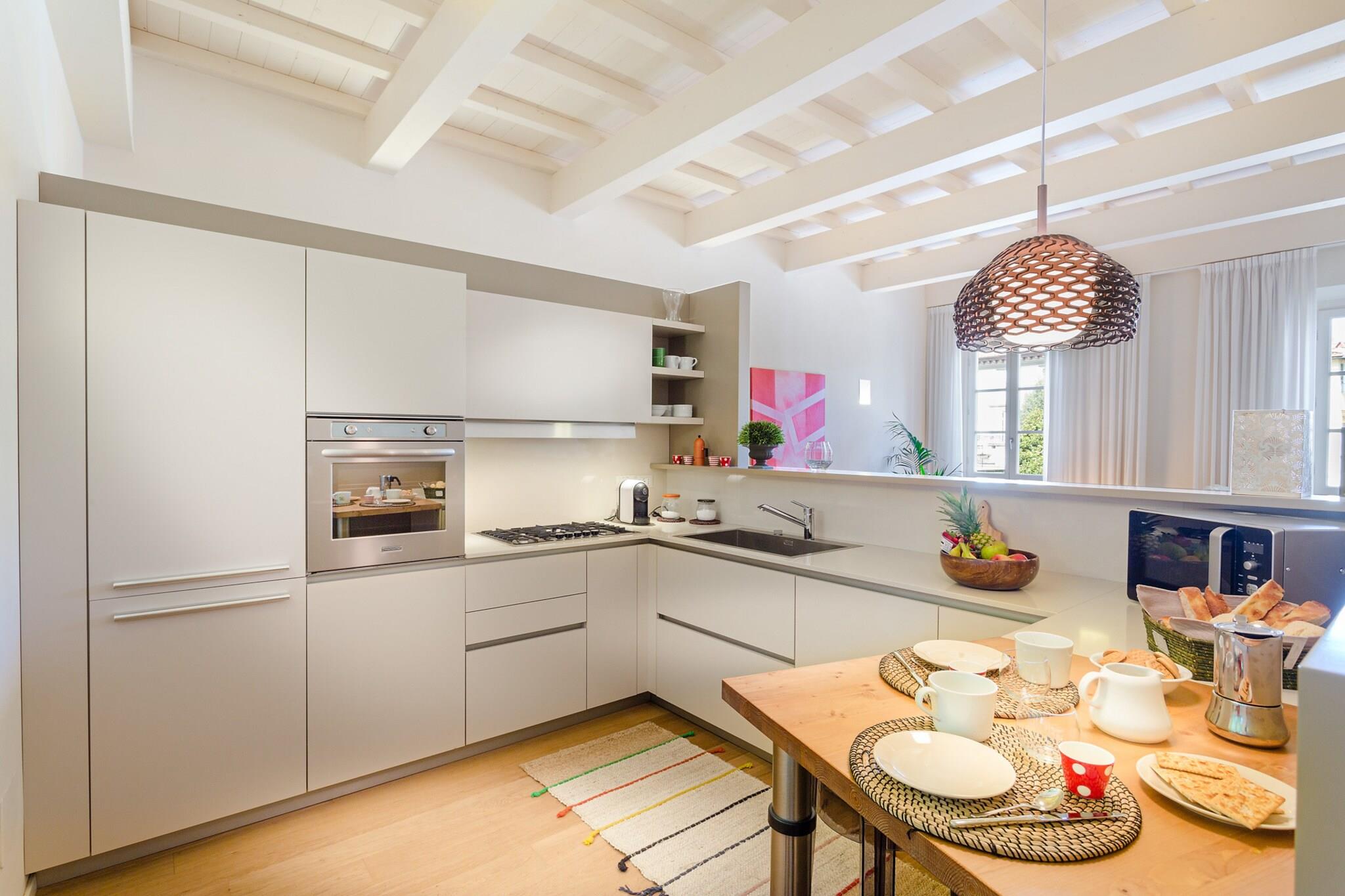 Betreten Sie dieses geräumige und gehobene, moderne Apartment im zweiten Stock eines historischen Gebäudes mit Aufzug, ideal gelegen an der pulsierenden Piazza San Giovanni. Diese außergewöhnliche Residenz vereint modernen Luxus und zeitlose Eleganz und wurde von einem visionären Architekten sorgfältig entworfen. Jedes Detail dieses Hauses zeugt von Raffinesse und macht es zum perfekten Rückzugsort für alle, die ein gehobenes Wohnerlebnis suchen. Der große Salon bildet das Herzstück der Wohnung und bietet durch zwei große Fenster einen atemberaubenden Blick auf die Piazza San Giovanni. Von diesem Aussichtspunkt aus können Gäste den kunstvollen Marmor der Kirchenfassade bewundern, ein Zeugnis von Luccas reichem architektonischen Erbe aus dem 15. Jahrhundert. Die stilvolle Einrichtung und das einladende Ambiente des Salons schaffen eine elegante Atmosphäre, ideal für gesellige Stunden oder einfach zum Genießen der Schönheit des Platzes. Angrenzend an den Salon befindet sich eine hochmoderne, großzügige Küche mit erstklassigen Geräten und großzügiger Arbeitsfläche – ideal für kulinarische Genüsse. Der Schlafbereich umfasst zwei geräumige Suiten, die jeweils luxuriösen Hotelzimmern ähneln und ruhige Rückzugsorte zum Ausruhen und Entspannen bieten. Die sorgfältig gestalteten Badezimmer verfügen über hochwertige Armaturen für ein perfektes Badeerlebnis. Eines der Schlafzimmer bietet zudem einen charmanten Balkon mit zauberhaftem Blick auf die Kathedrale von Lucca – ein idyllischer Ort für ein gemütliches Frühstück oder einen romantischen Abend. Diese außergewöhnliche Wohnung verkörpert gehobenes Wohnen und ermöglicht es den Bewohnern, in den faszinierenden Reiz der Architektur Luccas einzutauchen. Wunder. Hinweis: Kurtaxe ist vor Ort zu entrichten.