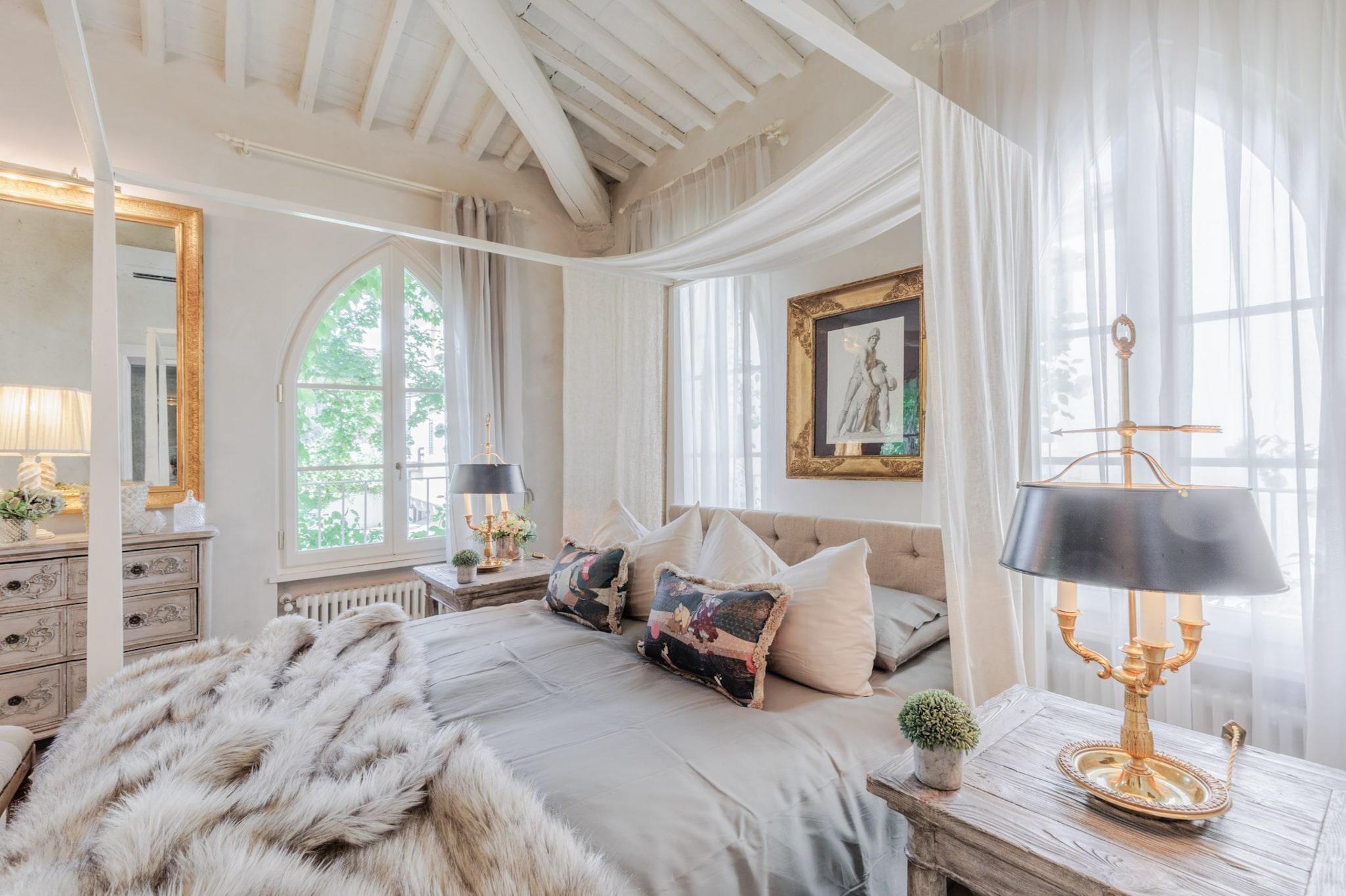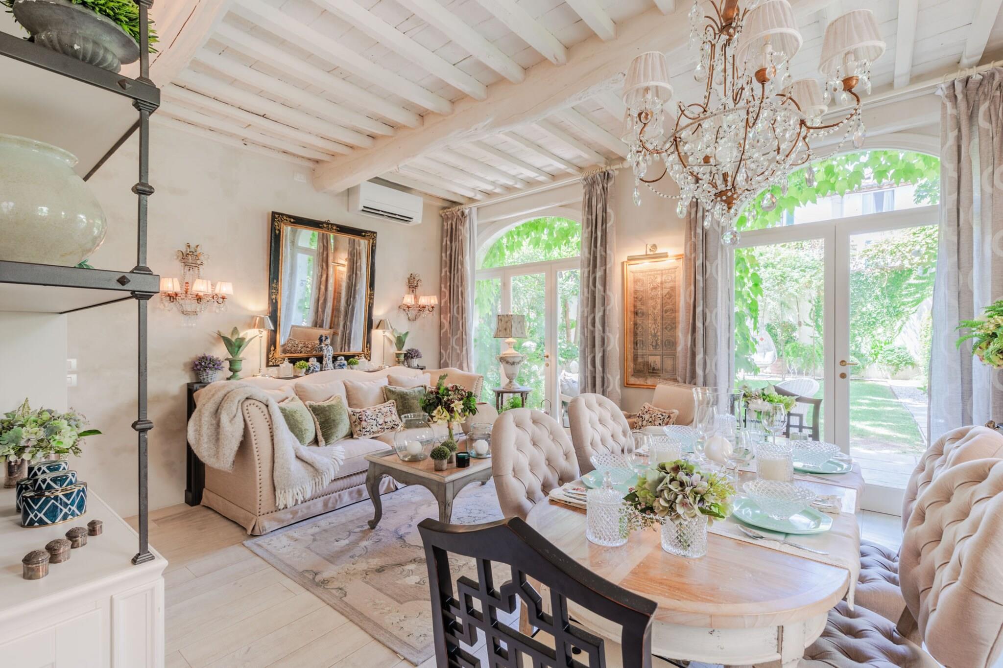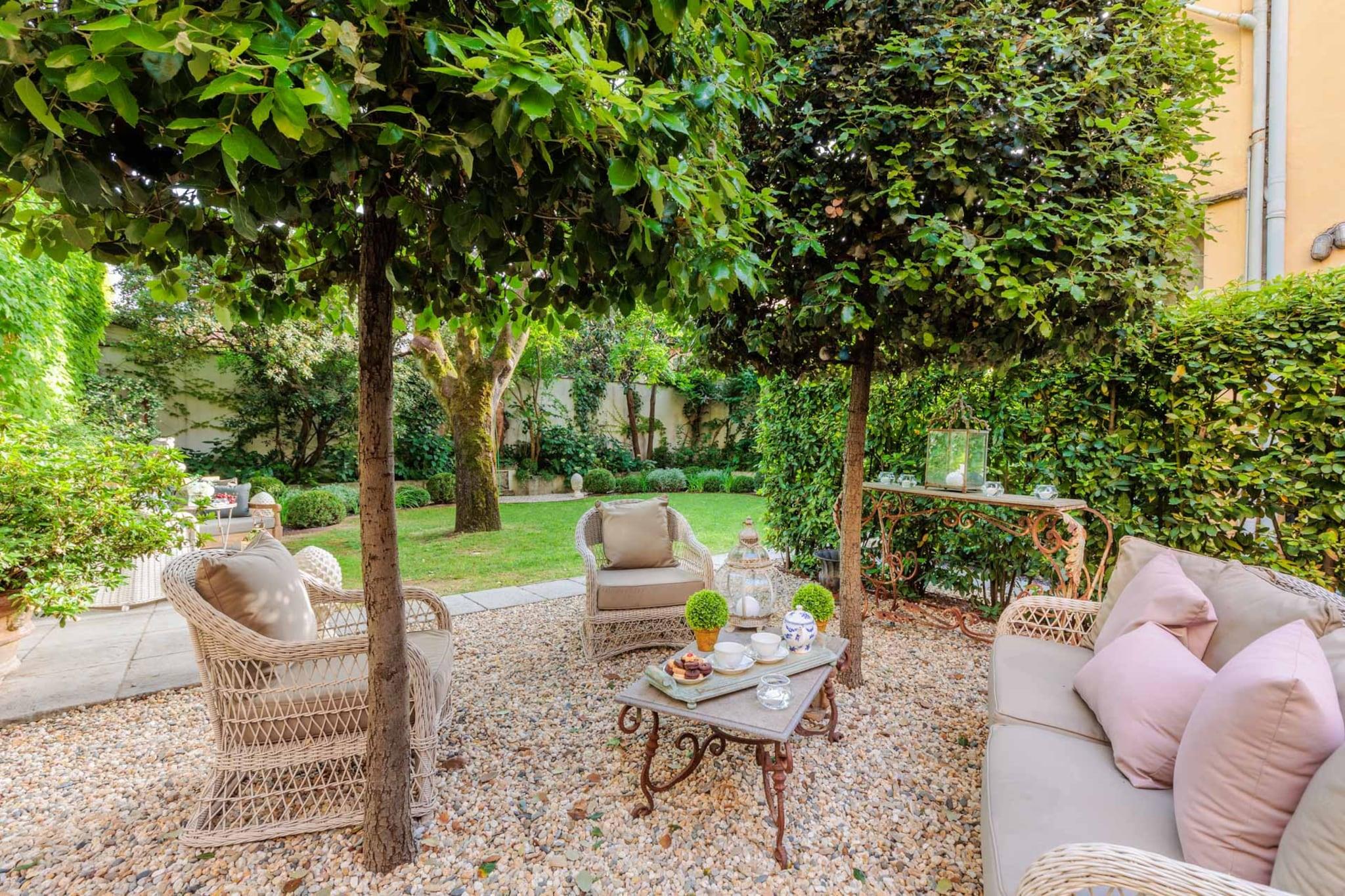 Entdecken Sie das Herz von Lucca von diesem luxuriösen Apartment aus. Es liegt ideal innerhalb der Stadtmauern und bietet eine gute Anbindung an öffentliche Verkehrsmittel. Busbahnhof und Bahnhof sind nur einen kurzen Spaziergang entfernt. Für Autofahrer stehen in der Nähe bequeme Parkplätze zur Verfügung, sodass Sie die Umgebung bequem erkunden können. Die faszinierende mittelalterliche Umgebung rundet das Erlebnis ab. Die lebhafte Einkaufsstraße Via Fillungo ist nur 100 Meter entfernt, und bedeutende Sehenswürdigkeiten wie die Piazza San Michele und die Kathedrale San Martino erreichen Sie in 5–10 Gehminuten. Dieses wunderschön renovierte Apartment, ursprünglich ein Kutschenhaus aus dem 17. Jahrhundert, verfügt über einen großzügigen, antiken Garten mit charmanten Ecken zum Essen und Entspannen inmitten jahrhundertealter Bäume. Mit einem romantischen Blick auf diesen privaten Garten bietet die Unterkunft eine Veranda, die sich perfekt für Mahlzeiten im Freien eignet, und eine gemütliche Terrasse mit Liegestühlen. Zu den modernen Annehmlichkeiten gehören zuverlässiges WLAN, Klimaanlage und eine gut ausgestattete Küche mit hochwertigen Geräten, sodass Sie alles, was Sie für die Zubereitung Ihrer Mahlzeiten benötigen, direkt zur Hand haben. Das Apartment bietet bequem Platz für bis zu vier Gäste und verfügt über ein Hauptschlafzimmer mit einem Kingsize-Bett im Kolonialstil und hochwertigen Matratzen – ein ruhiger Rückzugsort. Dieses Zimmer verfügt außerdem über einen 49-Zoll-Flachbildfernseher mit Zugang zu Amazon TV und einer Vielzahl internationaler Sender. Das zweite Schlafzimmer befindet sich auf einem charmanten Heuboden und bietet zusätzlichen Platz und Komfort sowie ein stilvolles Badezimmer mit modernen Armaturen. Mit durchdachten Annehmlichkeiten wie einer Waschküche und viel Liebe zum Detail bietet dieses Apartment die perfekte Mischung aus Luxus und Komfort für einen unvergesslichen Aufenthalt in Lucca. Hinweis: Kurtaxe ist vor Ort zu entrichten.
