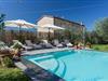 Willkommen in diesem atemberaubenden toskanischen Refugium mit Panoramablick auf die berühmte Weinregion mit ihren sanften Hügeln und üppigen Weinbergen. Das großzügige Anwesen verfügt über einen luxuriösen Pool, ein privates Spa und sechs Schlafzimmer und ist somit das ideale Reiseziel für Familien oder große Gruppen von Freunden. Auf dem malerischen Anwesen Villa Reale gelegen, entdecken Gäste Wanderwege durch die Weinberge. Die reiche Geschichte der Villa ist eng mit Elisa Bonaparte, der Schwester Napoleons, verbunden, die von 1805 bis 1814 Prinzessin von Lucca war. Im Inneren verströmt die Villa mit ihren rustikalen Steinmauern, Balkendecken und Terrakottaböden klassischen toskanischen Charme. Der einladende Wohnbereich ist mit komfortablen Möbeln, einem großen Kamin und einem eigenen Spielsalon mit Billardtisch, Roulette, Kartentisch und einem 55-Zoll-Flachbildfernseher mit Satellitenempfang und DVD-Player ausgestattet. Moderne Annehmlichkeiten verschmelzen nahtlos mit dem Charme der alten Welt und bieten Annehmlichkeiten wie Klimaanlage in jedem Zimmer, WLAN, Sky-TV und einen Wäschetrockner, die Gästen Komfort und Entspannung gleichermaßen bieten. Das Erdgeschoss umfasst Wohnbereiche und eine voll ausgestattete Küche mit Zugang zu einem Essbereich im Freien mit Grill sowie einen Wellnessbereich mit Dampfbad und Sauna. Im ersten Stock befinden sich fünf Schlafzimmer und vier wunderschön eingerichtete Badezimmer, jedes mit individueller Temperaturregelung. Der elegante zweite Stock bietet ein Luxuriöse Schlafzimmersuite mit eigenem Bad und Spielsalon machen diese Villa zu einem unvergesslichen Rückzugsort im Herzen der Toskana. Hinweis: Die Kurtaxe ist vor Ort zu entrichten.