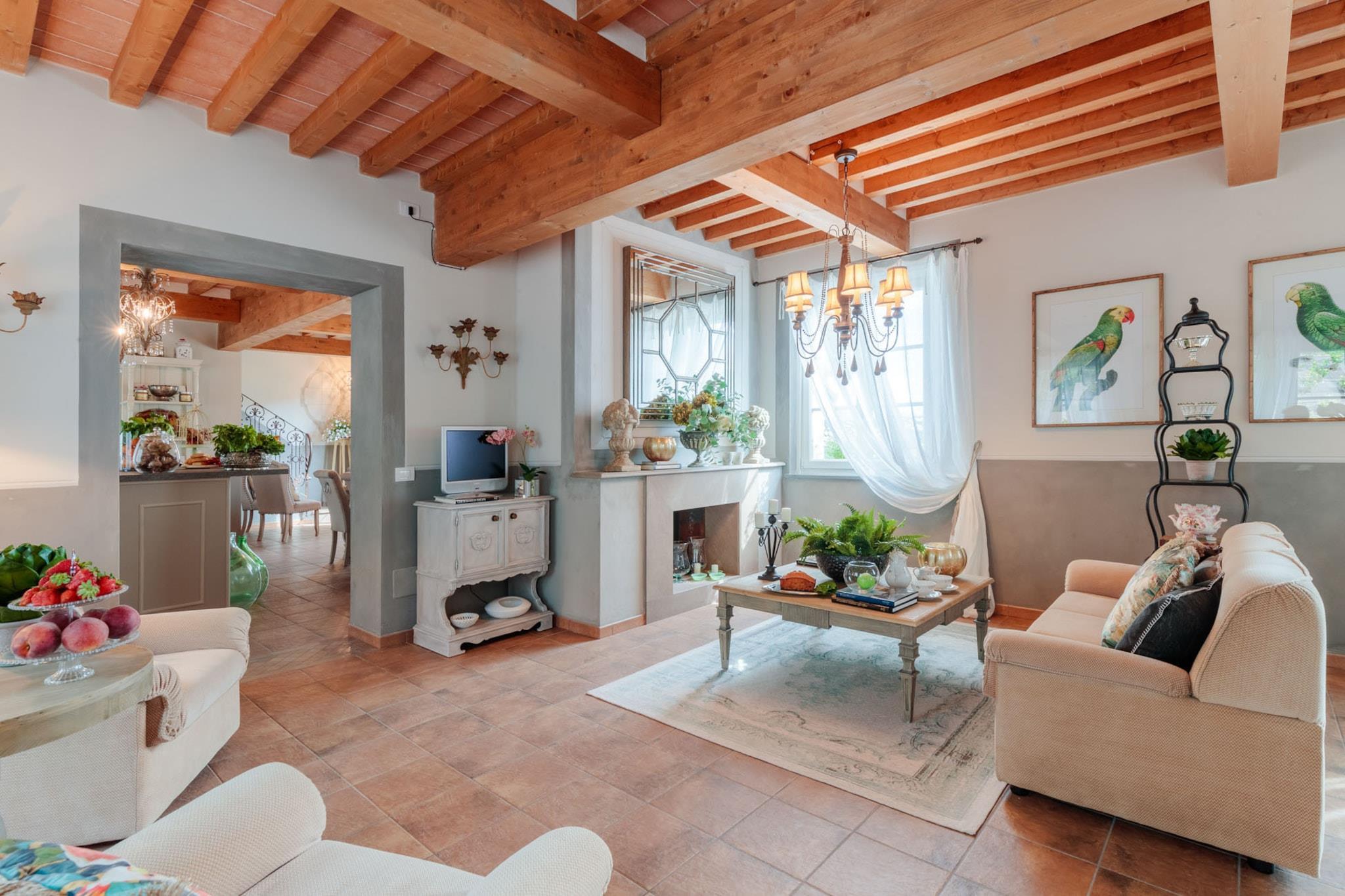 Genießen Sie den Komfort eines privaten toskanischen Rückzugsorts kombiniert mit dem Charme der Landschaft um Lucca in dieser wunderschön restaurierten Steinvilla, eingebettet in die Hügel von Cappella. Nur eine kurze Autofahrt von der historischen Stadt Lucca entfernt und umgeben von renommierten Weingütern, bietet dieses Haus mit vier Schlafzimmern eine ruhige Oase für Familien oder Freundesgruppen, die entspannen, die Toskana erkunden und authentisch erleben möchten. Die Villa liegt inmitten gepflegter Gärten mit Panoramablick und bietet verschiedene Außenbereiche zum Entspannen – ob Sie am Haus entspannen, unter den Bäumen ausruhen oder im Freien speisen und dabei den Duft von Wildblumen genießen. Ein Whirlpool und großzügige Rasenflächen sorgen für eine Resort-Atmosphäre, während die voll ausgestattete Küche ideal zum Zubereiten von Mahlzeiten nach einem Tag voller Weinproben ist. Die Klimaanlage im mittleren Treppenhaus sorgt für ein angenehmes Klima auf beiden Ebenen des Hauses, und WLAN sorgt dafür, dass Sie während Ihres gesamten Aufenthalts in Verbindung bleiben. Im Inneren verschmelzen traditionelle Elemente wie freiliegende Balken und Steinmauern nahtlos mit modernen Möbeln. Jedes der vier Schlafzimmer verfügt über ein eigenes Bad und bietet Gästen so ein privates, hotelähnliches Erlebnis. Von hier aus können Sie nahegelegene Sehenswürdigkeiten wie Pisa, Florenz, Montecatini Terme und die Strände der Versilia bequem erkunden. Geschäfte und Lebensmittelgeschäfte sind nur 2 km entfernt, während die ummauerte Altstadt von Lucca 6 km entfernt liegt. Die Flughäfen von Pisa und Florenz sind bequem zu erreichen und sorgen für einen unvergesslichen Aufenthalt in der Toskana. Hinweis: Kurtaxe ist vor Ort zu entrichten.