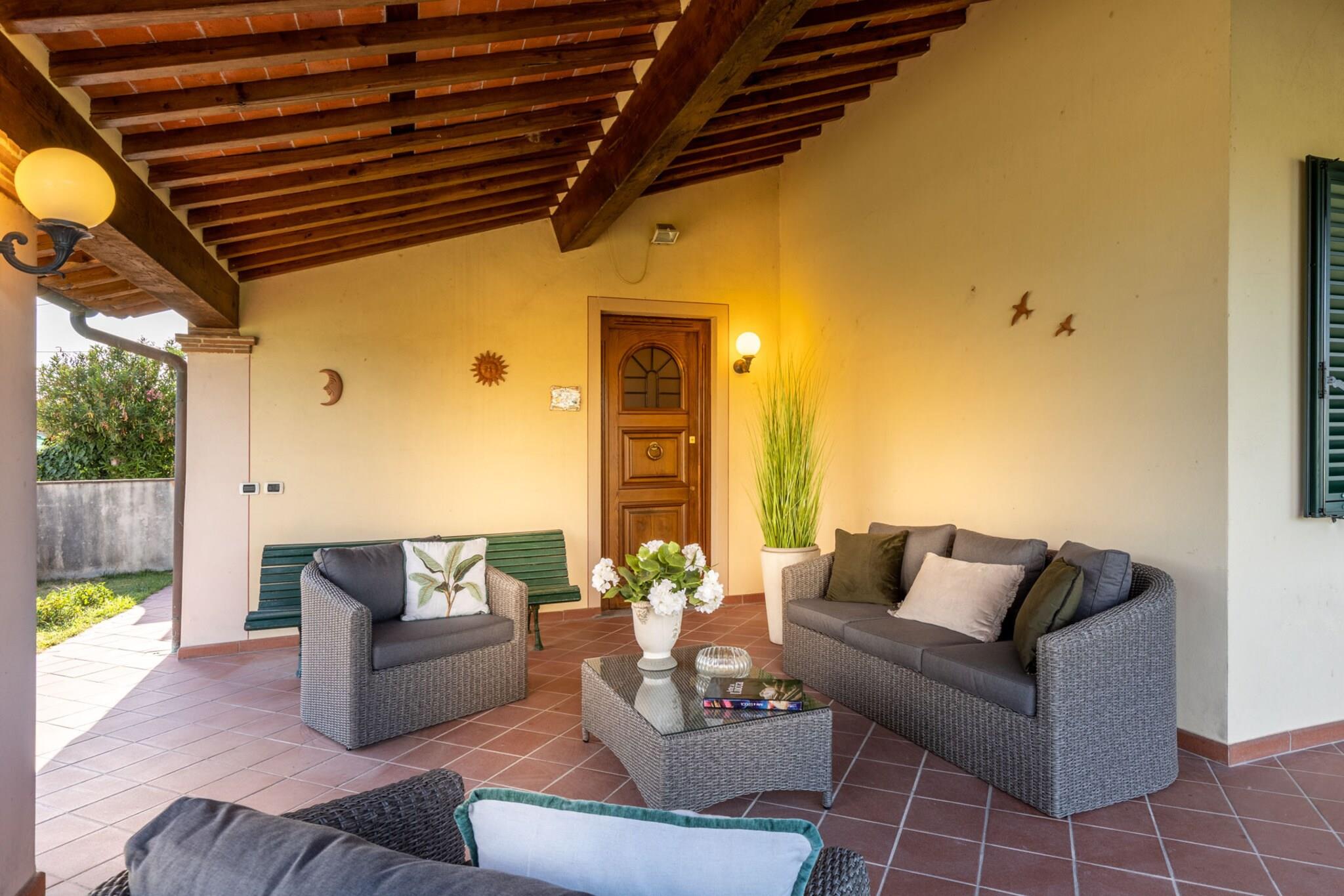 Willkommen in einem authentischen toskanischen Refugium, in dem Erinnerungen lebendig werden und Tradition auf modernen Komfort trifft. Eingebettet im ruhigen Dorf Sant’Alessio, nur 3 km vom historischen Zentrum von Lucca entfernt, bietet dieses liebevoll restaurierte Landhaus ein warmes und authentisches Erlebnis. Einst das geschätzte Zuhause von Nonna Bianca, der Großmutter der heutigen Besitzerin, öffnet das Haus heute seine Türen für Reisende, die Einfachheit, Ruhe und einen Hauch von echtem Landleben suchen. Die Innenräume von Nonna Bianca spiegeln ihr Erbe mit originalen Elementen und rustikalem Charme wider, aufgewertet durch geschmackvolle, moderne Updates für einen entspannten und einladenden Aufenthalt. Das Erdgeschoss bietet ein gemütliches Wohnzimmer, einen Essbereich, ideal für gemeinsame Mahlzeiten, eine voll ausgestattete Küche und ein Badezimmer. Eine charmante, überdachte Veranda lädt dazu ein, lange Morgen mit einer Tasse Kaffee oder ruhige Abende mit den Geräuschen der Landschaft zu genießen. Im Obergeschoss befinden sich drei komfortable Schlafzimmer – zwei mit Doppelbetten und eines mit zwei Einzelbetten – für Familien oder kleine Gruppen. Ein zweites Badezimmer im Obergeschoss rundet das praktische und gemütliche Ambiente ab. Der üppige Privatgarten lädt zum Spielen für Kinder oder zum Entspannen unter der Sonne der Toskana ein. Parkplätze und zuverlässiges WLAN sorgen für zusätzlichen Komfort. Mit Lebensmittelgeschäften und Restaurants in fußläufiger Entfernung und den kulturellen Schätzen Luccas nur eine kurze Autofahrt entfernt, ist dies der perfekte Ausgangspunkt, um die Schönheit der Toskana zu erkunden – von nahegelegenen Weingütern und mittelalterlichen Dörfern bis hin zu den Stränden der Versilia und Städten wie Pisa, Florenz und Siena. Hinweis: Die Kurtaxe ist vor Ort zu entrichten.