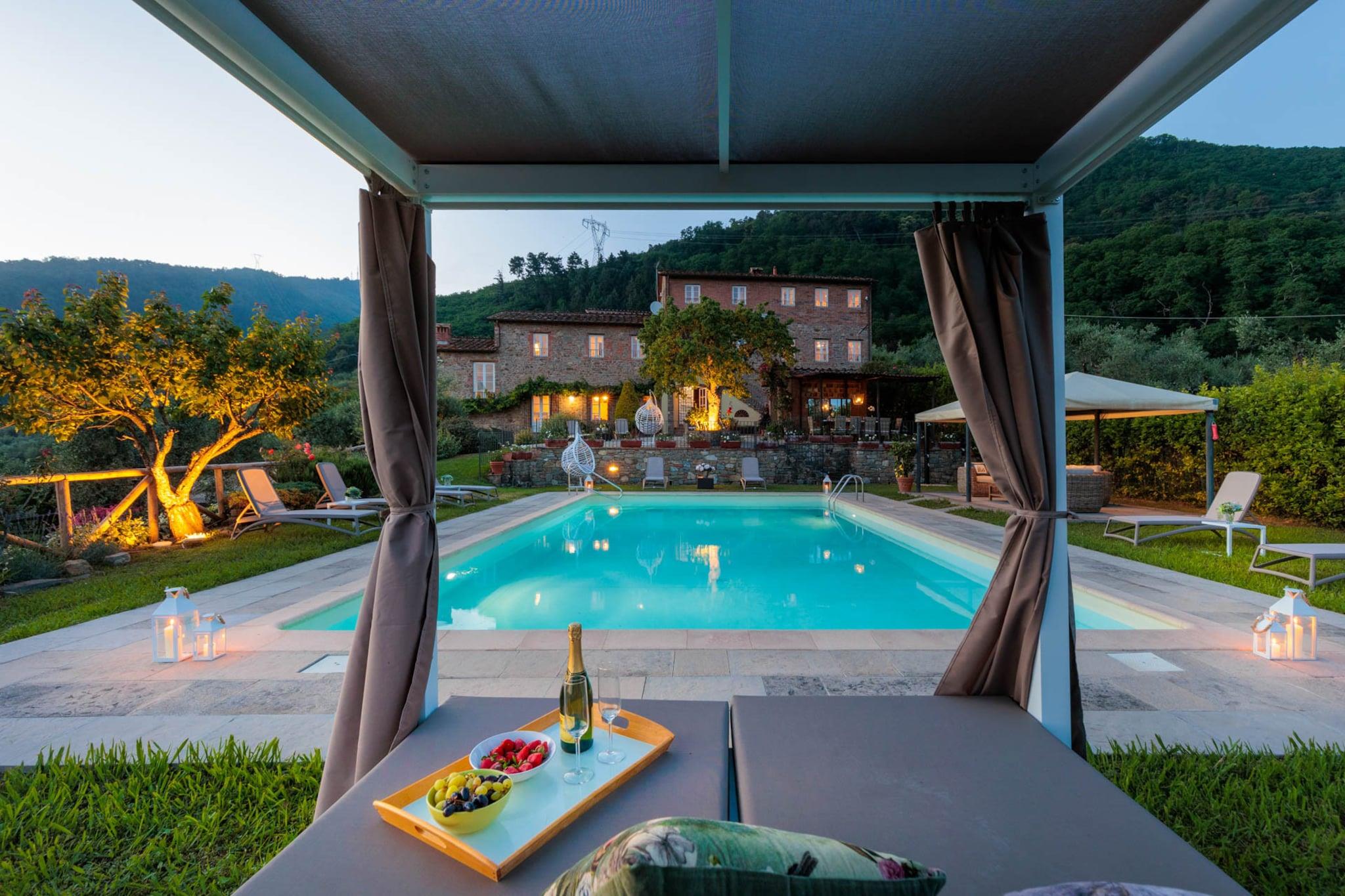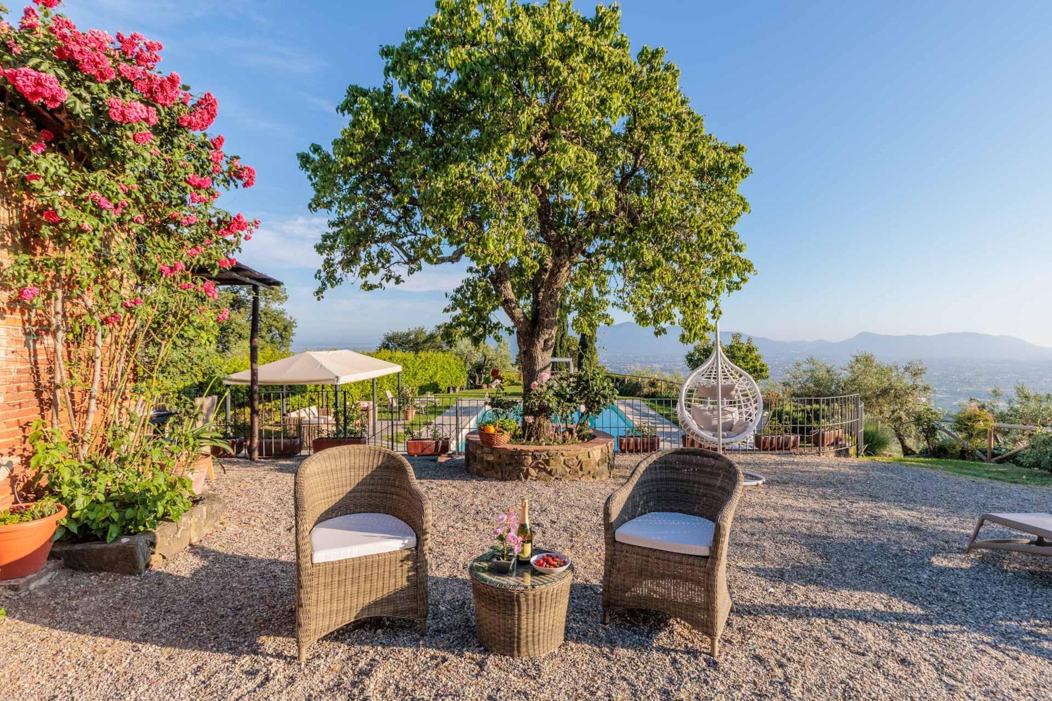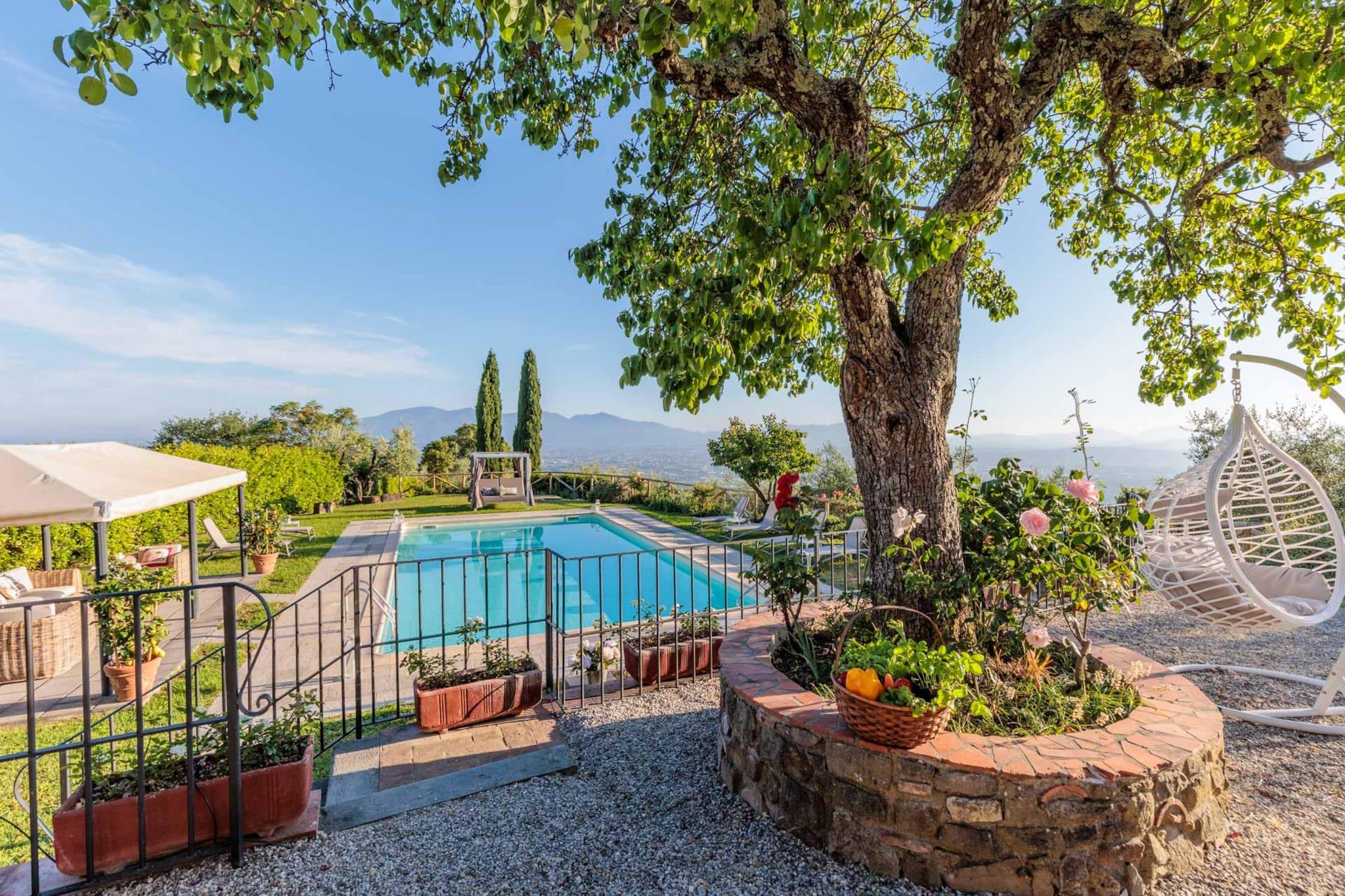 Inmitten der sanften Hügel und berühmten Weinberge von Valgiano bietet dieses wunderschön restaurierte Bauernhaus aus Stein einen idyllischen Rückzugsort im Herzen der Toskana. Mit weitem Blick auf die Landschaft von Lucca verbindet dieses Refugium auf einem Hügel zeitlosen rustikalen Charme mit modernem Komfort und eignet sich ideal für ein Familientreffen, einen romantischen Kurzurlaub oder einen erholsamen Urlaub mit Freunden. Eingebettet an der berühmten toskanischen Weinstraße und umgeben von Olivenhainen und lokalen Weingütern, ist das Haus der perfekte Ausgangspunkt, um die kulturellen und natürlichen Schätze der Region zu erkunden. Die Altstadt von Lucca ist nur eine kurze Autofahrt entfernt, und beliebte Tagesausflugsziele wie Florenz, Pisa, Cinque Terre, Volterra sowie die Sandstrände von Viareggio und Forte dei Marmi sind bequem zu erreichen. Die Flughäfen Pisa und Florenz sind bequem erreichbar, sodass Sie stressfrei anreisen können. Die einladenden Außenbereiche der Villa laden zum Entspannen und Verweilen ein: ein glitzernder Swimmingpool mit Panoramablick auf das Tal, Sonnenliegen für entspannte Nachmittage und eine überdachte Pergola, ideal für Mahlzeiten im Freien. Beginnen Sie Ihren Tag mit einem Kaffee mit Blick auf die Weinberge, erkunden Sie nahegelegene Märkte und Weingüter und lassen Sie den Abend bei einem Aperitif unter dem Sternenhimmel ausklingen. Das Bauernhaus erstreckt sich über drei Ebenen und bietet bequem Platz für größere Gruppen. Fünf liebevoll eingerichtete Schlafzimmer, vier Badezimmer, ein gemütliches Wohnzimmer, eine geräumige Küche und ein Esszimmer mit rustikalen Balken und Terrakottaböden bewahren den Charme eines traditionellen toskanischen Hauses und bieten gleichzeitig alle Annehmlichkeiten für einen unbeschwerten Aufenthalt. Eine Waschküche und Highspeed-Internet sorgen für Komfort bei längeren Aufenthalten. Hinweis: Kurtaxe ist vor Ort zu entrichten.
