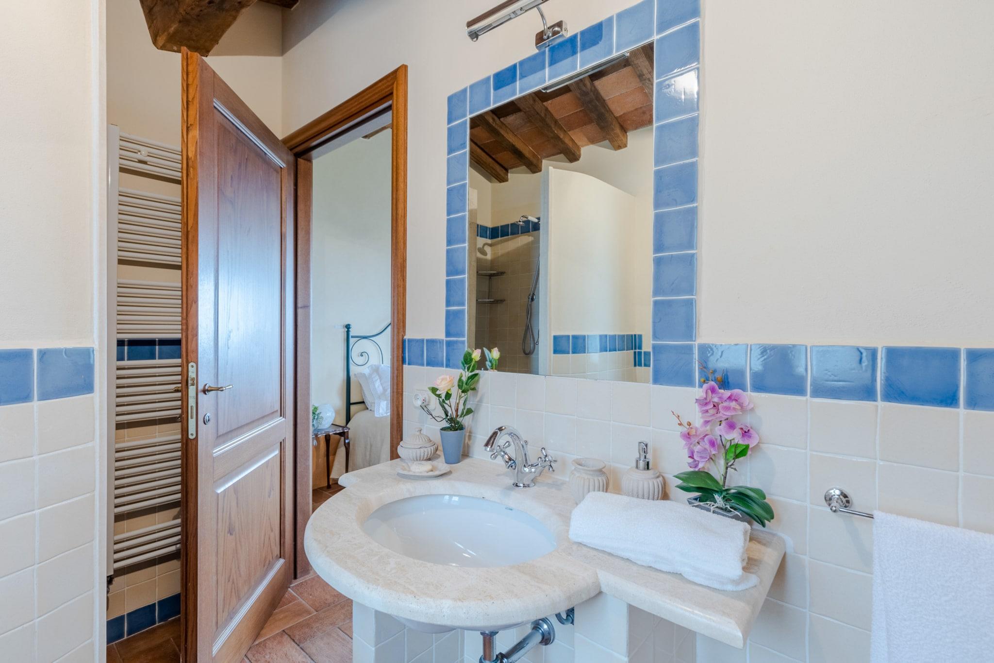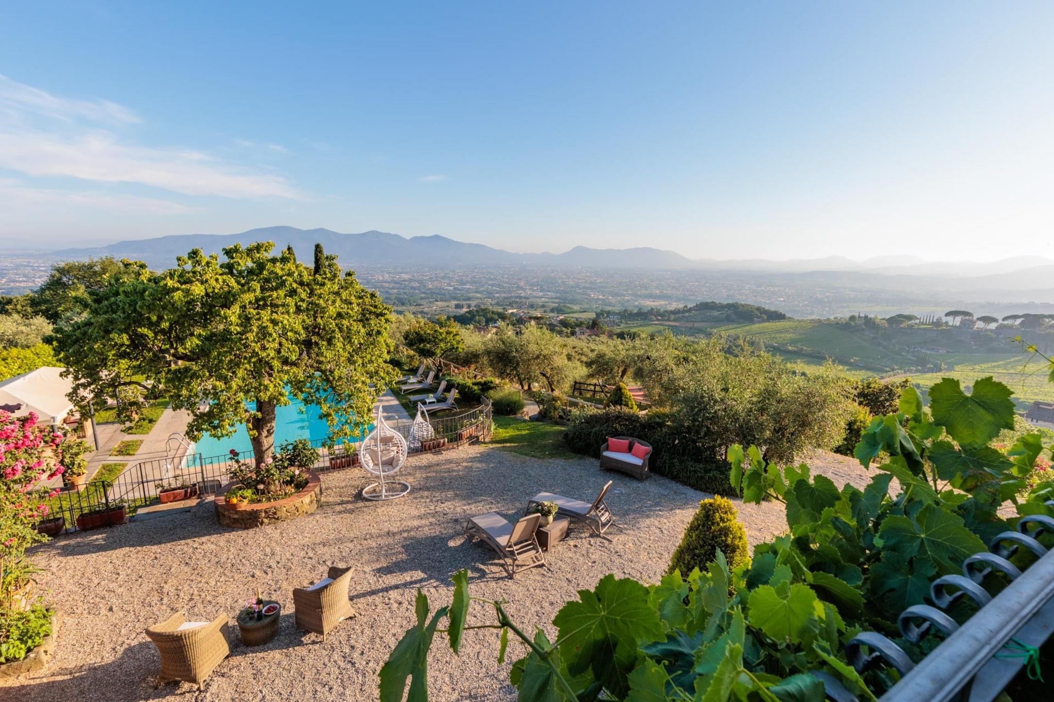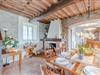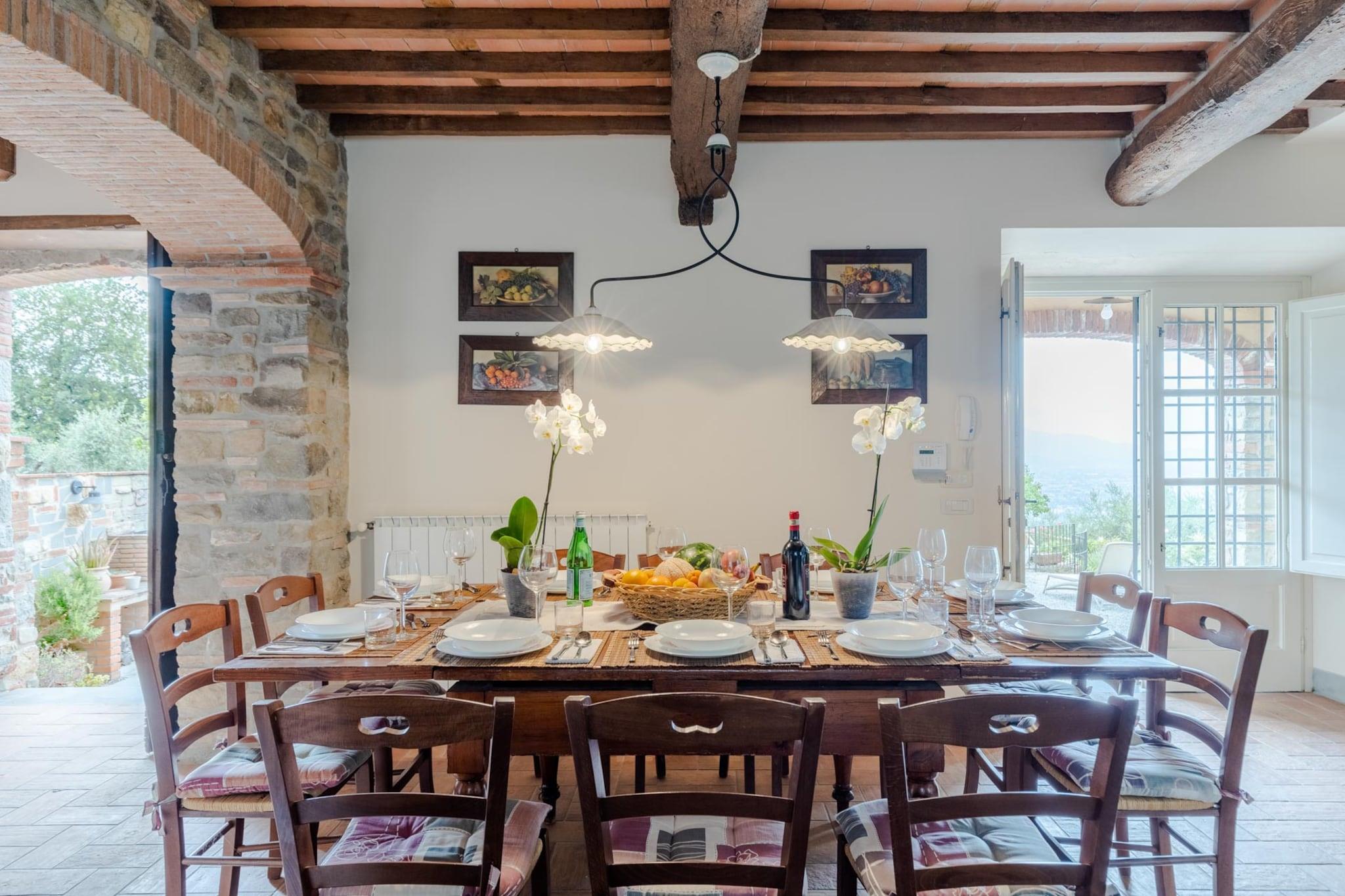 Inmitten der sanften Hügel und berühmten Weinberge von Valgiano bietet dieses wunderschön restaurierte Bauernhaus aus Stein einen idyllischen Rückzugsort im Herzen der Toskana. Mit weitem Blick auf die Landschaft von Lucca verbindet dieses Refugium auf einem Hügel zeitlosen rustikalen Charme mit modernem Komfort und eignet sich ideal für ein Familientreffen, einen romantischen Kurzurlaub oder einen erholsamen Urlaub mit Freunden. Eingebettet an der berühmten toskanischen Weinstraße und umgeben von Olivenhainen und lokalen Weingütern, ist das Haus der perfekte Ausgangspunkt, um die kulturellen und natürlichen Schätze der Region zu erkunden. Die Altstadt von Lucca ist nur eine kurze Autofahrt entfernt, und beliebte Tagesausflugsziele wie Florenz, Pisa, Cinque Terre, Volterra sowie die Sandstrände von Viareggio und Forte dei Marmi sind bequem zu erreichen. Die Flughäfen Pisa und Florenz sind bequem erreichbar, sodass Sie stressfrei anreisen können. Die einladenden Außenbereiche der Villa laden zum Entspannen und Verweilen ein: ein glitzernder Swimmingpool mit Panoramablick auf das Tal, Sonnenliegen für entspannte Nachmittage und eine überdachte Pergola, ideal für Mahlzeiten im Freien. Beginnen Sie Ihren Tag mit einem Kaffee mit Blick auf die Weinberge, erkunden Sie nahegelegene Märkte und Weingüter und lassen Sie den Abend bei einem Aperitif unter dem Sternenhimmel ausklingen. Das Bauernhaus erstreckt sich über drei Ebenen und bietet bequem Platz für größere Gruppen. Fünf liebevoll eingerichtete Schlafzimmer, vier Badezimmer, ein gemütliches Wohnzimmer, eine geräumige Küche und ein Esszimmer mit rustikalen Balken und Terrakottaböden bewahren den Charme eines traditionellen toskanischen Hauses und bieten gleichzeitig alle Annehmlichkeiten für einen unbeschwerten Aufenthalt. Eine Waschküche und Highspeed-Internet sorgen für Komfort bei längeren Aufenthalten. Hinweis: Kurtaxe ist vor Ort zu entrichten.