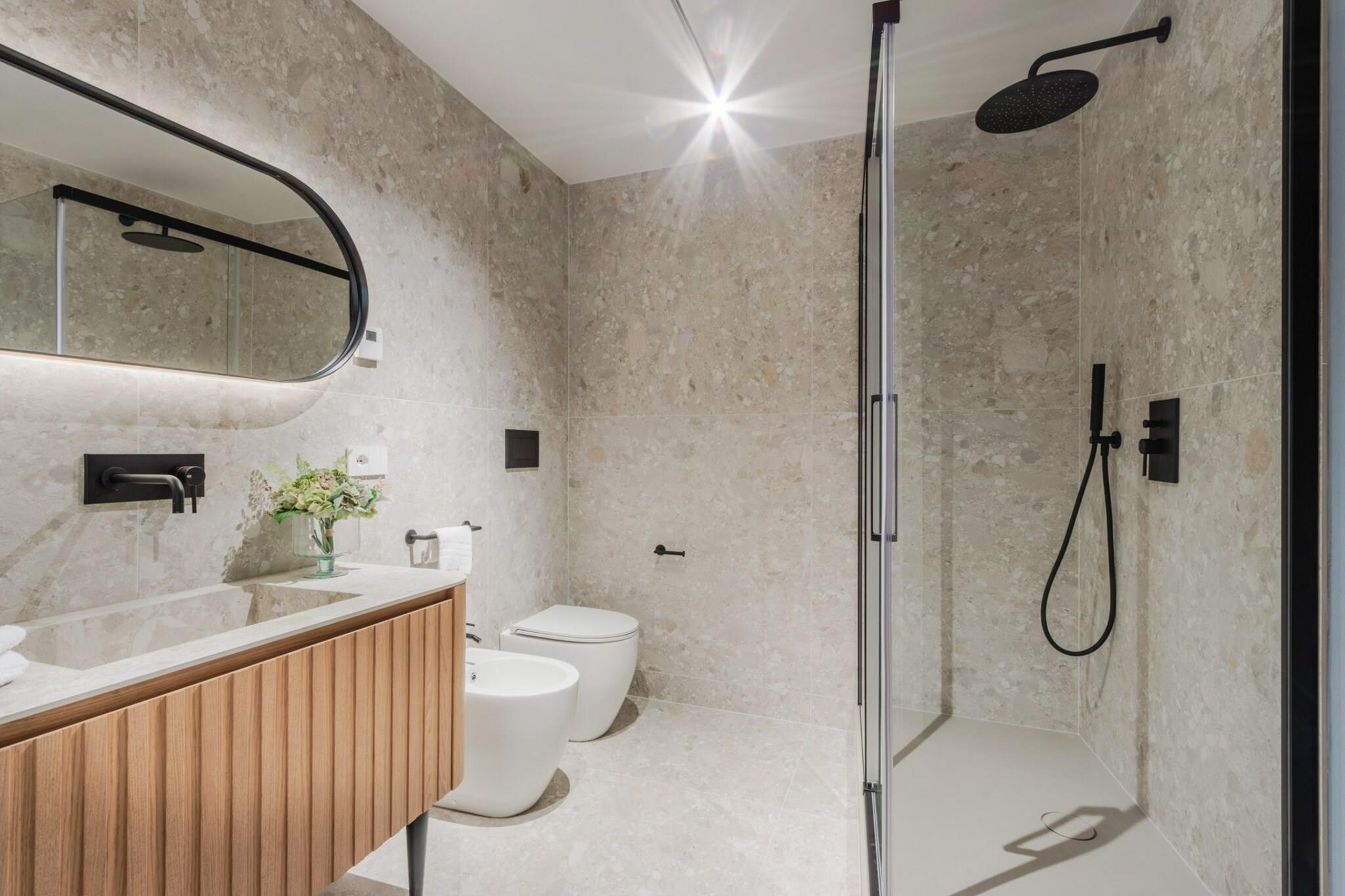In der 2. Etage: (Wohnzimmer(TV, Sitzecke), Esszimmer(Esstisch), Küche(Wasserkocher, Toaster, Kaffeemaschine, Backofen, Spülmaschine, Kühlschrank, Tiefkühlschrank, Zitruspresse, ), Schlafzimmer mit Badezimmer(Doppelbett king size, TV, Dusche), Schlafzimmer mit Badezimmer(Doppelbett king size, TV, Dusche), Schlafzimmer mit Badezimmer(Doppelbett king size, TV, Dusche)) Trockner, Babybett, Waschmaschine, Balkon, Klimaanlage, Hochstuhl, Bügeleisen