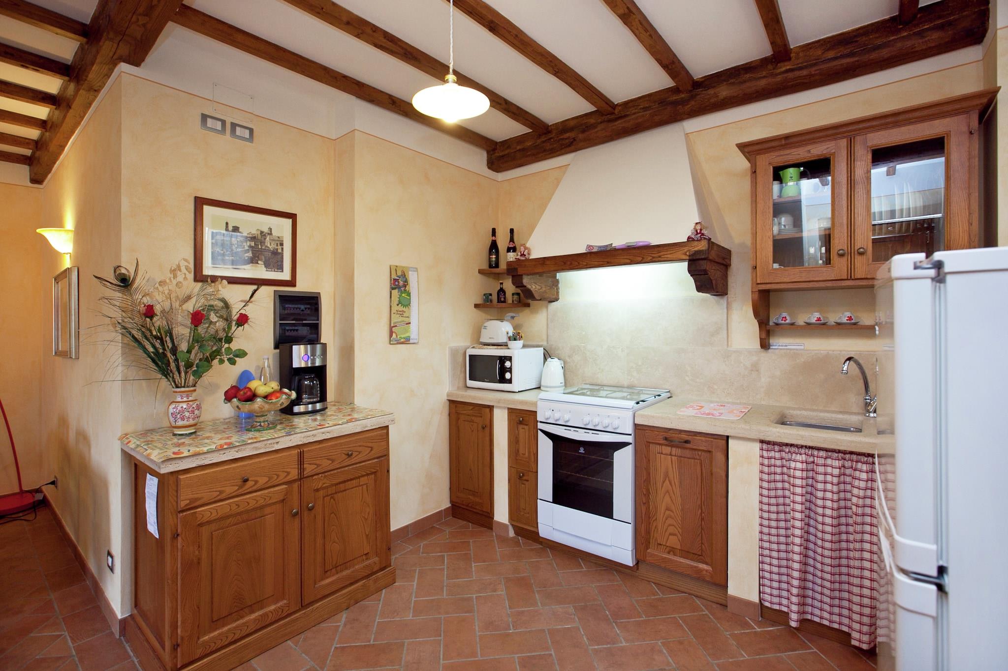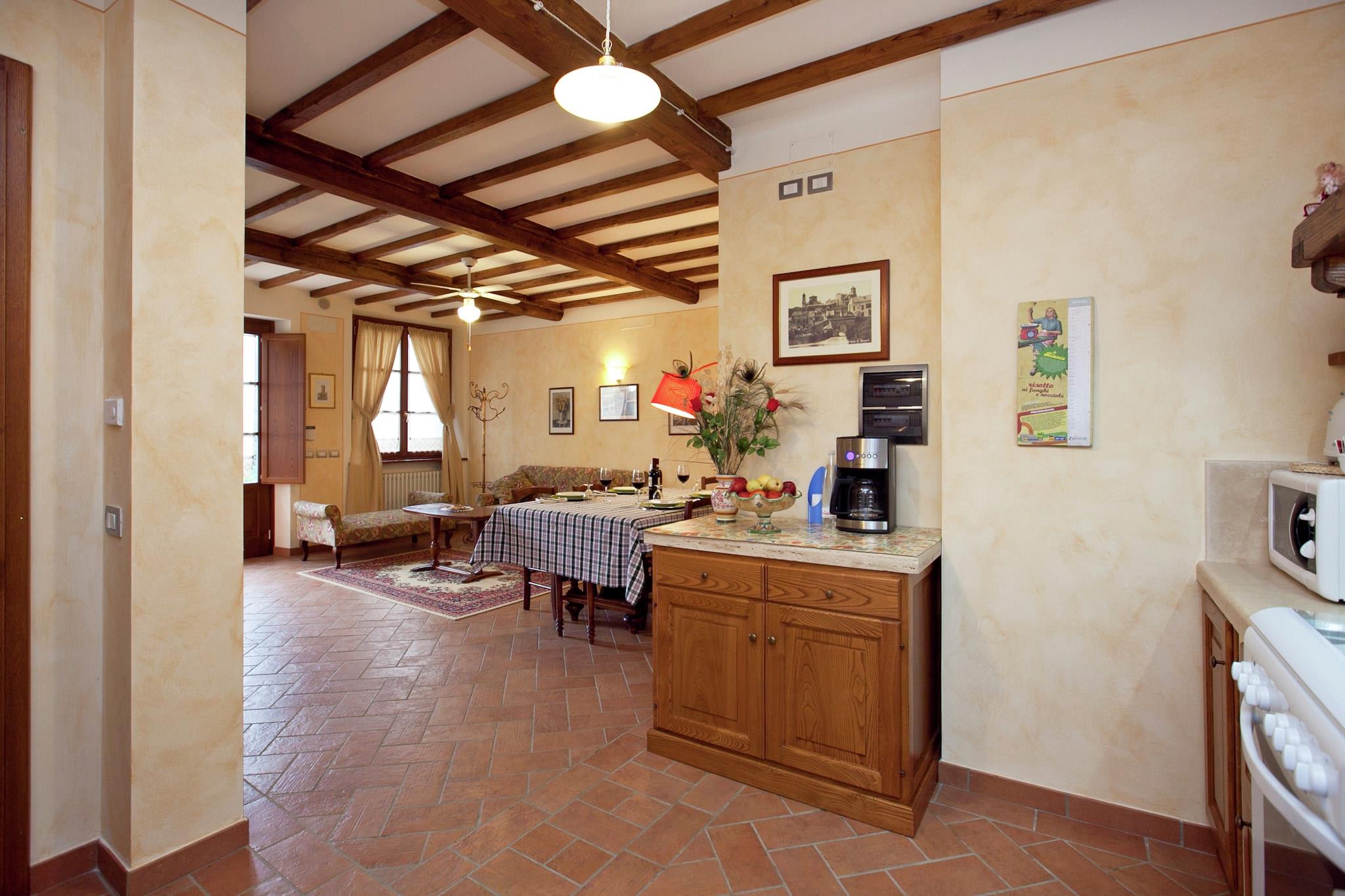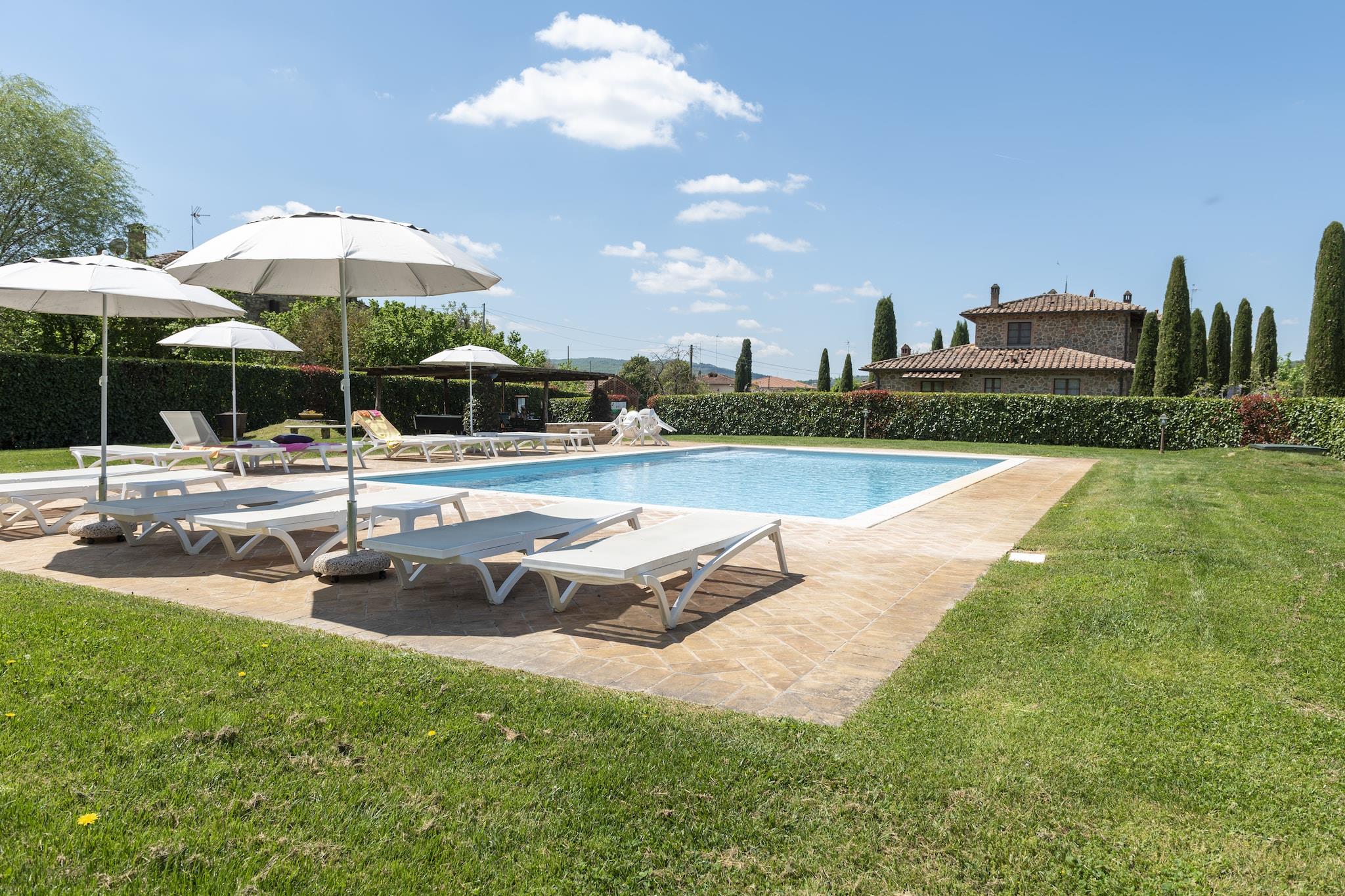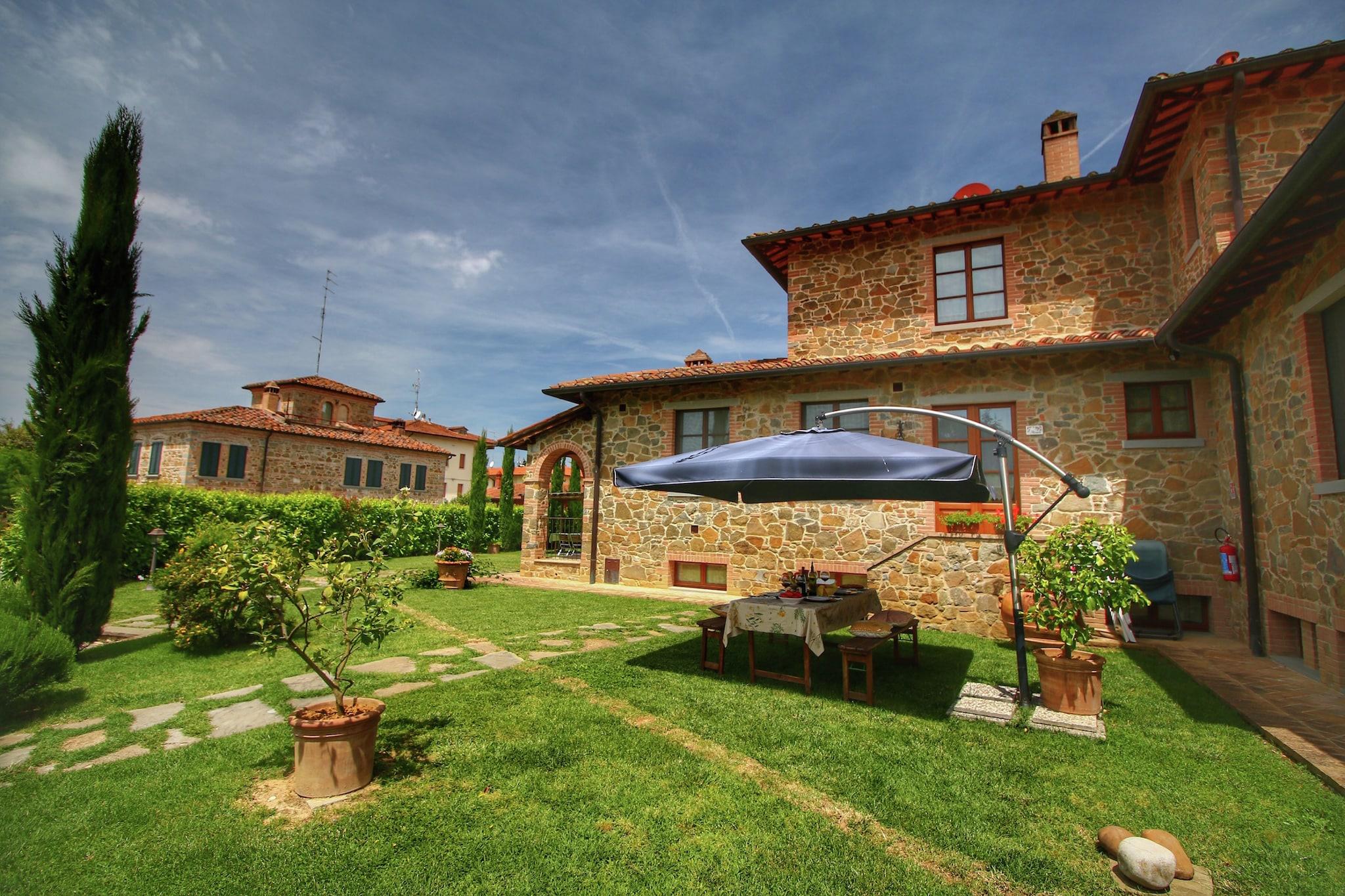 Im Herzen der Toskana, nahe Lucignano, bietet dieses traditionelle Cottage einen ruhigen Rückzugsort, umgeben von sanften Hügeln und üppigen Gärten. Das Anwesen verfügt über einen privaten Garten mit Obstbäumen, einen gemeinschaftlich genutzten, eingezäunten Pool, der im Sommer zum Abkühlen einlädt, und einen gemütlichen Pavillon zum Entspannen oder Essen im Freien. Familien werden die liebevollen Details wie Grillplatz, Tischfußball und Spielgeräte für Kinder sowie Annehmlichkeiten wie Hochstühle und Klimaanlage zu schätzen wissen. Nur 2 km vom mittelalterlichen Dorf Lucignano entfernt, können Gäste diese charmante Stadt, die für ihren historischen Goldenen Baum bekannt ist – ein Symbol ewiger Liebe und Glücks – bequem erkunden. Eine kurze Autofahrt führt zu berühmten Städten wie Siena, berühmt für sein Palio-Pferderennen und seine romantischen Gassen; Montepulciano, die „Perle der Renaissance“, bekannt für erlesene Weine; und Pienza, ein UNESCO-Weltkulturerbe mit atemberaubendem Talblick. Auch das reiche Renaissance-Erbe und die beeindruckende Architektur von Florenz sind leicht zu erreichen. Gäste können authentische toskanische Köstlichkeiten direkt auf dem Anwesen genießen, darunter Bio-Olivenöl aus den Olivenhainen der Familie, hausgemachten Honig und frische Eier vom Bauernhof. In der Nähe servieren lokale Trattorien und Osterias in Lucignano traditionelle Gerichte mit frischen, regionalen Zutaten, darunter saftiges Grillfleisch und herzhafte Pasta. Für ein unvergessliches kulinarisches Erlebnis bietet der Hausbesitzer optionale italienische Kochkurse an, in denen Gäste die Zubereitung klassischer Rezepte erlernen. Verpassen Sie nicht die perfekte Kombination aus lokalem Käse und süßem Honig – ein wahrer Vorgeschmack auf das reiche gastronomische Erbe der Toskana.