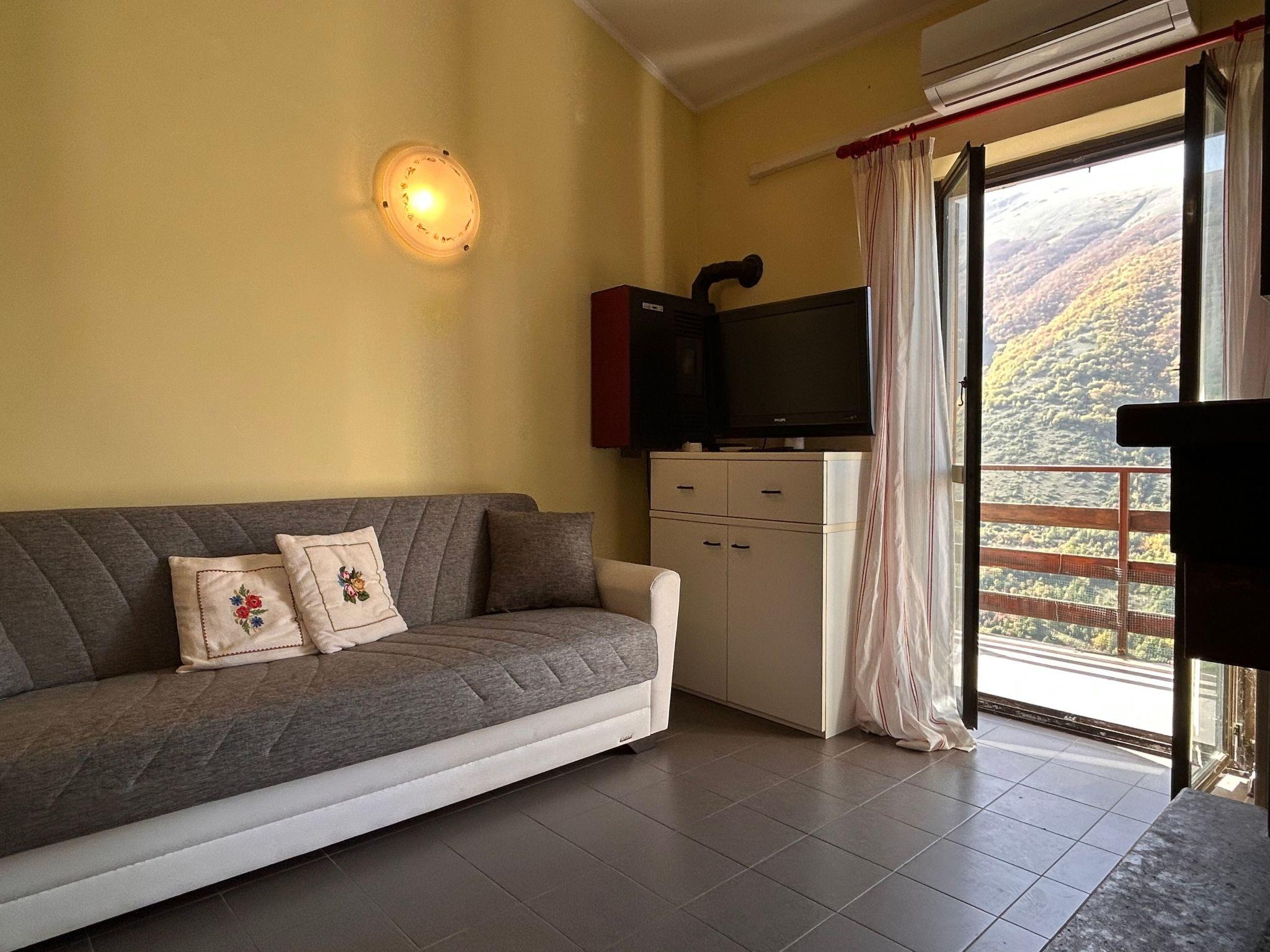 Das Casetta di Montagna ist eine schöne Wohnung in Prato Lonaro II, einem Weiler von Lucoli in der Provinz L'Aquila. Die Unterkunft besteht aus einem gemütlichen Wohnbereich mit Schlafsofa, ausgestatteter Küchenzeile, Essbereich und Wendeltreppe zum Zwischengeschoss. Auf der linken Seite befindet sich ein Doppelschlafsofa und durch ein großes Glasfenster haben Sie Zugang zum Balkon, von dem Sie eine herrliche Aussicht genießen können. Es gibt ein großes Badezimmer mit Dusche, Bidet und Wäschebereich. Der Schlafbereich besteht aus einem Doppelschlafzimmer mit Brückenkleiderschrank. Im Mezzanine-Bereich gibt es ein Einzelbett mit Zusatzbett und ein Schlafsofa. Diese Unterkunft verfügt über einen privaten Parkplatz, in der Umgebung der Unterkunft besteht jedoch die Möglichkeit, auf externe Parkplätze zuzugreifen.