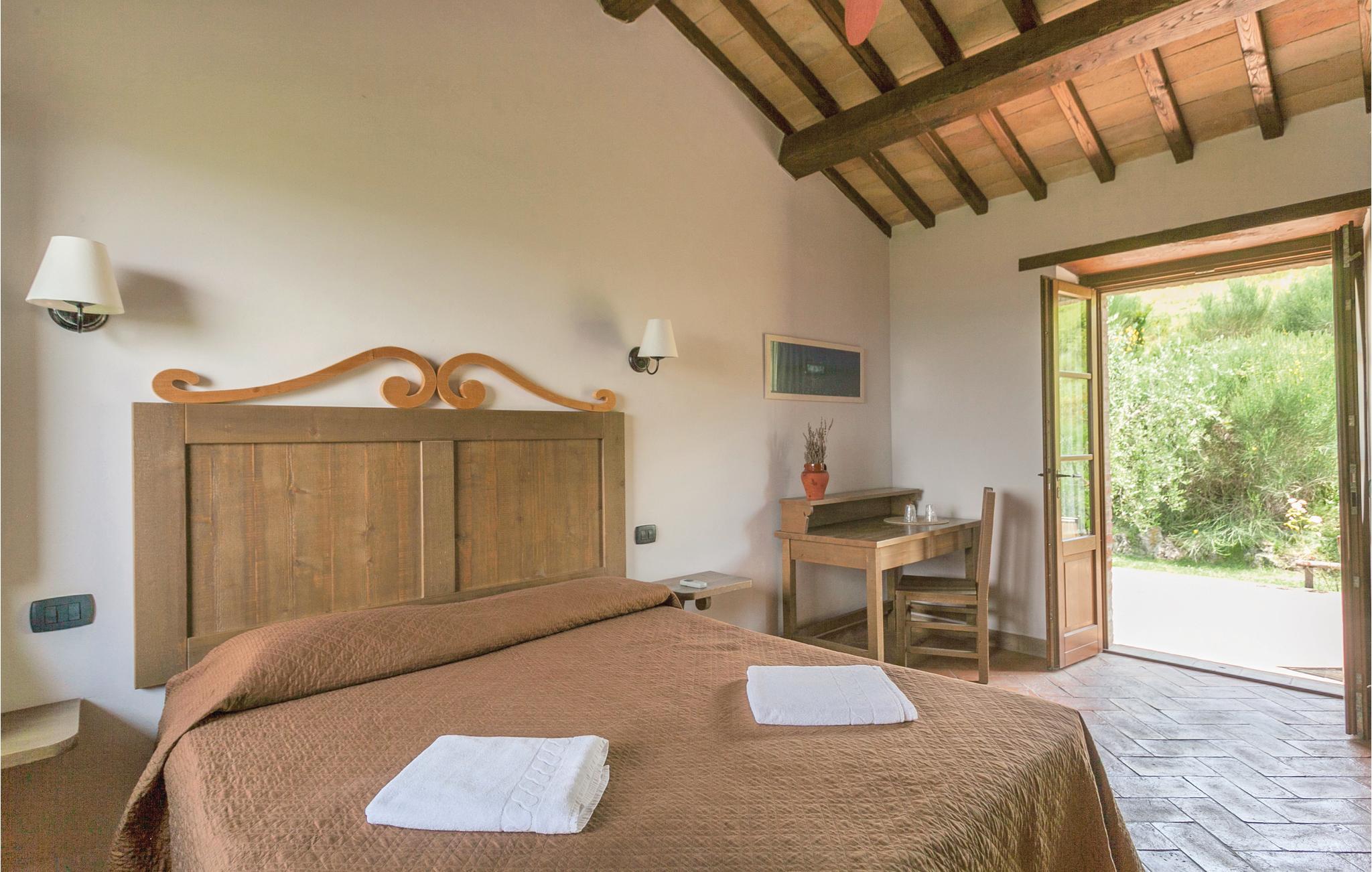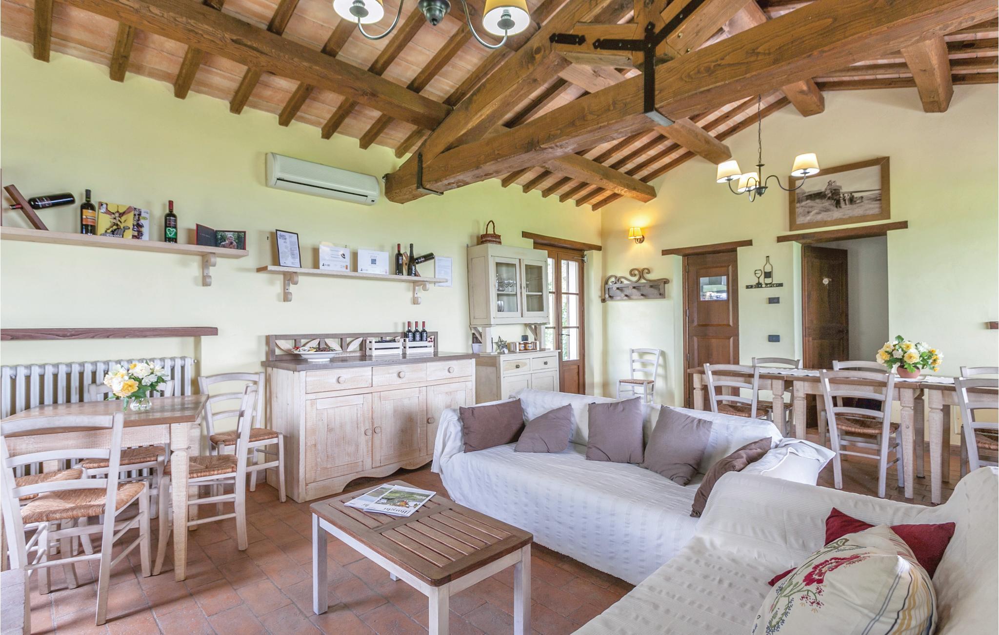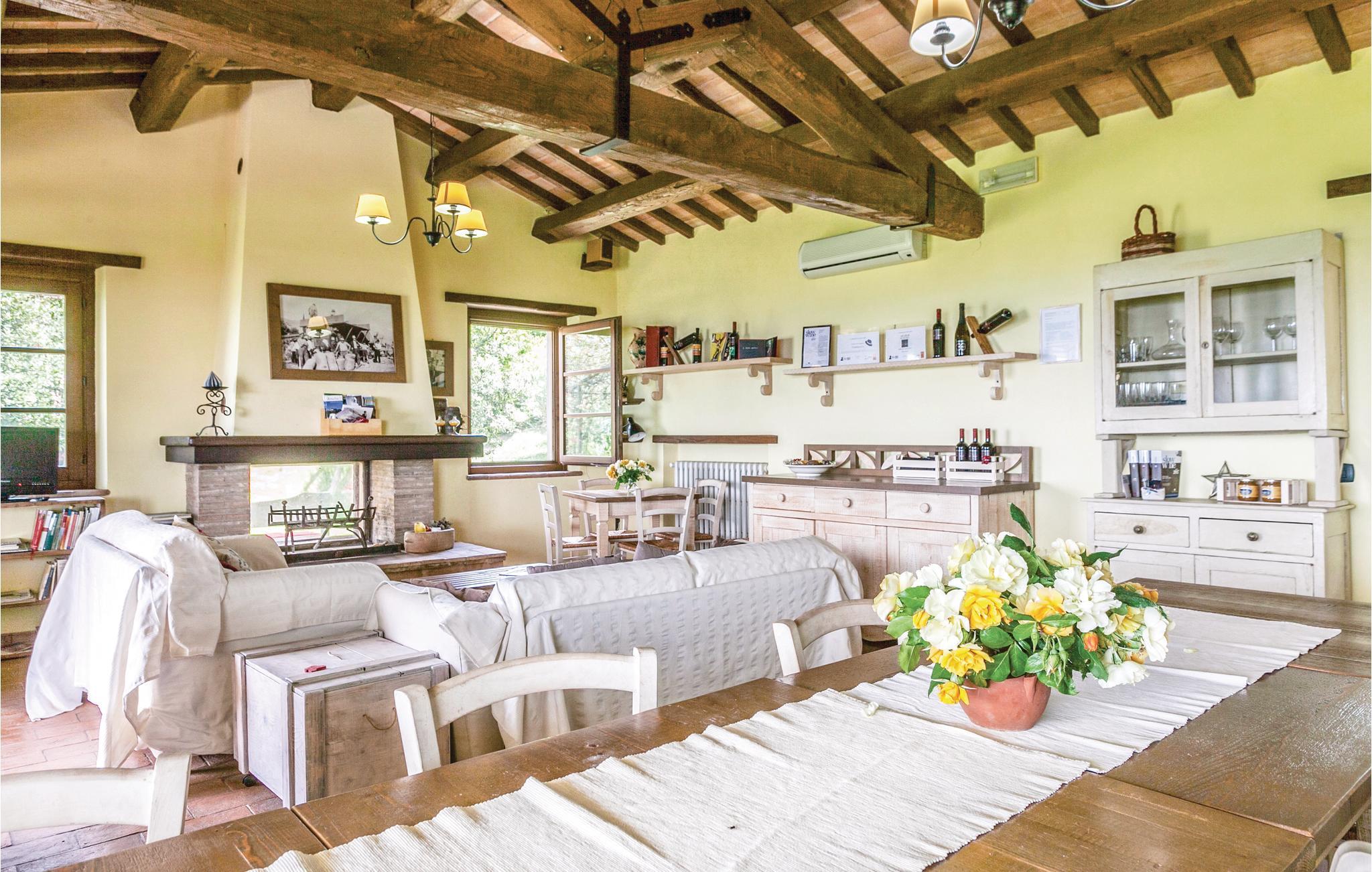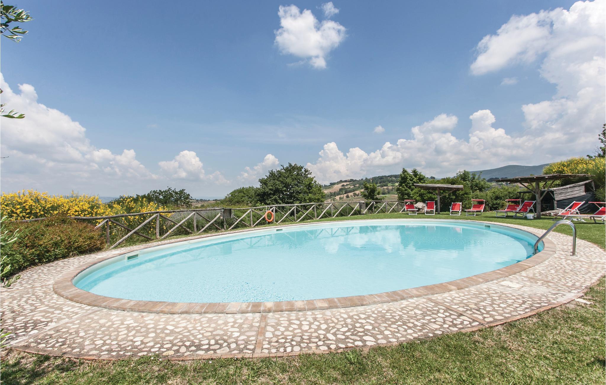 Genießen Sie Ihren Aufenthalt in diesem sorgfältig restaurierten Landhaus aus dem 19. Jahrhundert in Panoramalage auf einem Hügel reich an Weinbergen und Olivenhainen, auf dem Land etwa 5 km von Lugnano in Teverina entfernt. Der runde Pool bietet Entspannung in Privatsphäre mit einem atemberaubenden 360-Grad-Blick auf grüne Hügel und Weinberge. Vor dem Haupthaus gibt es einen Spielbereich für Kinder und einen Pavillon, in dem die Eltern im gepflegten Garten entspannen können, während die Kinder spielen. Die Schlafzimmer befinden sich im Hauptgebäude, während sich im Nebengebäude ein großes Esszimmer mit Kamin, eine professionelle Küche und eine Terrasse auf dem Weinberg befinden. Das Anwesen grenzt an die Weinberge des Weinguts des Eigentümers, der Sie gerne durch den Betrieb führt und zu Weinprobe des exzellenten Weins einlädt. Die beiden Etagen des Bauernhauses und die Schlafzimmer mit Bad sind nicht intern verbunden und alle haben einen unabhängigen Zugang von außen. Parken auf dem Grundstück. Ausflugstipps: Der Bolsena – See 45 km; Orvieto 35 km. Die wunderschöne Stadt Rom (107 km) ist mit dem Zug vom Bahnhof Attigliano (4 km) aus erreichbar.