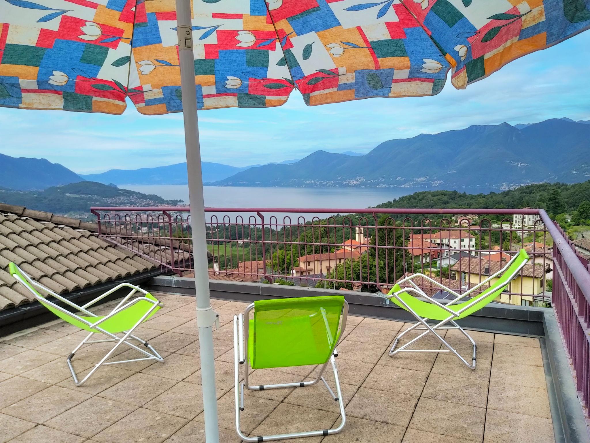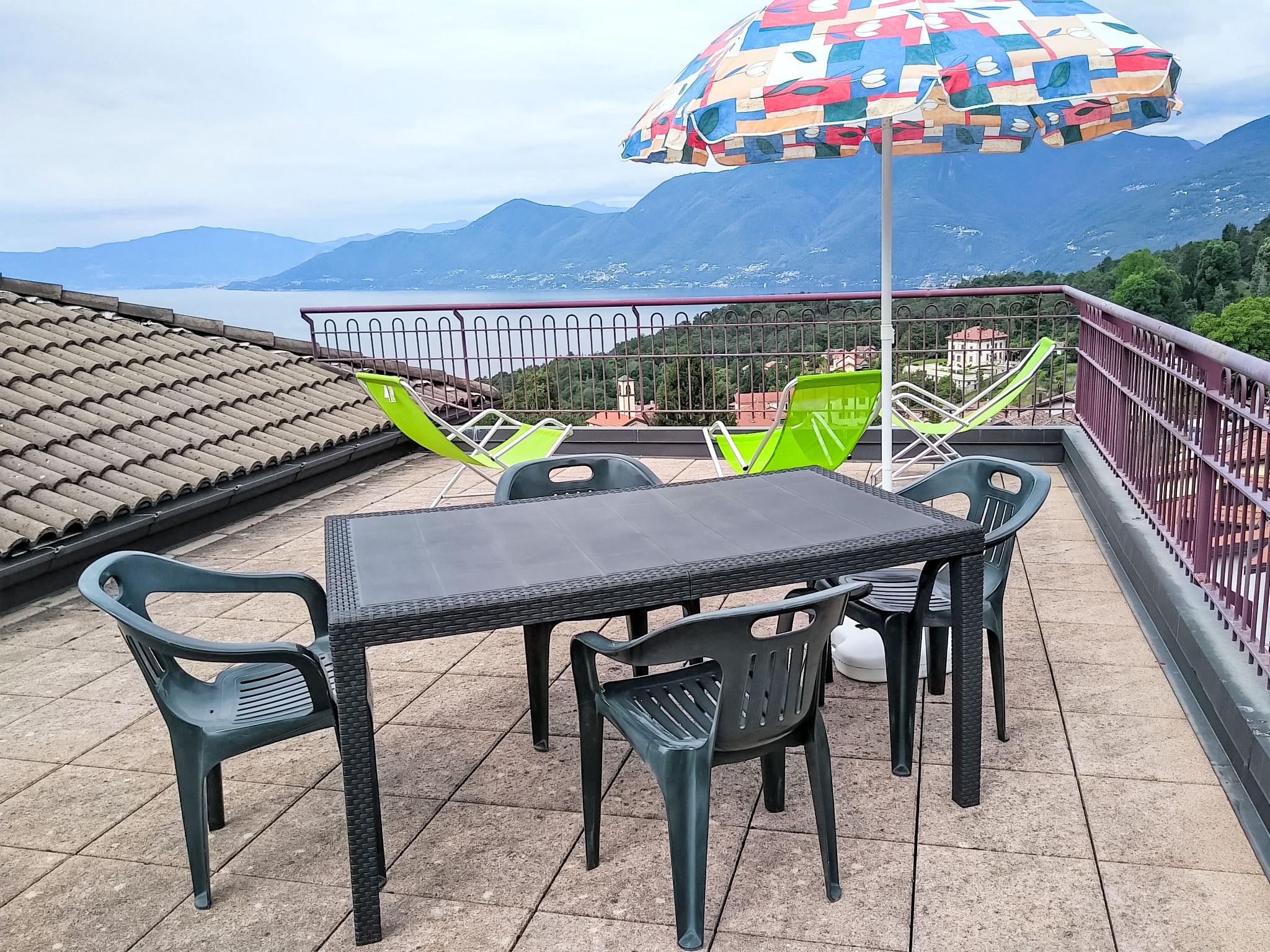 Komfortables Zweifamilienhaus "Achillea". Oberhalb von Luino, im Weiler Roggiolo, 3.5 km vom Zentrum von Luino, ruhige, sonnige Lage auf einem Hügel, 3.5 km vom See. Zufahrt bis zum Haus. Öffentliche Parkplätze 50 m. Lebensmittelgeschäft 400 m, Supermarkt 4 km, Restaurant, Bar 400 m, Bushaltestelle 3 km, Bahnstation "Luino" 5 km. Bitte beachten: Fahrzeug empfohlen.