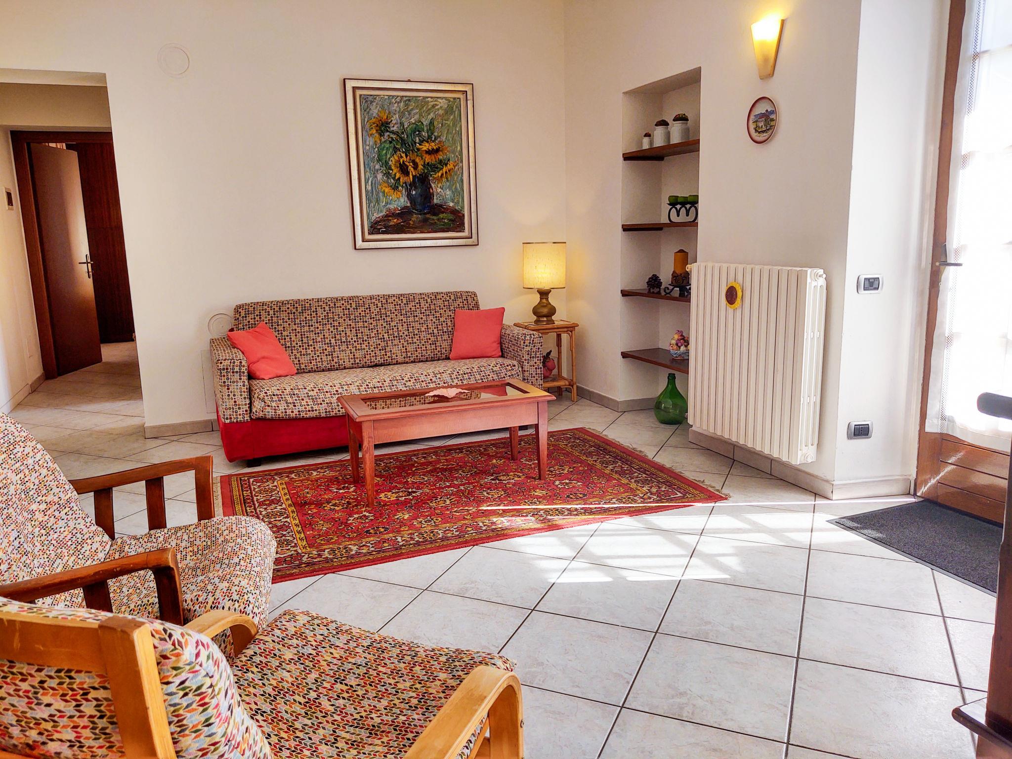 3-Zimmer-Wohnung 60 m2, im Erdgeschoss. Zweckmässig und gemütlich eingerichtet: Wohn-/Schlafzimmer mit 1 Doppeldiwanbetten und Sat-TV. Ausgang zur Terrasse. 1 Doppelzimmer. 1 Zimmer mit 1 Betten. Offene Küche (5 Kochplatten, Backofen, Geschirrspüler, Mikrowelle, Tiefkühler, elektrische Kaffeemaschine) mit Esstisch. Dusche/Bidet/WC. G-Heizung (extra). Heizung nur verfügbar von 01.10. bis 30.04. Terrasse 20 m2. Terrassenmöbel, Liegestühle (2). Sicht auf die Ortschaft. Zur Verfügung: Waschmaschine, Bügeleisen. Internet (WLAN, gratis). Bitte beachten: Maximal 1 Haustier/Hund erlaubt. Eigener Eingang. IT012092B4MT5D8SIA