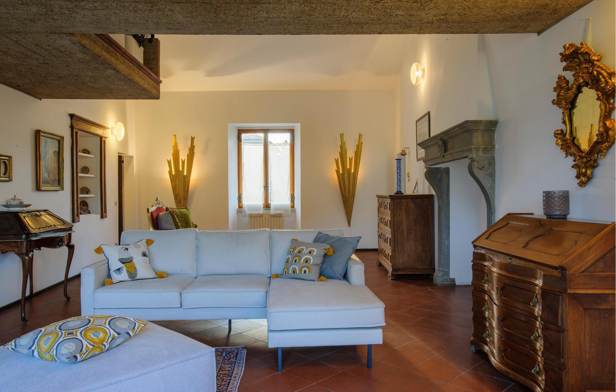 Das mehrstöckige Haus verbindet komfortable Annehmlichkeiten mit historischen Details und schafft so für Sie eine einzigartige Atmosphäre. Die stilvolle Einrichtung und die charmanten Details machen Ihren Aufenthalt zu einem besonderen Erlebnis, das Sie nicht so schnell vergessen werden. Große Fenster öffnen den Blick auf die malerische Landschaft, während Sie von den Balkonen und Terrassen aus die frische Luft genießen können. Trinken Sie am Morgen Ihren Kaffee in der Sonne und schmieden Pläne für Ihre nächsten Ausflüge.