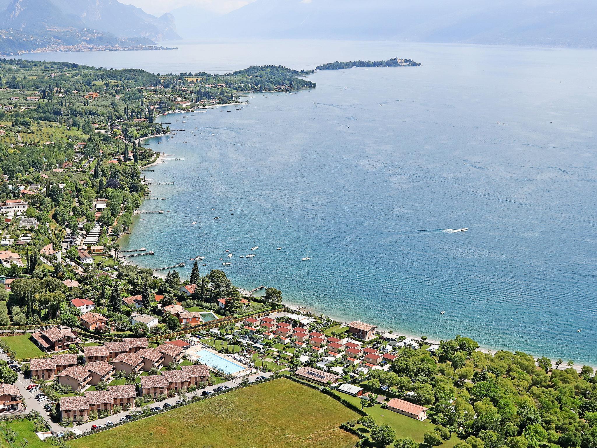 Moderne Ferienanlage "Onda Blu", auf 2 Stockwerken. 32 Häuser im Ferienresort. 80 Wohnungen in der Residenz. Am Ortsrand, 800 m vom Zentrum von Pieve di Manerba, 200 m vom See, 200 m vom Strand, direkter Zugang zum Strand. Zur Mitbenutzung: Grundstück 30'000 m2 (eingezäunt), gepflegter terrassierter Garten Rasen und Bäumen, Schwimmbad (25 x 10 m, saisonale Verfügbarkeit: 01.Jan. - 31.Dez.). WC im Poolbereich, Kinderbecken, Aussendusche, Kinderspielplatz. In der Anlage: Empfang, Restaurant, Bar, Wireless LAN (extra). Tischtennis (extra). Waschmaschine (zur Mitbenutzung, extra), Fahrradverleih. Frühstück und Halbpension möglich auf Anfrage (extra). Parkplatz (beschränkte Anzahl) auf dem Grundstück. E-Ladestation. Einkaufsgeschäft 800 m, Bushaltestelle 230 m, Bahnstation "Desenzano del Garda" 16 km, Kieselstrand 200 m. Golfplatz (27 Loch) 6 km. Nahe gelegene Sehenswürdigkeiten: Porto Torchio 2 km, Manerba del Garda 3 km, Salò 9 km, Desenzano 14 km, Brescia 40 km. Bitte beachten: geeignet für Familien. Private Bootsanlegestelle (extra) auf Anfrage.