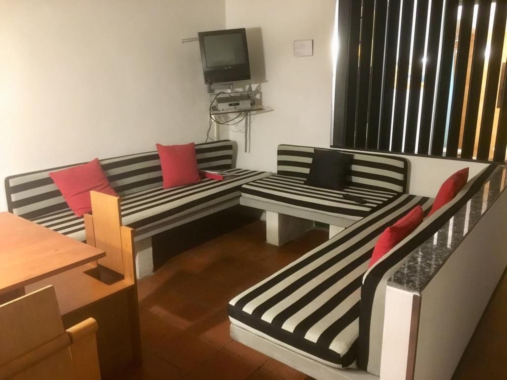 Appartement Ost: Großes Wohn-Esszimmer, Schlafzimmer, Badezimmer und ein kleines zusätzliches Zimmer. Ein privater Holzpavillon bietet einen gemütlichen Platz zum Relaxen im SchattenSicherheit: Der Außenbereich ist mit Kameras ausgestattet. Privater Pavillon mit Tisch, Stühlen und Liegestühlen. Großes eingezäuntes Grundstück. Kostenloser Parkplatz.