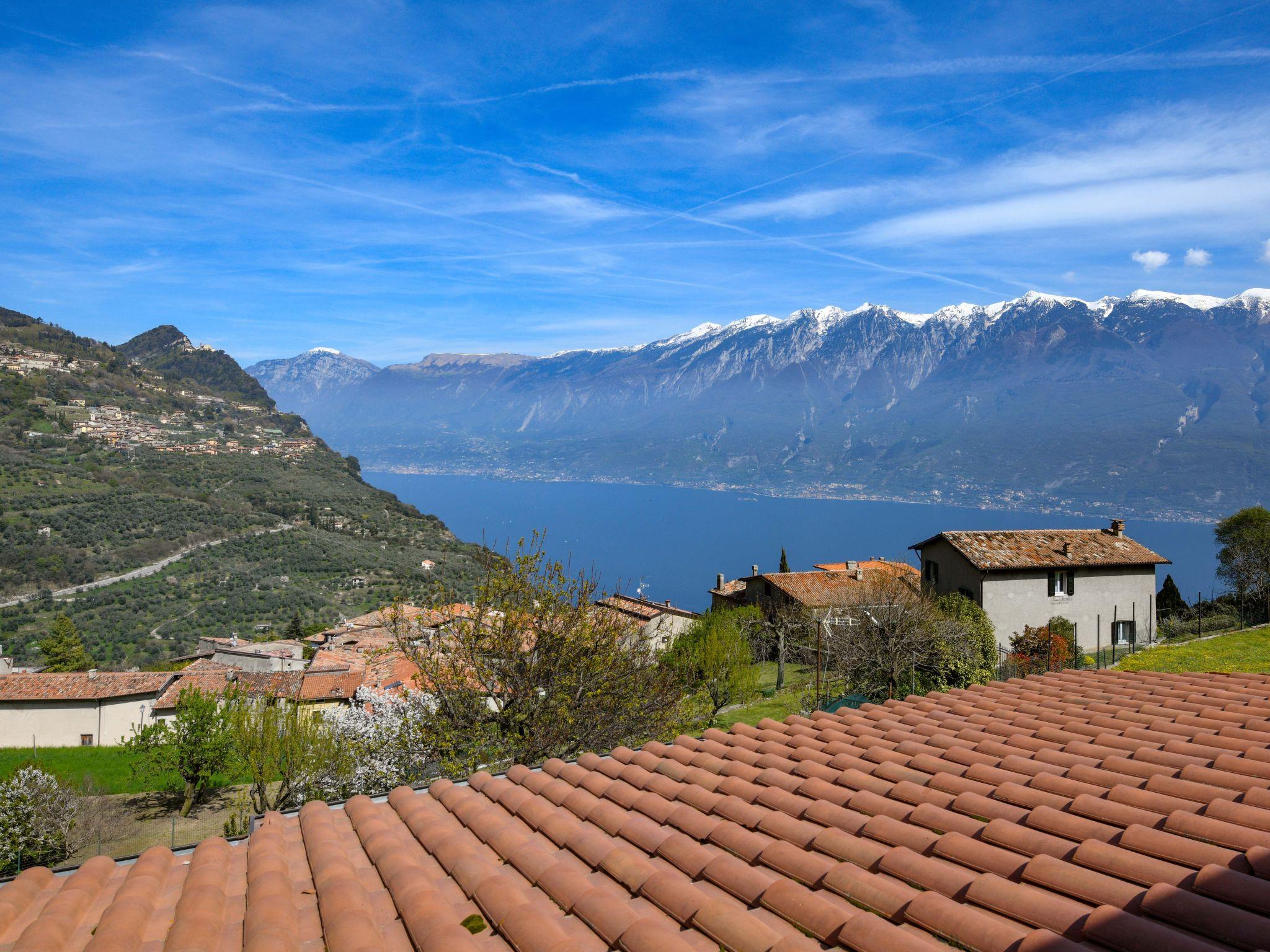 Von der Wohnküche aus gelangt man auf die große Terrasse, die mit Sonnenschirm, Stühlen und Tisch ausgestattet ist und von der aus man einen herrlichen Blick auf den Gardasee, das historische Zentrum des Ortes, das man in wenigen Minuten zu Fuß erreichen kann, und die Hochebene von Tignale genießen kann.