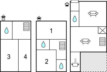 Badezimmer (nr. 3) - WC. Warmes und kaltes Wasser. Dusche