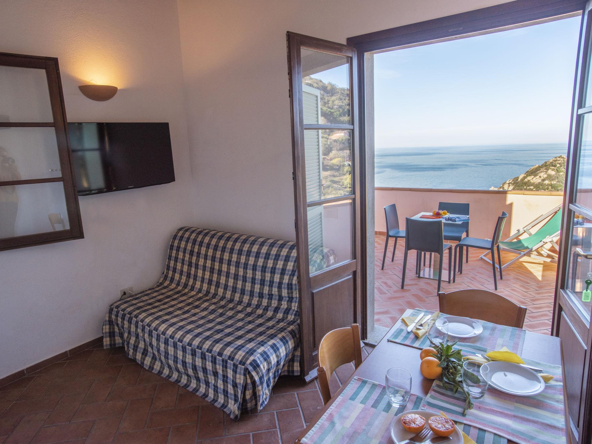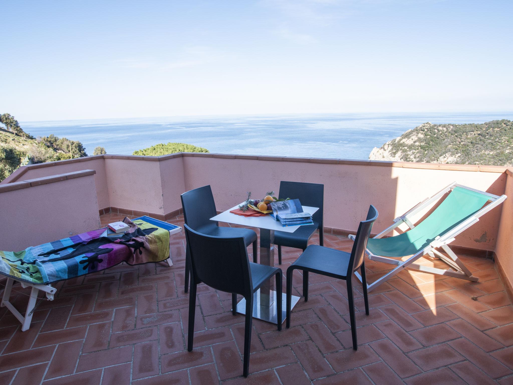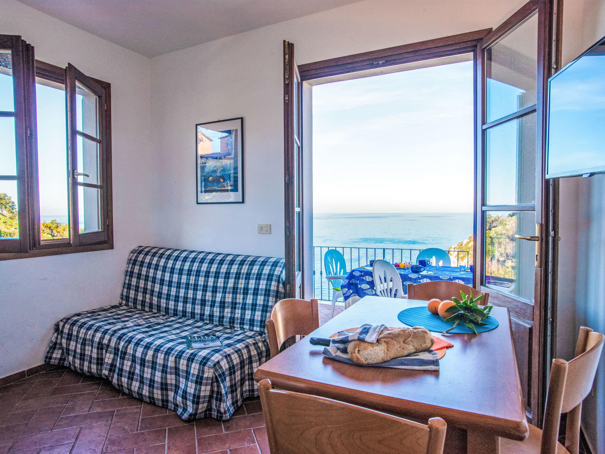 2-Zimmer-Wohnung 40 m2. Zweckmässig und gemütlich eingerichtet: Wohn-/Schlafzimmer mit 1 Doppeldiwanbett, Esstisch und Digital-TV. 1 Doppelzimmer. Kochnische (4 Flammen, Tiefkühler). Ausgang zur Veranda. Dusche/Bidet/WC. Klimaanlage, Warmluftheizung. Terrasse teilweise überdacht. Terrassenmöbel, Liegestühle (2). Schöne Sicht auf das Meer. Parkplatz (überdacht, 1 Auto) in 150 m. Bitte beachten: Nichtraucher-Unterkunft. Eigener Eingang. Bitte beachten: Vom Wohn-/Schlafraum Zugang über 3-4 Stufen zum Schlafzimmer und Bad. IT049010C2X37HRNSB