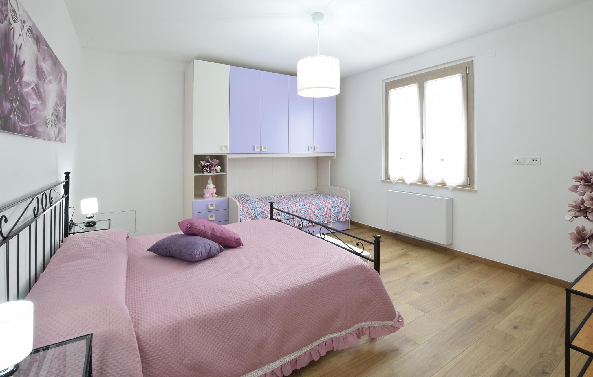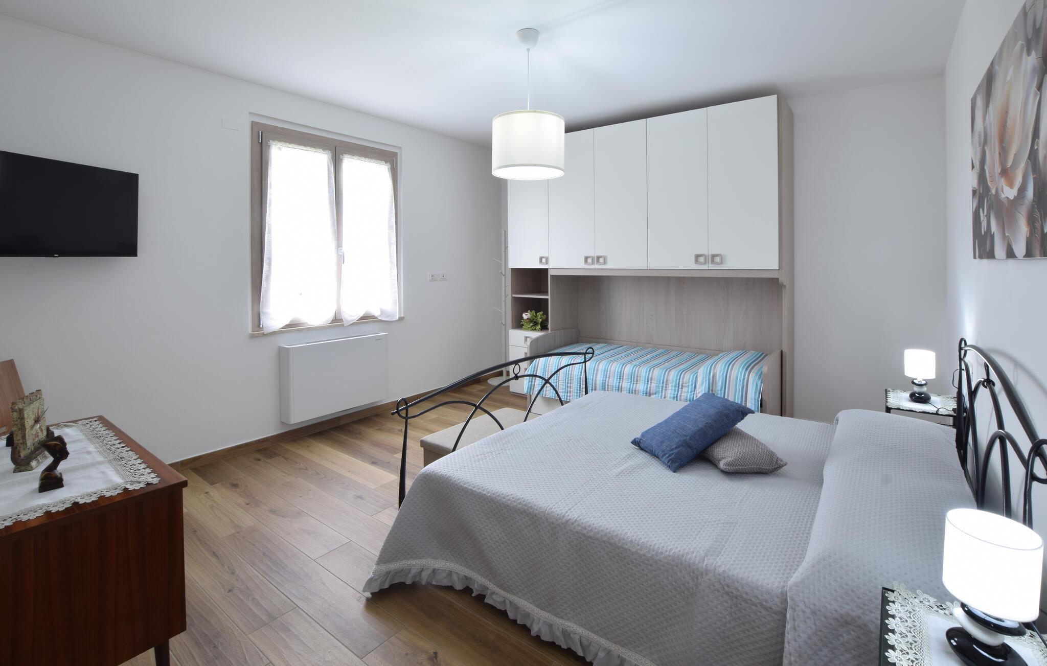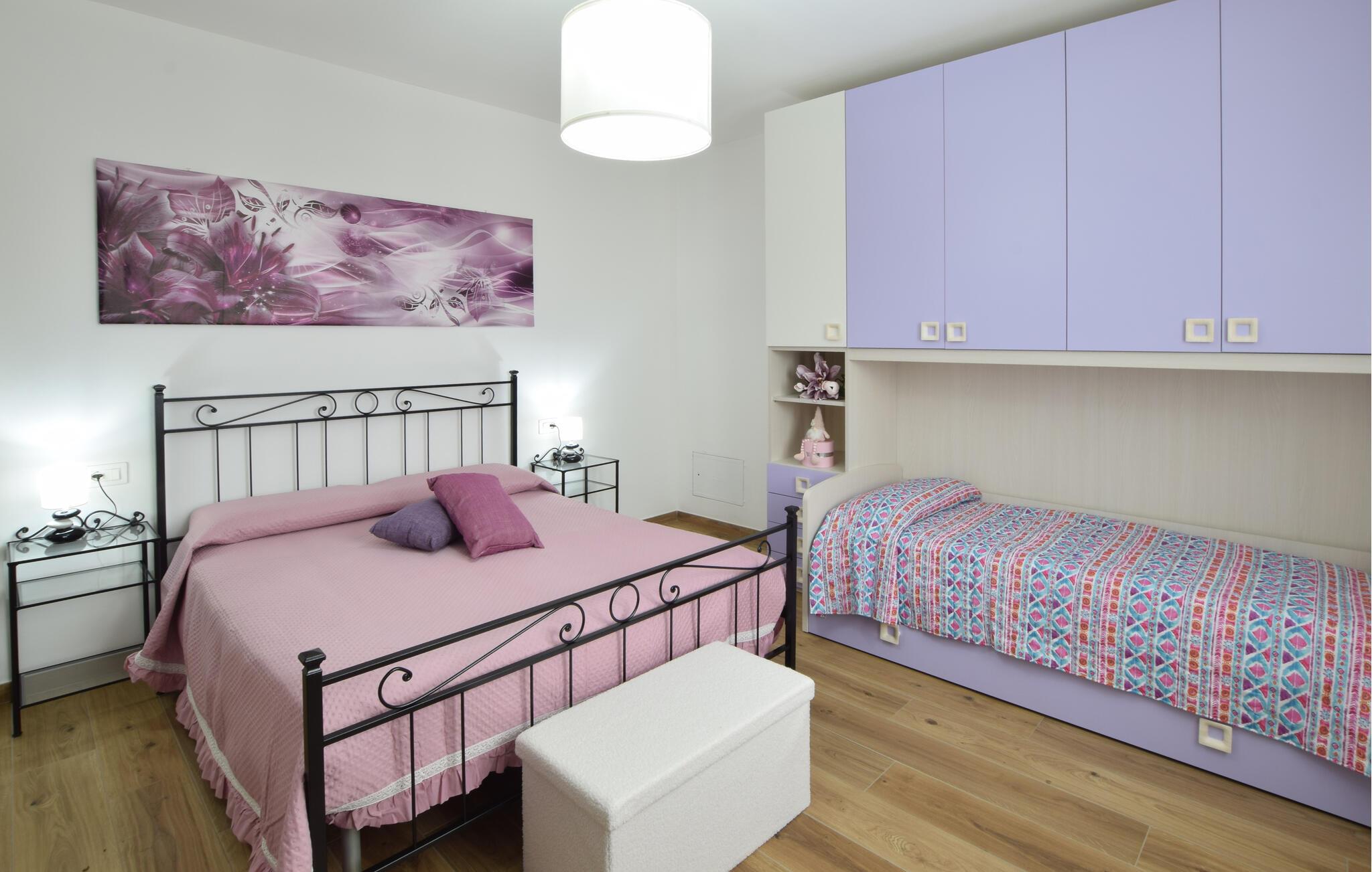 Schlafzimmer (nr. 1) - 2 Schlafmöglichkeiten. (Einzelbett(en)). 2 Schlafmöglichkeiten. (Doppelbett(en)).