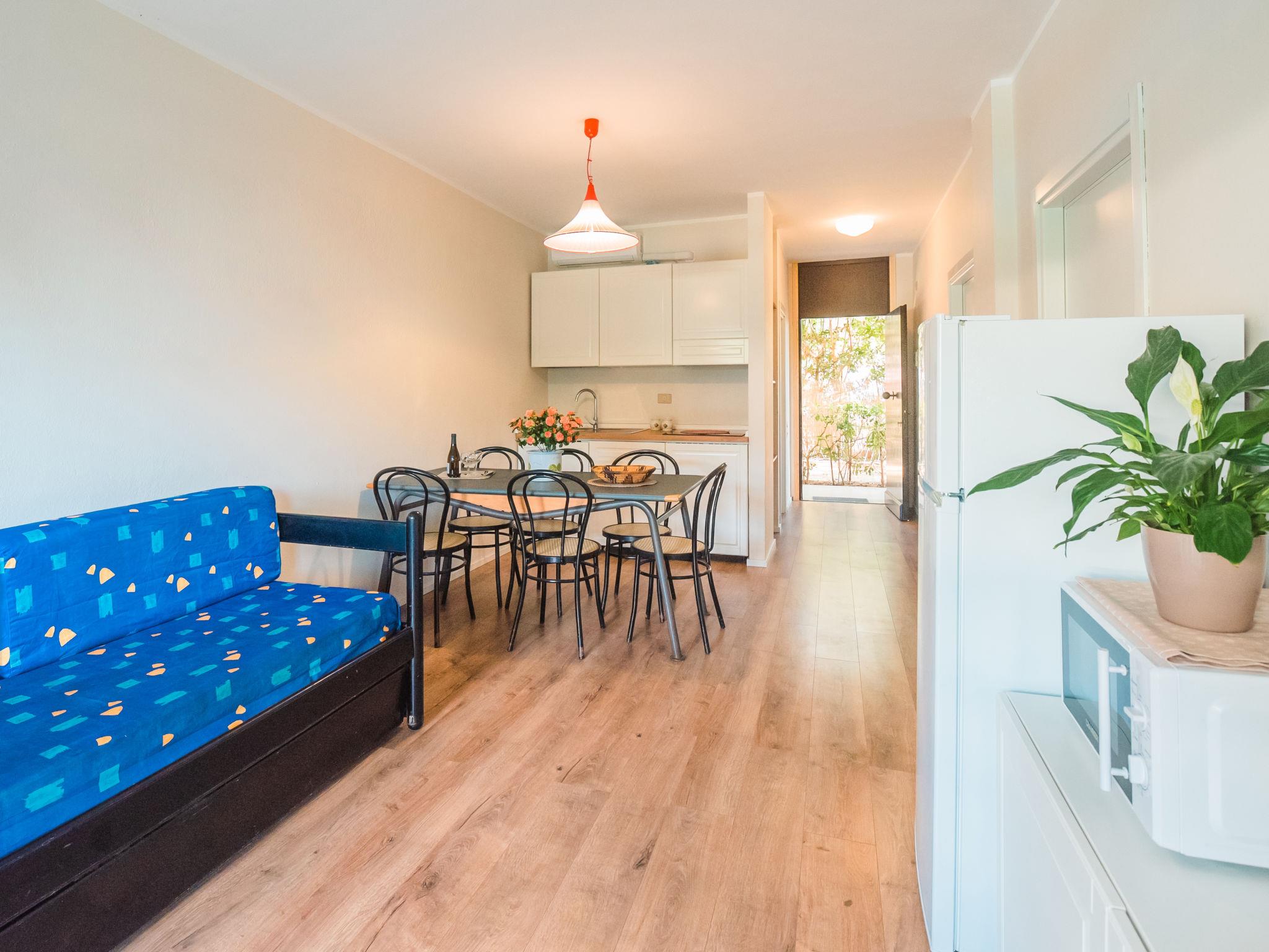 "Trilo Garden", 3-Zimmer-Wohnung 55 m2, im Erdgeschoss. Schön und modern eingerichtet: Wohn-/Schlafzimmer mit 1 Diwanbett, Esstisch, Digital-TV, Flachbildschirm, E-Heizung und Klimaanlage. Ausgang zum Garten, zur Veranda. 1 Doppelzimmer. Ausgang zum Garten, zur Veranda. 1 Zimmer mit 3 Betten. Offene Küche (4 Induktionskochplatten, Mikrowelle, elektrische Kaffeemaschine, Kapseln für die Kaffeemaschine (Nescafe Dolce Gusto) extra). Dusche/Bidet/WC. Balkon 14 m2, Gartensitzplatz. Balkonmöbel. Sicht auf das Schwimmbad. Zur Verfügung: Kinderhochstuhl, Babybett bis 2 Jahre (extra), Haartrockner. Internet (Wireless LAN, gratis). Bitte beachten: Feuerlöscher. IT049001B4AEH7IC3H
