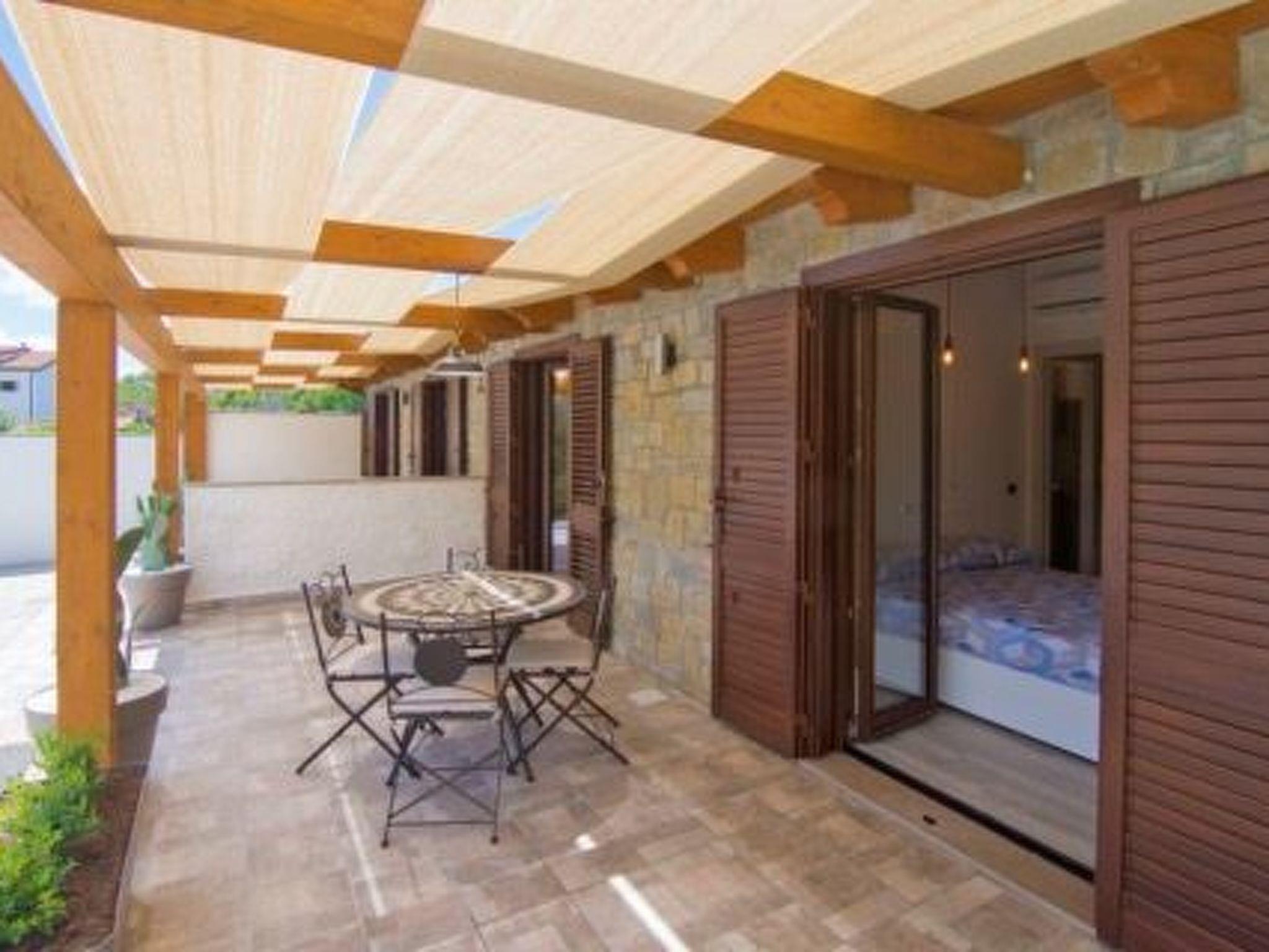 Die große überdachte Terrasse am Eingang ist mit Tisch und Stühlen möbliert. Ein Parkplatz steht im Außenbereich zur Verfügung. Den Gästen stehen die Dusche mit Warmwasser und der gemeinschaftliche Grill zur Verfügung.