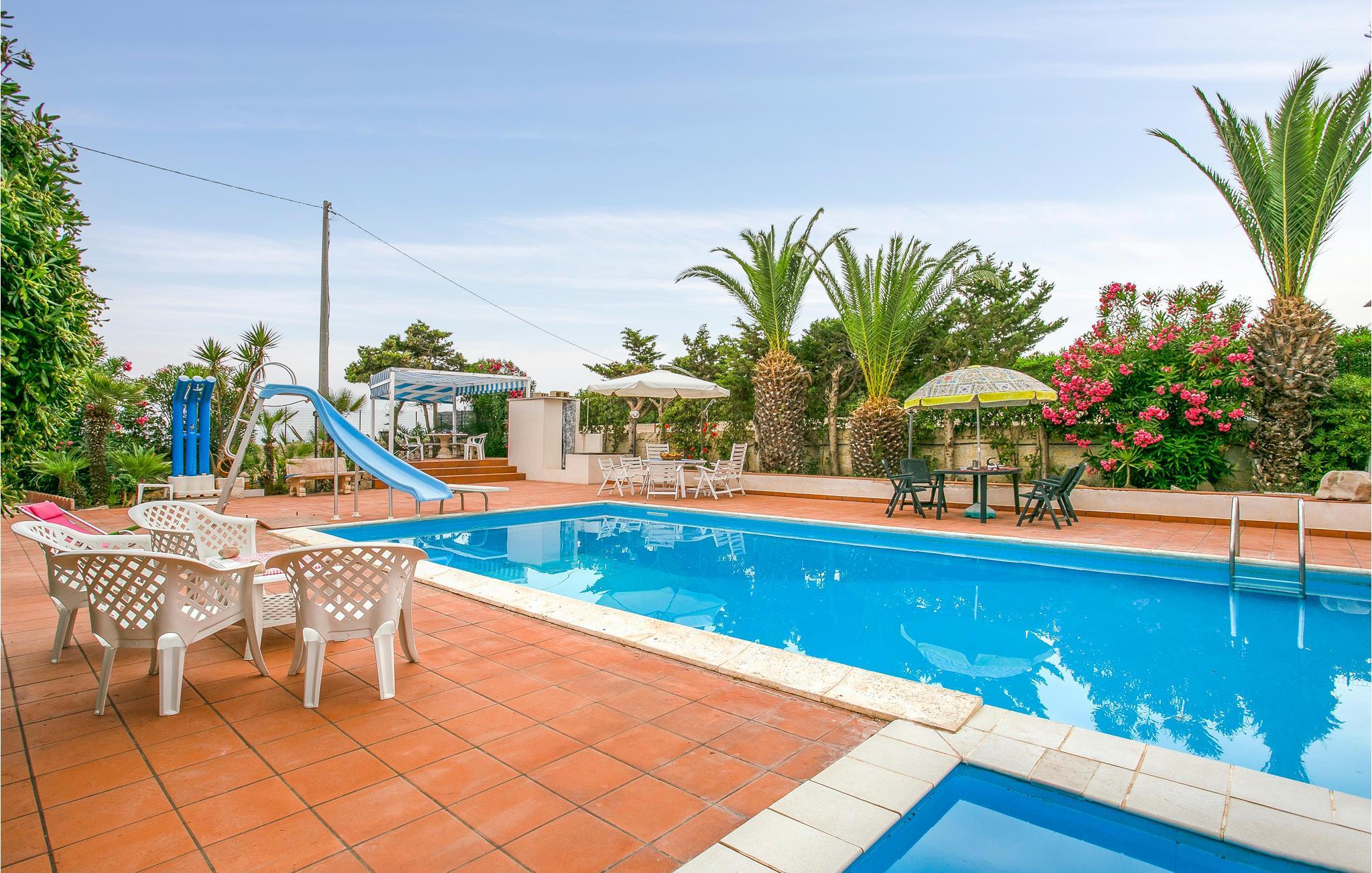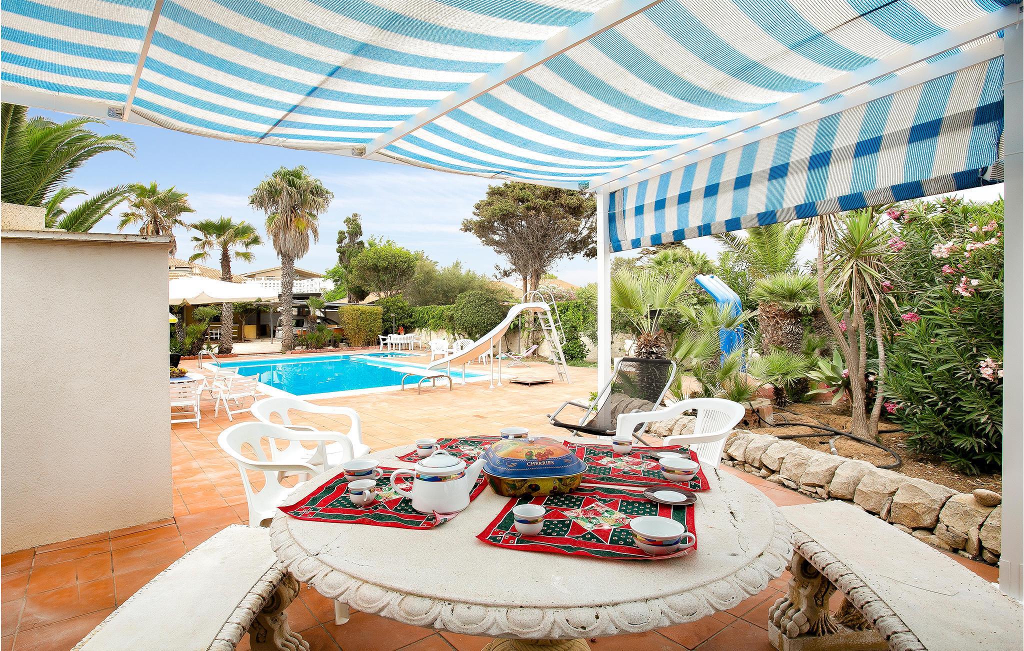 Am privaten Swimmingpool mit Wasserrutsche können Sie viele Stunden in der Sonne und mit Abkühlung im Wasser verbringen. Am Pool gibt es praktischerweise auch eine Dusche und ein Bad. Auf der mit Gartenmöbeln ausgestatteten Terrasse mit Meerblick können Sie den Tag mit einem kühlen Getränk ausklingen lassen und den Grillabend mit der Familie oder Freunden planen. Vom Haus gibt es einen sekundären Ausgang mit direktem Zugang zum Strand.