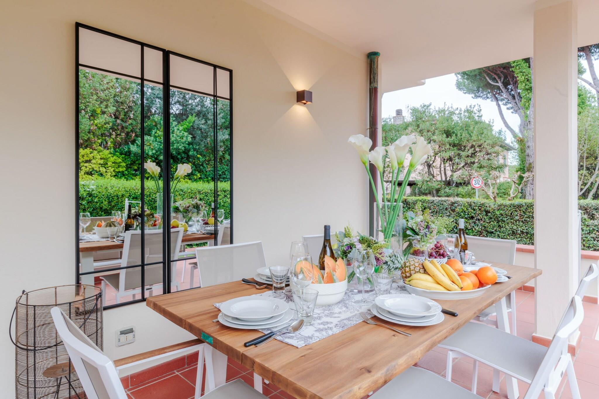 Entdecken Sie die ruhige Schönheit dieser begehrten Villa in Marina di Pietrasanta und genießen Sie von Ihrer privaten Terrasse aus das atemberaubende Licht der Morgendämmerung. Nur 100 Meter vom Strand entfernt und nahe dem pulsierenden Stadtzentrum an der Via Astoria gelegen, bietet dieses geräumige Haus die perfekte Mischung aus Komfort und Bequemlichkeit. Die Villa verfügt über großzügige Wohnbereiche, eine einladende Veranda mit schönem Garten und einen privaten Parkplatz – ein idealer Rückzugsort für Familien und Freunde. Der gut durchdachte Innenbereich der Villa umfasst im Erdgeschoss ein gemütliches Wohnzimmer, ein Esszimmer mit angrenzender Küche, ein Badezimmer mit Dusche und einen Waschraum für zusätzlichen Komfort. Im ersten Stock finden Sie einen Flur, der zu einem luxuriösen Schlafzimmer mit eigenem Bad sowie zwei weiteren Schlafzimmern und einem weiteren Badezimmer führt – für viel Platz zum Entspannen. Die Klimaanlage ist über eine einzelne Einheit im Flur verfügbar und kühlt die Schlafzimmer effektiv, wenn die Türen geöffnet bleiben. Nur wenige Minuten von der lebhaften Strandpromenade entfernt lädt die Villa zum Erkunden der Geschäfte, Cafés und des bezaubernden Meeres ein. Erleben Sie den Charme und die Ruhe der Marina di Pietrasanta Villa, wo Komfort auf den Reiz des Küstenlebens trifft. Hinweis: Kurtaxe ist vor Ort zu entrichten.
