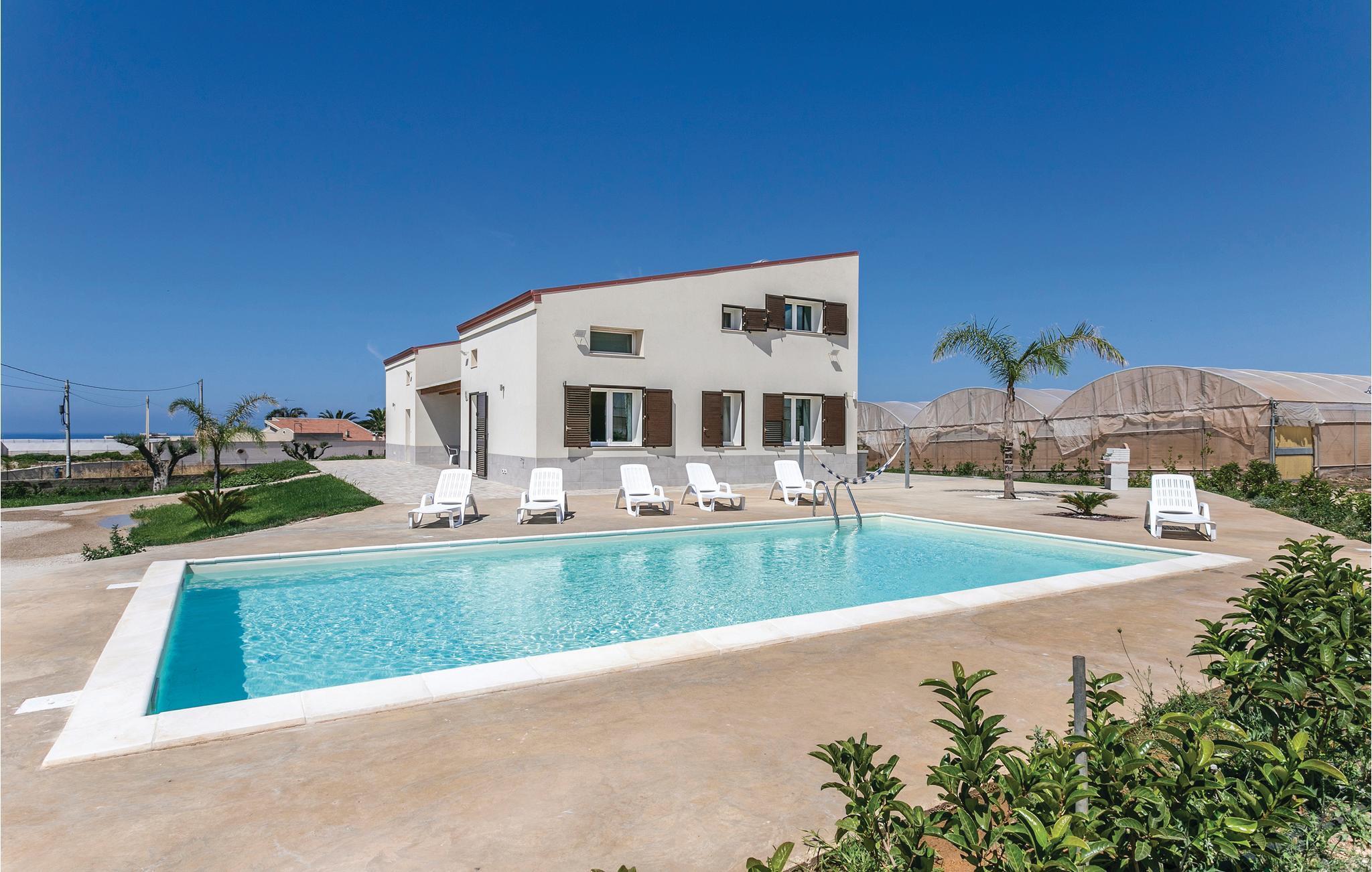 Dieses Ferienhaus ist umgeben von einem grünen Grundstück von 1500 m2 mit einem exklusiven Pool. Es befindet sich am Ortsbeginn des Badeortes Marina di Ragusa, auf einer kleinen Landzunge mit einem bezaubernden Meerblick! Sehr heller Wohnbereich mit großen Fenstern und Blick auf den Garten und den Pool. Angenehme überdachte Terrasse, ausgestattet zum Entspannen mit herrlichem Ausblick, sonnige Terrassen auf drei Seiten der Villa. Marina di Ragusa liegt an der Ibleo-Küste mit weitläufigen Stränden, die durch feinen, goldenen Sand und ein kristallklares Meer gekennzeichnet sind. Der hübsche Ferienort an der Südküste Siziliens ist nicht nur für seine Küste beliebt, sondern auch für seinen gut ausgestatteten Jachthafen, seine Plätze und charakteristischen engen Gassen mit Geschäften, Märkten, typischen Restaurants mit Spezialitäten der Sizilianischen Küche, Pizzerien, Eisdielen, Bars, Discos und das pulsierende Nachtleben. Idealer Ausgangspunkt für den Besuch der Spätbarocken Städte: im Umkreis von etwa 20 km Ragusa Ibla, Modica, Scicli und Comiso; 100 km Catania, Syrakus und Noto. 15 km der Flughafen von Comiso.
