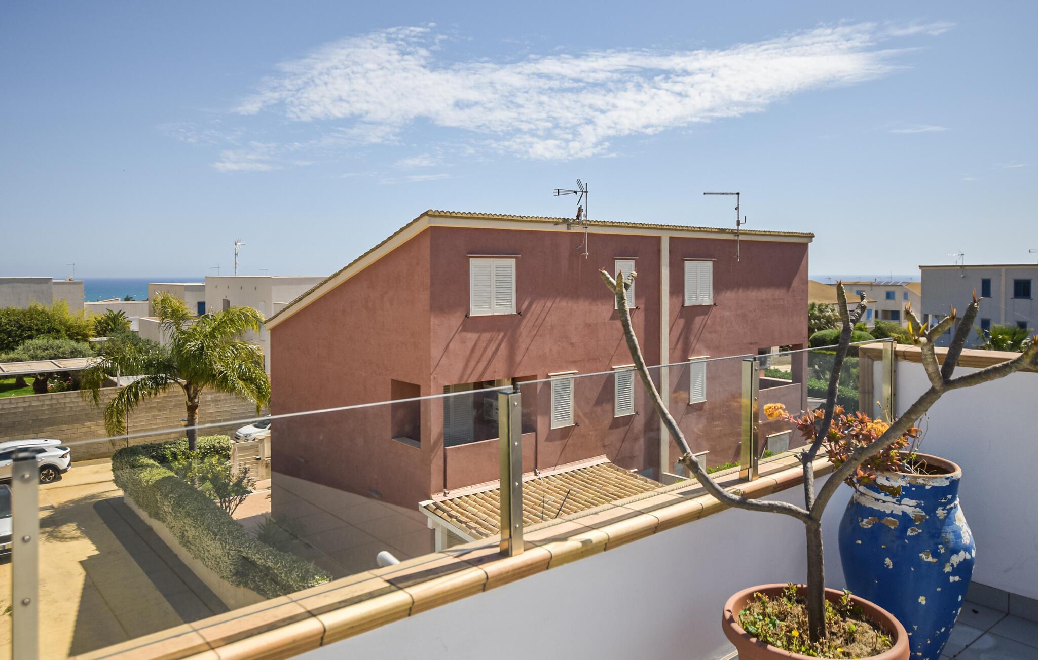 Am Stadtrand von Marina di Ragusa empfängt Sie dieses große und geschmackvolle Ferienhaus, das Ihnen mit Ihrer Großfamilie oder einer befreundeten Familie ausreichend Platz bietet. Genießen Sie die Vorzüge des Hauses und entspannen sich auf den drei Etagen des Hauses. Mehrere Balkone und Terrasse bieten Ihnen Raum für Privatsphäre und auch den Luxus im Freien kochen zu können. Sonnen und genießen Sie die Gesellschaft Ihrer Lieben im Freien, nehmen ein Sonnenbad, radeln auf dem Ergometer oder genießen von der Dachterrasse den Blick auf das Meer und Sonnenuntergänge.