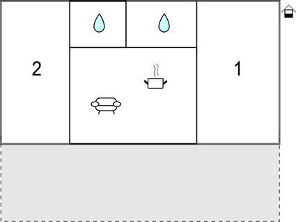 Badezimmer 4m2 (nr. 1) - WC. Warmes und kaltes Wasser. Dusche