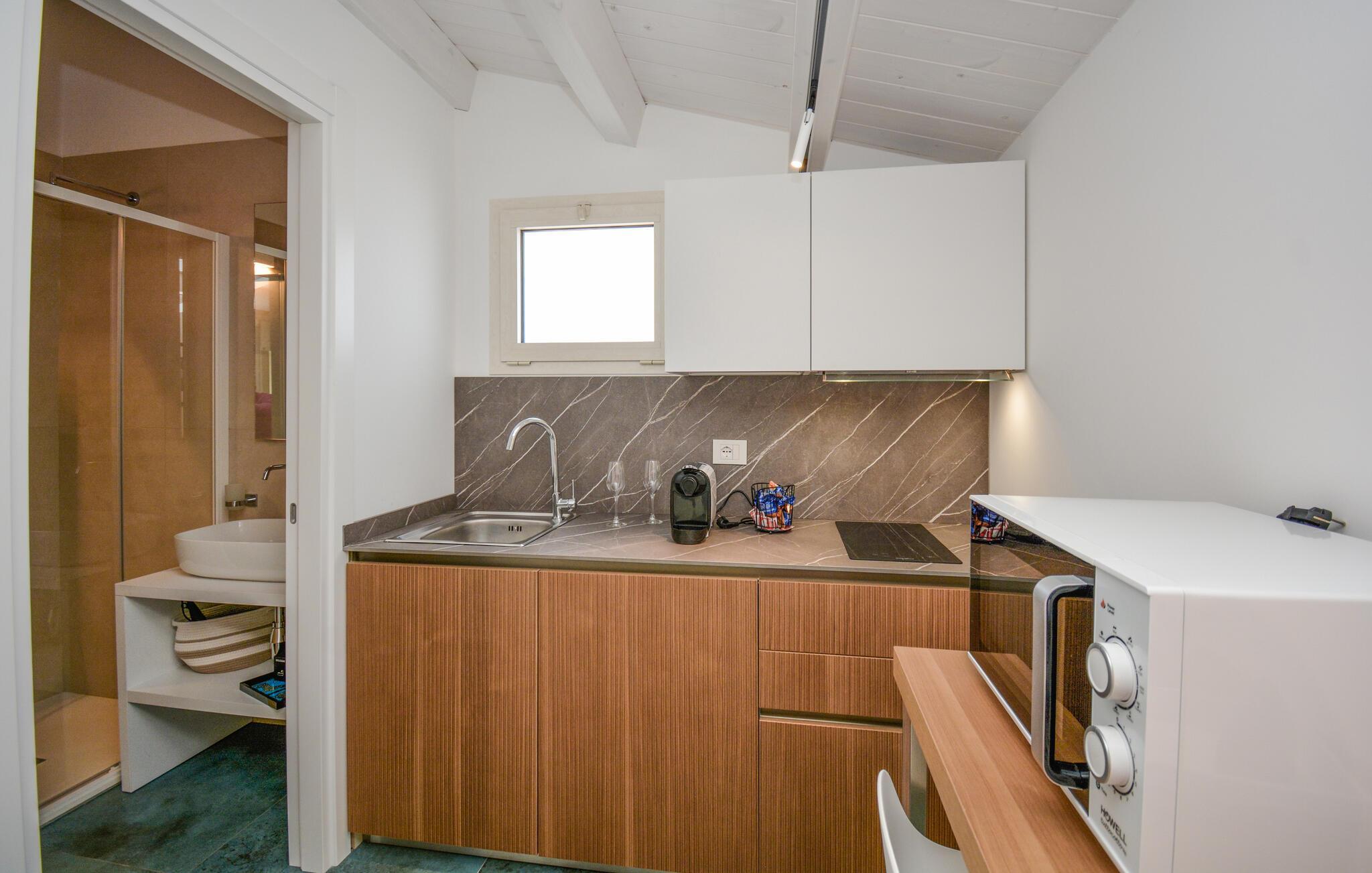 Die Küchenzeile verfügt über heißes Wasser