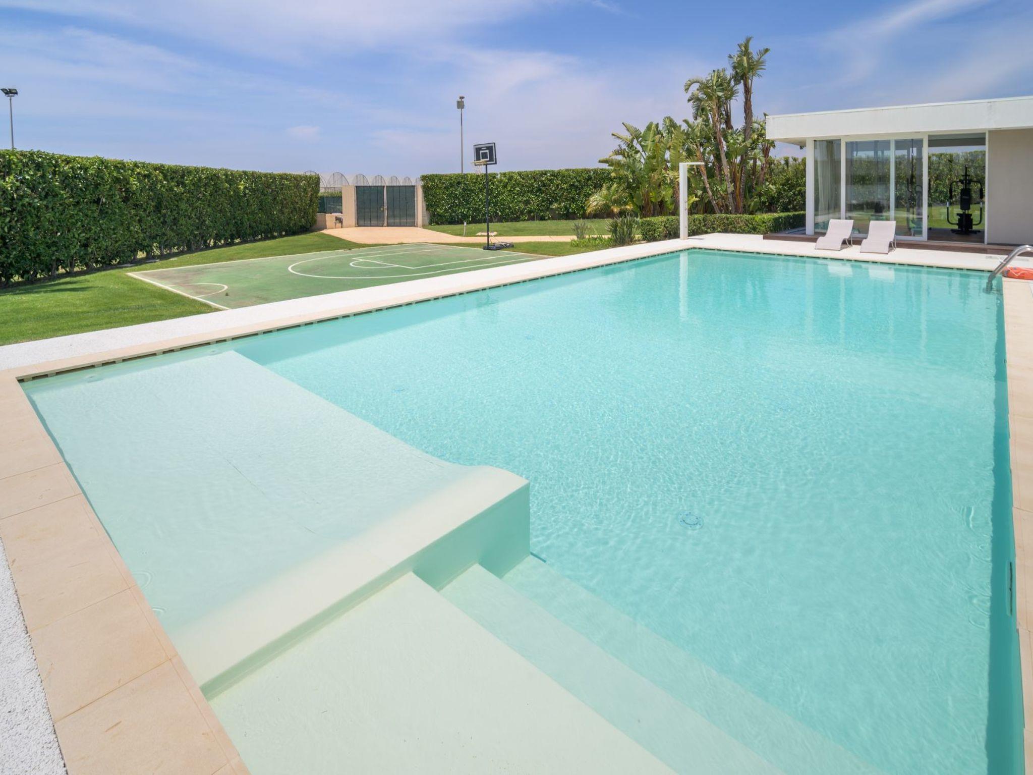 Die Villa liegt in einen 4000 m2 Grundstück und bietet einen großen Garten reich an üppigen Blühpflanzen, Blumenbeete, Palmen und Johannisbrotbäumen.