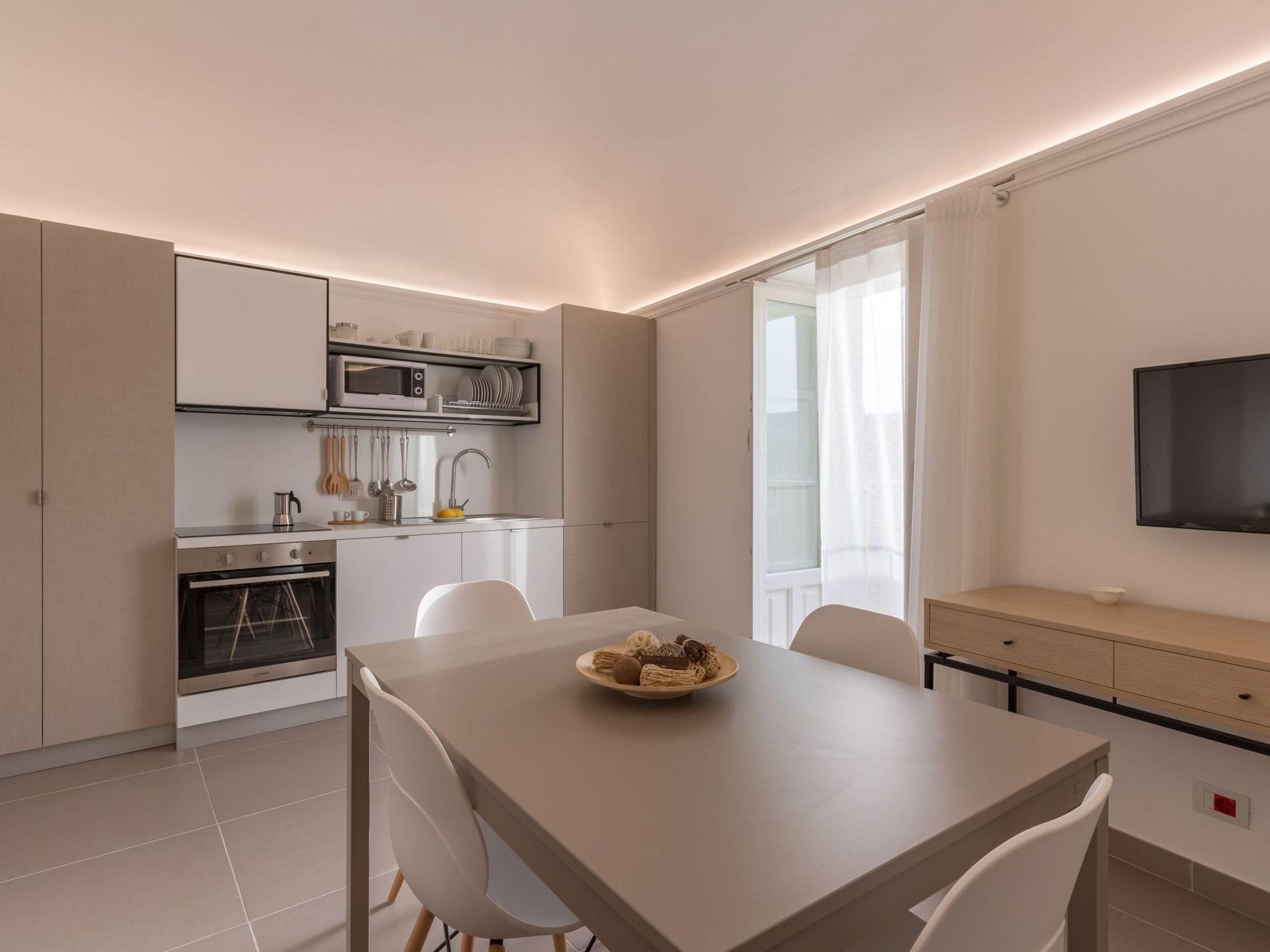 Großes und komfortabel ausgestattetes Appartement mit Balkon mit wunderschönem Blick auf den Dom San Giorgio und die daneben liegende Piazza. Das Appartement befindet sich im zweiten Stock eines Adelspalastes von 1890 und wurde erst kürzlich mit großer Sorgfalt restauriert (2018). Eine breite Treppe in Pechstein führt zum Appartement, das durch seine erlesenen und eleganten Innenbereiche glänzt. Indirekte Beleuchtung bringt die Designermöbel in zarten und warmen Farben besonders gut zur Geltung. Die Unterkunft ist gut ausgestattet und bietet jeglichen Komfort auch dank der Harmonie zwischen historischer Substanz und Moderne, die sich in den verzierten Stuckdecken, den Zierfliesen sowie dem gelungenen Zusammenspiel moderner Möbel mit klarer Linienführung und Vintage-Stil zeigt. Sie besteht aus einem Wohnbereich und einem Schlafbereich mit 2 Schlafzimmern sowie 3 Bädern. Der Wohnbereich besteht aus einem eleganten Wohnzimmer mit Zugang zum Balkon und phantastischem Blick. Das Wohnzimmer mit dekorativem Fliesenboden und mit Fresken bemalten Decken ist mit bequemen Sitzmöbeln für viele schöne Momente der Entspannung ausgestattet. Zudem gibt es einen Großbildfernseher und eine kleine Bar. Eine moderne Küche mit Esszimmermöbeln, TV sowie einer gemütlichen Schlafcouch für zwei Personen bietet eine Kühl,- Gefrierkombination, Geschirrspülmaschine, Mikrowelle und Induktionsherd. Ein Bad mit Massagedusche. Zwei Schlafzimmer: ein großes Schlafzimmer mit Doppelbett mit Blick und eigenes Bad mit Massagedusche; ein Doppelzimmer mit eigenem Bad und Massagedusche geht auf einen kleinen Balkon mit Blick hinaus. Jedes Zimmer ist mit TV und Safe ausgestattet. Klimaanlage in jedem Zimmer, Fön in jedem Bad und Internet-Zugang WLAN. Ein Waschraum zur gemeinsamen Nutzung mit den anderen zwei Appartements mit Waschmaschine und Trockner.