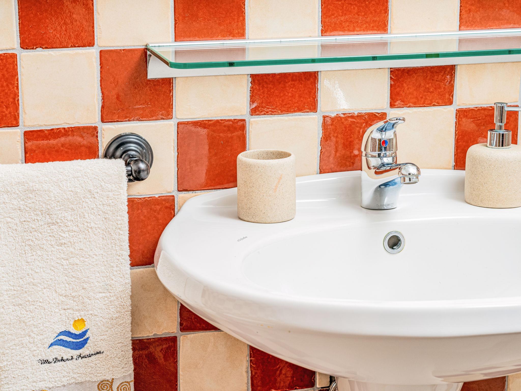 "Ammentos", 2-Zimmer-Wohnung 57 m2, im Obergeschoss. Gemütlich eingerichtet: Wohn-/Esszimmer mit 1 Diwanbett (180 cm, Länge 80 cm), TV und Sat-TV (Flachbildschirm). Ausgang zur Terrasse. 1 Doppelzimmer. Kochnische (Backofen, Geschirrspüler, 4 Induktionskochplatten, Toaster, Wasserkocher, elektrische Kaffeemaschine). Dusche/Bidet/WC. Klimaanlage, Warmluftheizung. Kleine Terrasse teilweise überdacht. Terrassenmöbel, Sitzplatz. Panoramasicht auf das Meer. Zur Verfügung: Bügeleisen, Fliegengitter, Haartrockner. Internet (WLAN, gratis). IT090069B4000E8533