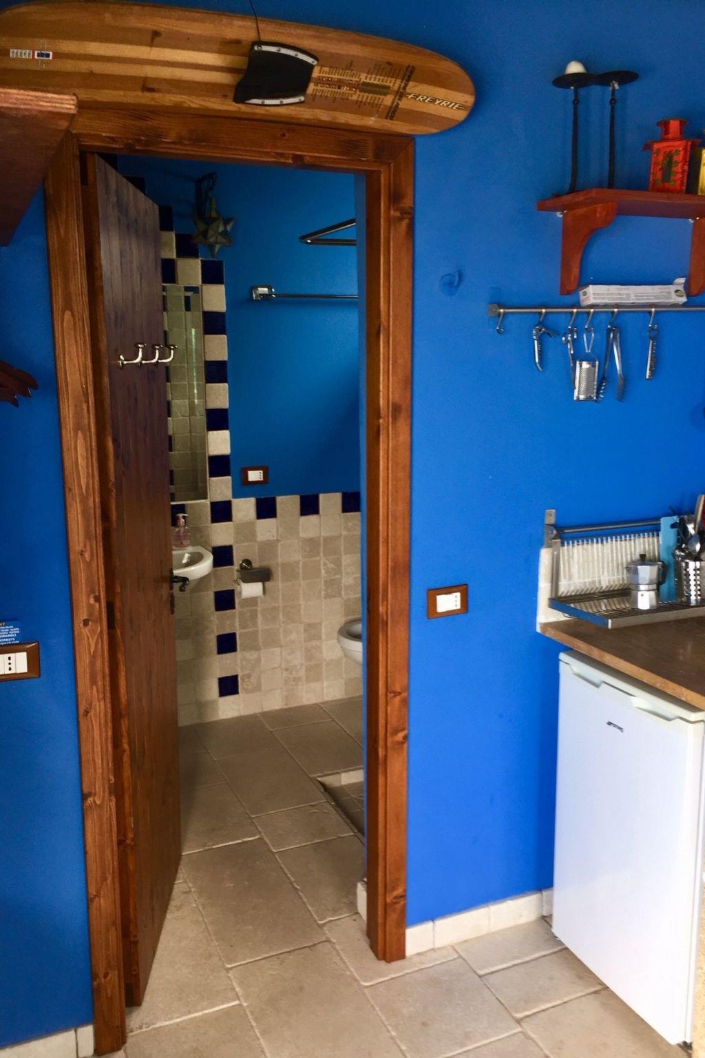 Das Innere dieses gemütlichen Studios ist funktionell und elegant gestaltet. Ausgestattet mit einem Schlafbereich mit einem bequemen Doppelbett (160 x 200 cm), ist es ideal, um sich nach einem Tag an der schönen Küste zu erholen. Das Badezimmer aus Naturstein verleiht dem Ambiente eine charmante Note und macht es noch besonderer. Die offene Küche mit Zweiflammenkocher erfüllt trotz ihrer kompakten Größe alle kulinarischen Bedürfnisse für die Zubereitung köstlicher Mahlzeiten, die man zu zweit genießen kann. Außerdem sorgt der Ventilator an heißen Tagen für ein angenehmes Klima in der Wohnung.