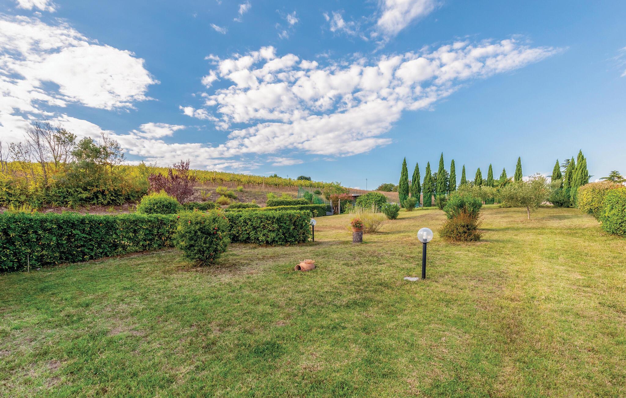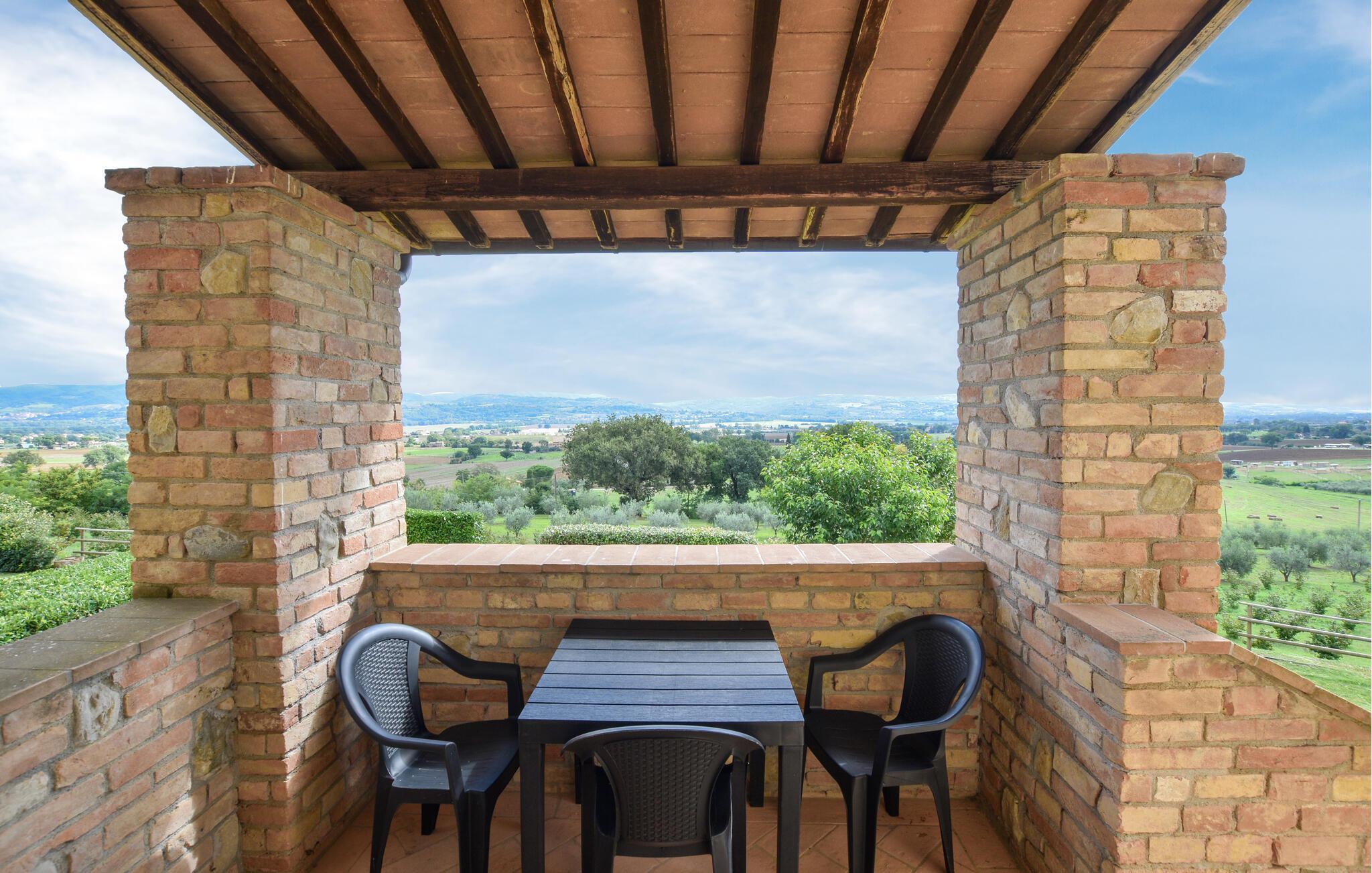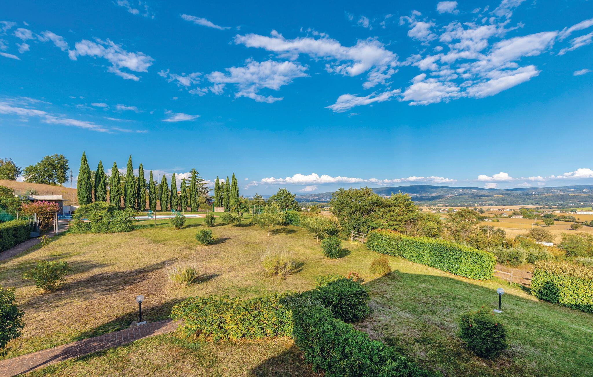 Entdecken Sie die wunderschöne Region Umbrien von dieser Ferienwohnung aus. Sie liegt in einem historischen Landhaus auf einem 5 ha großen Privatgrundstück, auf einem sanften Hügel oberhalb eines schönen Tals mit charakteristischen, umbrischen Dörfern. Das Haus wurde renoviert und in 4 geräumige Ferienwohnungen umgewandelt (IUP758, IUP759, IUP760 und IUP761), die man auch zusammen für 16 Schlafplätze mit der Hausnummer IUP773 buchen kann. Genießen Sie die ruhige Lage und die Panoramaaussicht auf die Umgebung. Der Pool sind zur gemeinschaftlichen Benutzung. Unterbringung: 1. Stock (80m²): Geräumiges Wohn- / Esszimmer (TV), private Treppe, hinunter zu einem Grünbereich von ca. 200 m²; Kochnische, 1 Doppelbettzimmer mit Bad mit Dusche, 1 Zweibettzimmer, 1 Bad mit Dusche (Waschmaschine). Entfernungen: 1.6 km Lebensmittelgeschäfte, 7 km Marsciano (Geschäfte aller Art), 10 km Deruta (sehr bekannt für seine Töpferkunst), 20 km Perugia, 30 km Assisi. Die Region Umbrien mit ihrem Mix aus Kultur, Tradition, unberührter Natur und gastronomischen Spezialitäten wird Sie garantiert überraschen!
