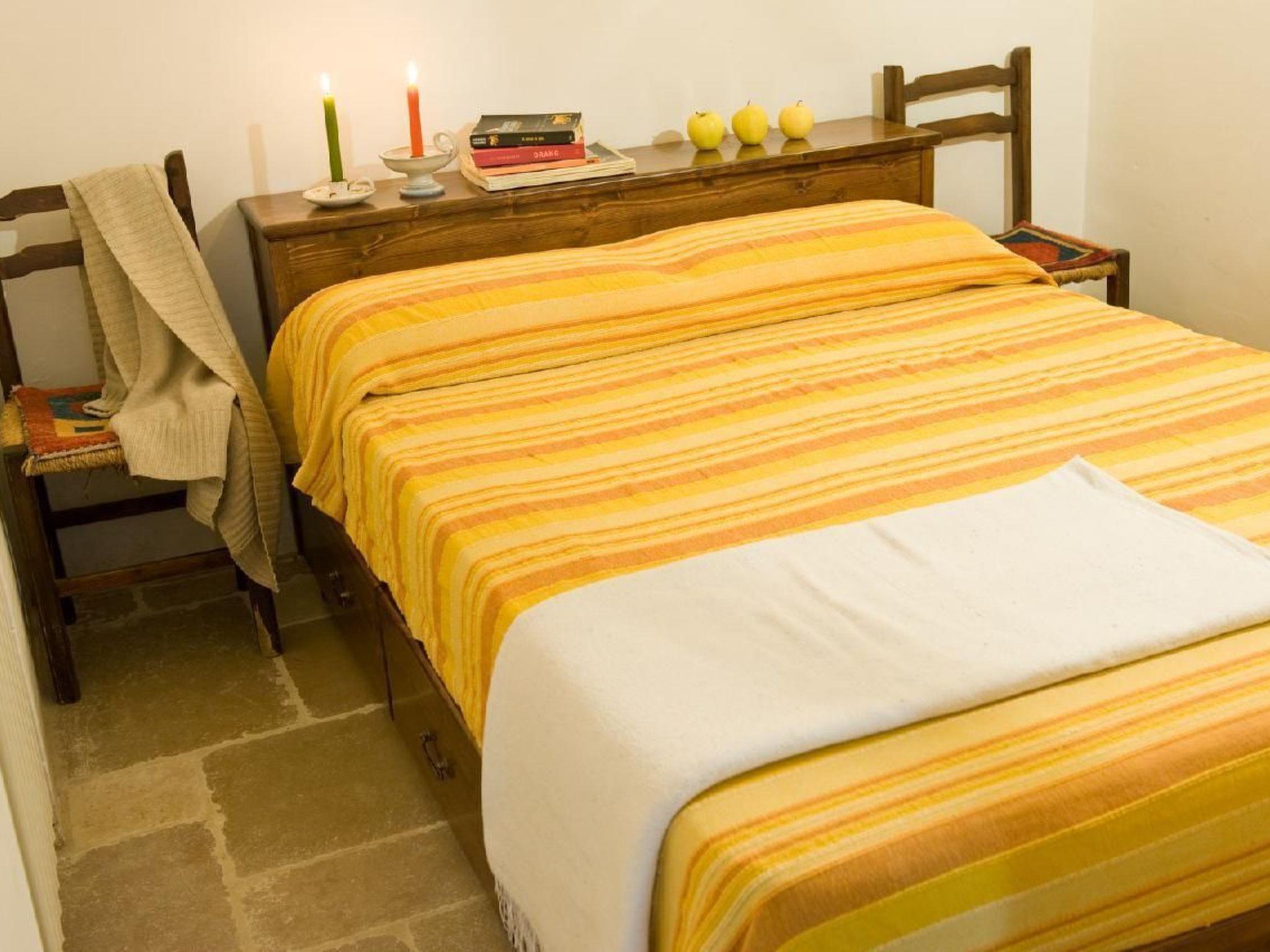 Das Innere des Trulli La Canonica wurde so gestaltet, dass es Sie mit absolutem Komfort empfängt: vier unabhängige Schlafzimmer, zwei Badezimmer mit allem Zubehör, ein Wohnzimmer mit einer voll ausgestatteten Küche, ein großer Raum mit Kamin und einer Doppelschlafcouch. In diesem Raum können bis zu neun Personen in einer Umgebung untergebracht werden, die moderne Einrichtungen mit dem rustikalen und traditionellen Charme der Trulli-Architektur mit ihren Steinen, Gips, Bögen und Holzbalken verbindet.