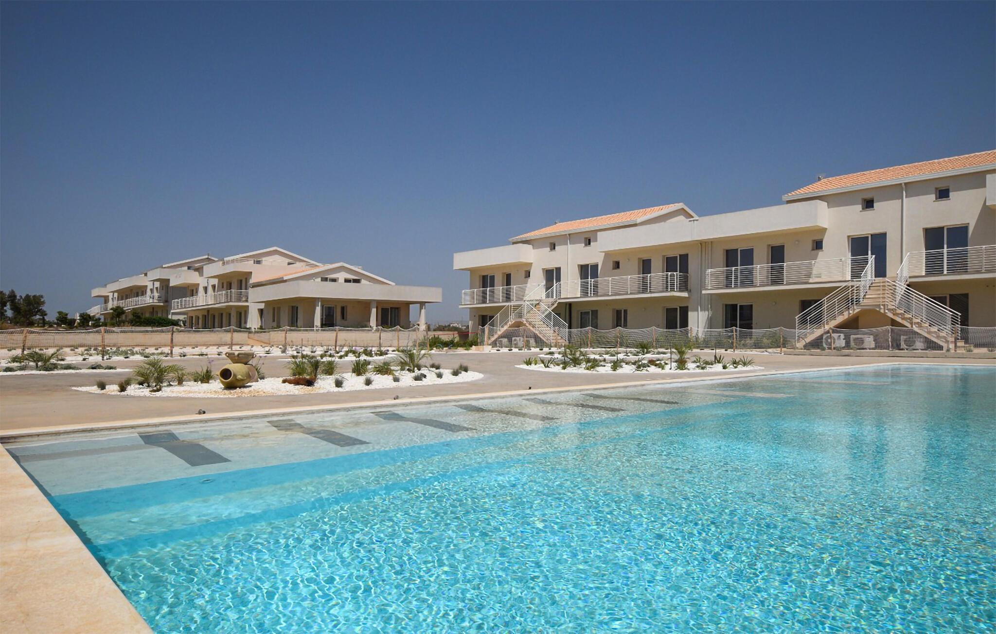 Der Pool, den Sie sich mit anderen teilen, sorgt jederzeit für eine erfrischende Abkühlung. Springen Sie schon morgens in ruhiger Atmosphäre ins glitzernde Wasser oder abends nach einem erlebnisreichen Tag. Sonnenliegen laden zum Entspannen ein, und wer Lust auf Bewegung hat, kann im Fitnessraum trainieren oder sich beim Beachvolleyball und Padeltennis mit anderen Gästen messen.