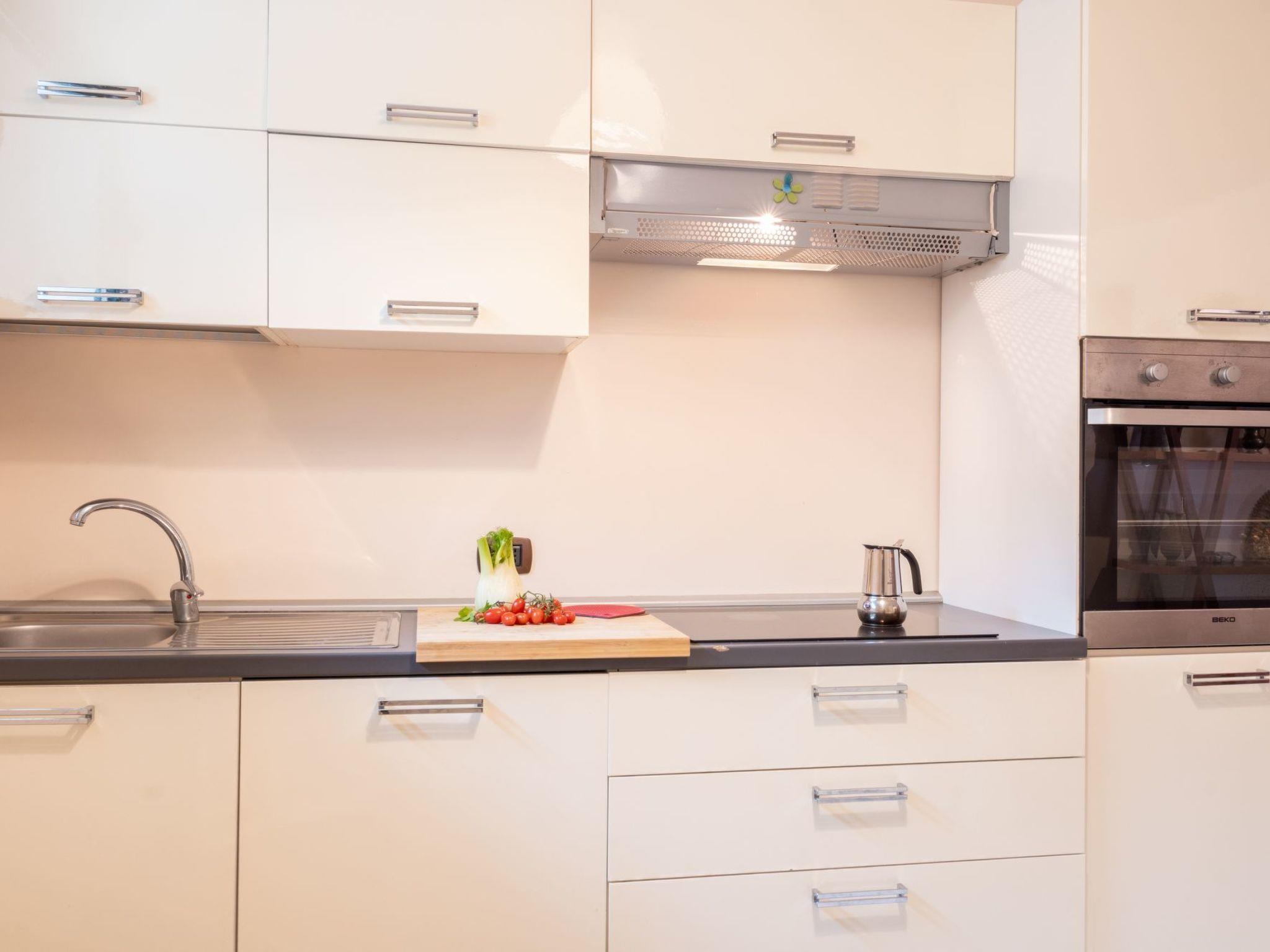 Der offene, gut ausgestattete Kellerraum verfügt über ein Schlafsofa, während das Hauptschlafzimmer mit einem Doppelbett und einem Kinderbett für einen weiteren Gast ausgestattet ist. Die komplette Küche ist mit Geschirrspüler, Backofen, Induktionskochfeld, Kühlschrank und Gefrierschrank ausgestattet, ideal für diejenigen, die auch im Urlaub gerne kochen.