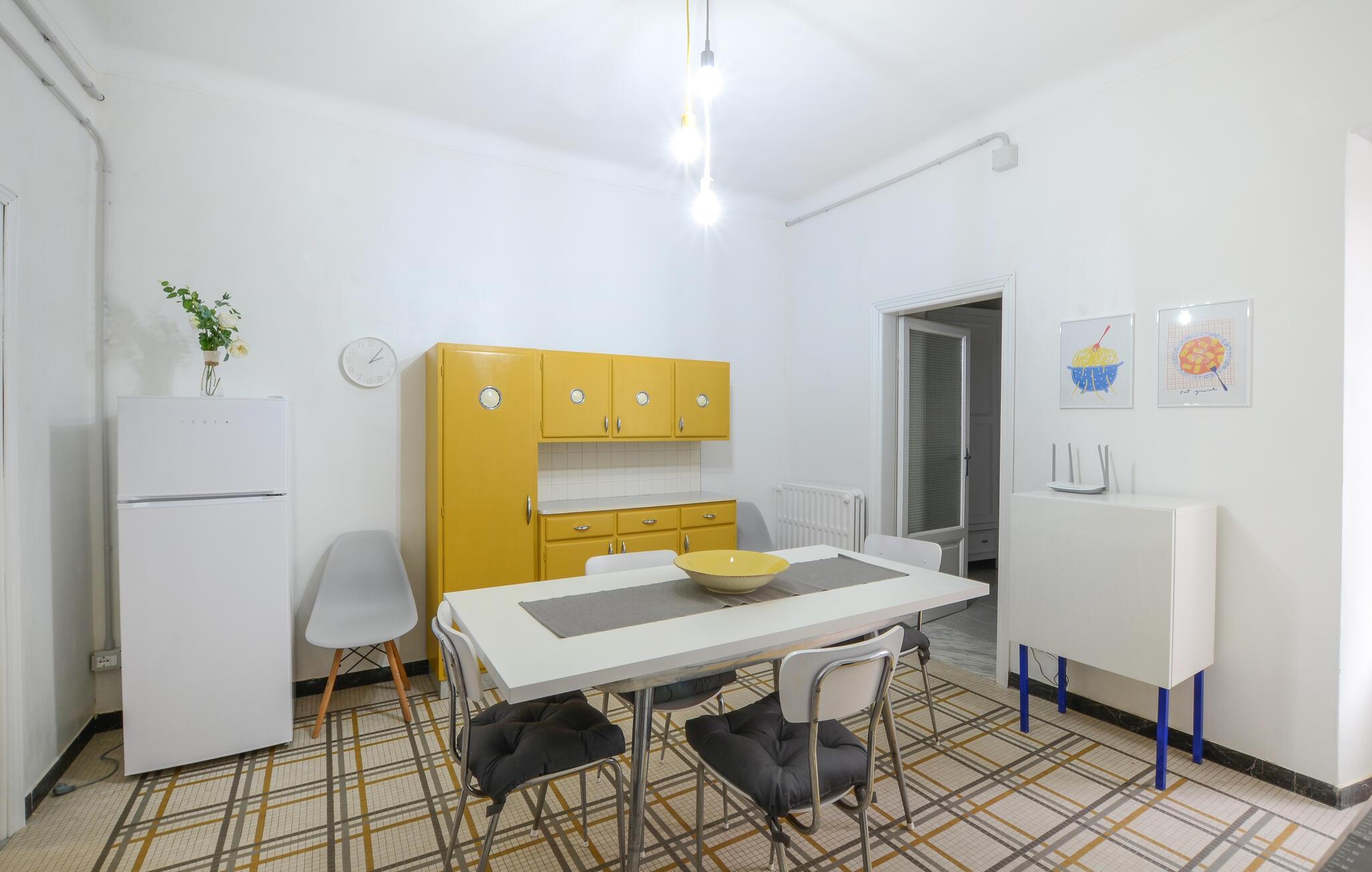 Freuen Sie sich auf diese freundliche Ferienwohnung, die Sie mit bunten Farbakzenten begrüßt. Man merkt sofort, dass kreative Köpfe hier gestaltet haben. Die Ausstattung bietet Ihnen die idealen Vorraussetzungen, um gemeinsam zu kochen, zu spielen oder einfach nur zu relaxen. Auf der Terrasse können Sie es sich nach einem schönen Tag gemütlich machen.