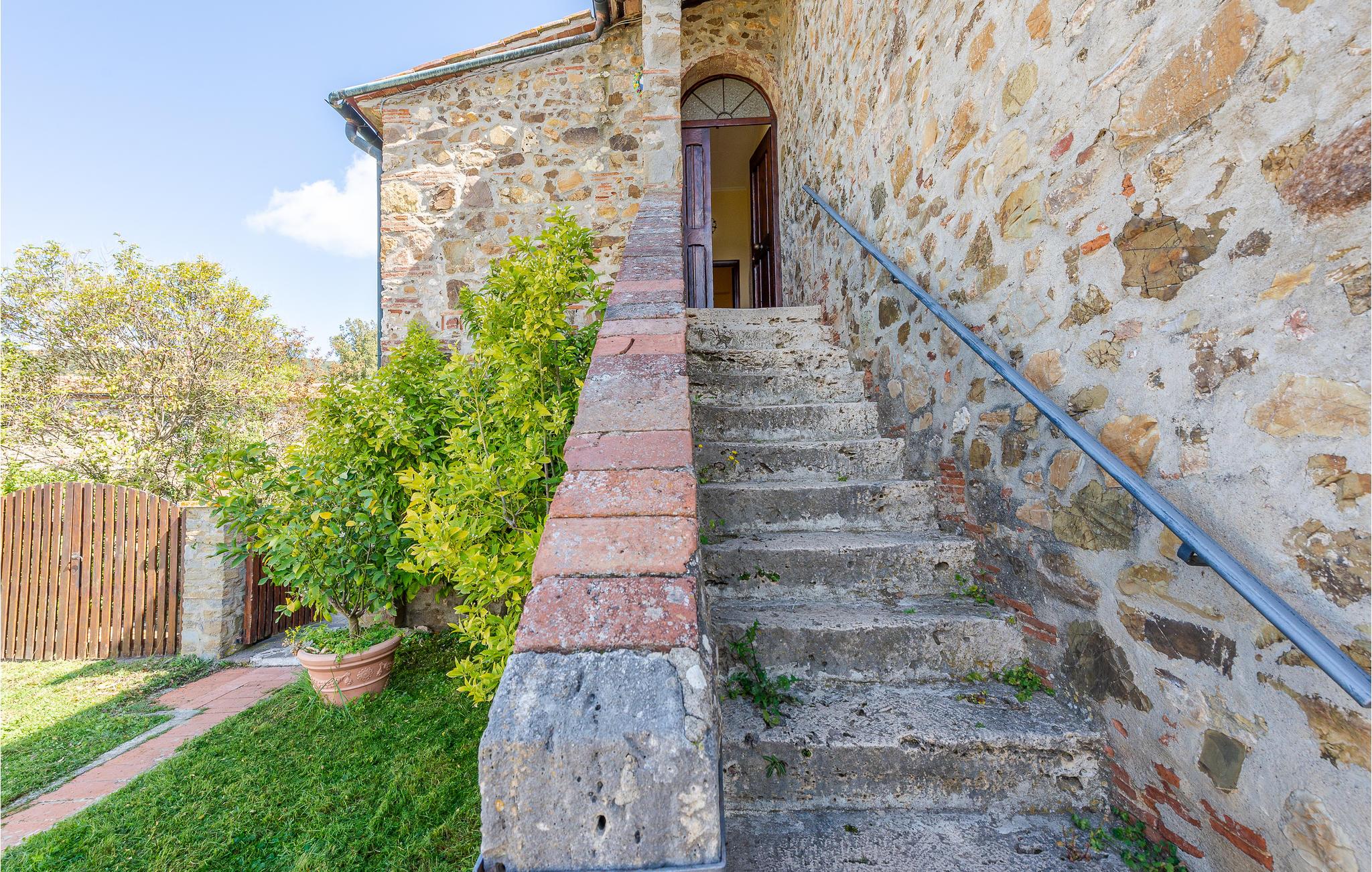 Wohnung in einem Bauernhaus auf einem umzäunten Weingut (ca. 5 ha). Weiter Blick auf das Land. Ruhige Lage. Weitläufiges, ausgestattetes, bepflanztes Grundstück und Grill in Gemeinschaft. Parkplatz. Entfernungen: Ca. 2 km Reitbahn, 4 km Massa Marittima (Geschäfte aller Art), 25 km Follonica (Strände).