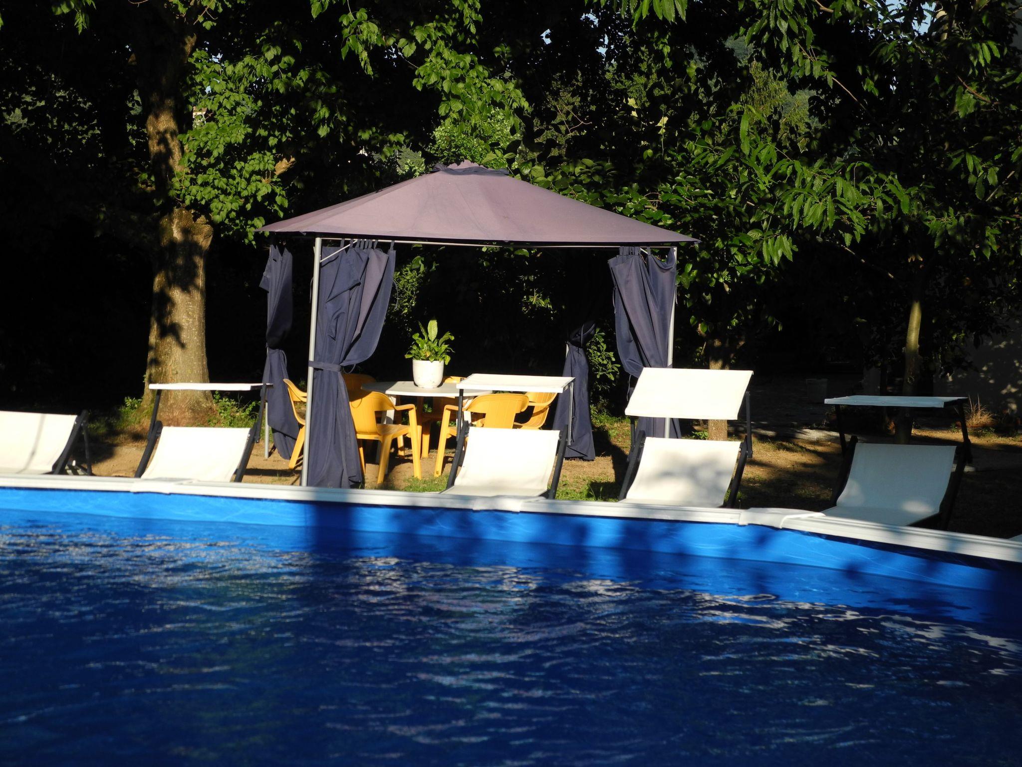 Im Außenbereich öffnet sich die Villa zu einem 2000 m² großen Garten, einem kleinen privaten Paradies mit einem oberirdischen Swimmingpool (geöffnet von Mitte Mai bis Anfang Oktober), der an heißen Sommertagen für Abkühlung sorgt. Die überdachte Terrasse und der möblierte Pavillon bieten ideale Plätze für Mahlzeiten im Freien, während der Grill zu geselligen Abenden unter dem Sternenhimmel einlädt. Die Außendusche sorgt für zusätzlichen Komfort bei Ihrem Aufenthalt im Freien.