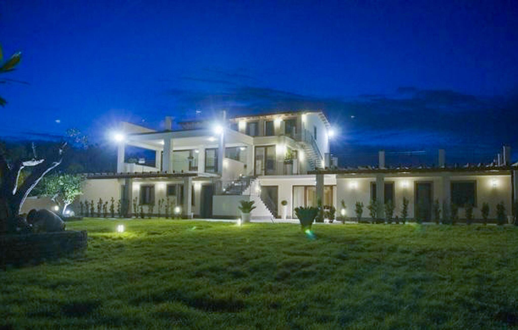 Draußen erwarten Sie eine großzügige Terrasse und ein gepflegter Garten mit Pool, den Si emit anderen Gästen teilen – der ideale Ort, um sich zu entspannen, ein Buch zu lesen oder die sizilianische Sonne zu genießen.