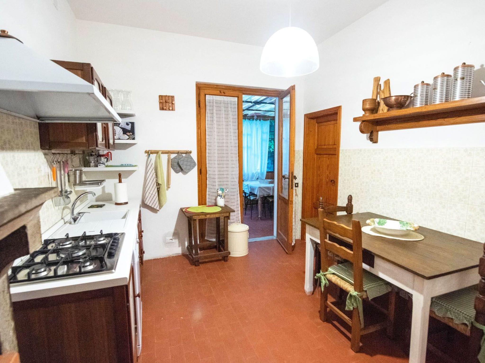 Das Innere der Villa ist geräumig und komplett ausgestattet, um allen Ansprüchen gerecht zu werden. Sie verfügt über drei komfortable Schlafzimmer, die allen Gästen Ruhe und Privatsphäre bieten, und ein Badezimmer mit Dusche, in dem man sich nach einem Tag in der schönen toskanischen Landschaft erfrischen kann. Das Vorhandensein von Elektrogeräten wie Waschmaschine und Geschirrspüler sorgt für zusätzlichen Komfort während Ihres Aufenthalts. Für Momente der Entspannung trägt der Kamin zu der warmen und gemütlichen Atmosphäre bei, die typisch für Landhäuser ist.
