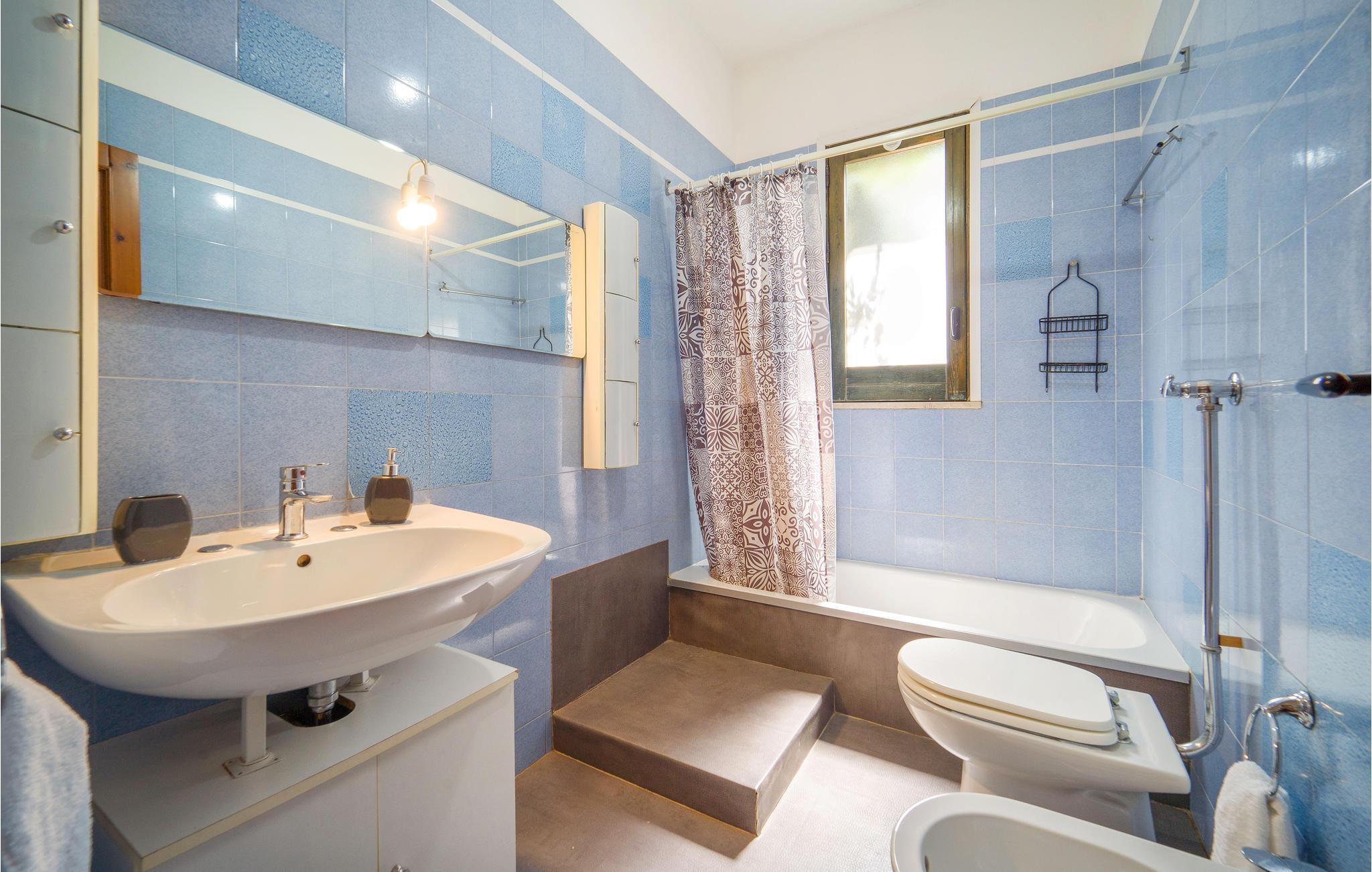 Badezimmer (nr. 1) - WC. Warmes und kaltes Wasser. Dusche und Badewanne
