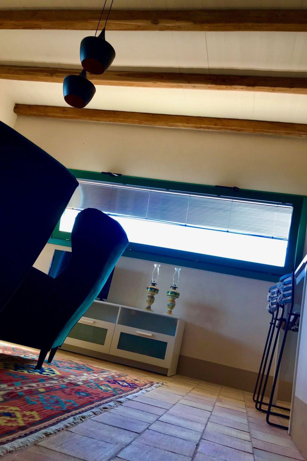 Die Palme, eine weitere Zierpflanze, die seit Jahrhunderten die Landschaft Siziliens prägt, begrüßt die Gäste, die in diesem Haus wohnen möchten. Der Zugang zum Haus der Palme erfolgt über eine große, schilfbewachsene Veranda mit Panoramablick, die nach Südosten ausgerichtet ist und über dem Boden liegt; sie wird auf der Nordseite von einem Innenhof begrenzt, aus dem majestätisch das Laub der Palme auftaucht, die uns zu diesem Haus inspiriert hat. Von der überdachten Veranda aus gelangt man in den Wohnbereich; ein rechteckiges Fenster, das nach Süden ausgerichtet ist, begrenzt das weite und tiefe Panorama, das man sehen kann, und wird so zum Rahmen des natürlichen Bildes, das es schafft, in dem das "Gemälde" durch die Landschaft, das Tal und das Meer, das den Hintergrund abschließt, dargestellt wird. Das Wohnzimmer ist mit allem Komfort ausgestattet; die Einrichtung zeichnet sich durch Schlichtheit, Nüchternheit und Wesentlichkeit aus; es zeichnet sich auch durch das Vorhandensein einer effizienten Kochecke mit einem hölzernen Sockel aus, der mit allen notwendigen Dienstleistungen und Zubehör ausgestattet ist. In der Mitte des Raumes sorgen zwei bunte Bergère-Sessel für fantastische Momente der absoluten Entspannung. Außerhalb des Wohnzimmers befindet sich die schilfgedeckte Veranda, die es den Gästen ermöglicht, die konkrete Erfahrung des Lebens in Sizilien in seiner tiefsten Essenz zu genießen. Von hier aus können die Gäste ihren Blick über einen Horizont schweifen lassen, der von Nordosten nach Südosten die gesamte umliegende Landschaft und Natur umfasst, wobei der Horizont auf der einen Seite von den Hügeln von Caltabellotta und Sciacca und auf der anderen Seite von der mit Olivenbäumen bewachsenen Landzunge von Capparina begrenzt wird, die zum Meer hin abfällt. In diesem gemütlichen Raum können sie in aller Ruhe ihre Mahlzeiten einnehmen und auch die kühlen Abende genießen, die uns das gemäßigte sizilianische Abendklima beschert. Das erste Schlafzimmer blickt durch zwei große, helle Fenster nach Osten auf die bereits beschriebene Veranda mit dem Palmendach und nach Norden auf die umliegende Landschaft und den Obstgarten. Seine sanften Farben spiegeln die natürlichen Elemente der Umgebung wider und harmonieren gut mit der schlichten Einrichtung. Über eine kleine gemauerte Treppe gelangt man in das Zimmer, das den Gästen insgesamt ein besonderes Gefühl der inneren Intimität vermittelt. Es verfügt über einen unabhängigen Zimmerservice. Die Einrichtung umfasst ein Doppelbett, einen begehbaren Kleiderschrank und eine Kommode. Die große Fenstertür kann mit Verdunklungsvorhängen geschlossen werden, um den Gästen, die es vorziehen, im Dunkeln zu schlafen, maximalen Komfort zu bieten. Vom Wohnbereich aus führt ein kleiner Flur zum zweiten Schlafzimmer, das mit einer besonderen architektonischen Lösung realisiert wurde, die es ermöglicht, es mit Hilfe einer Eisenunterkonstruktion und Holzwänden über das erste zu legen. Durch die Eingangstür gelangt man über eine kleine gemauerte Treppe auf die Etage, wo sich zwei Einzelbetten befinden, die in ein Doppelbett umgewandelt werden können; ein großes Fenster in Richtung Norden ermöglicht den Blick auf die umliegende Landschaft und den Obstgarten. Das Zimmer im Inneren ist ebenfalls mit Schubladen ausgestattet und verfügt über ein eigenes Bad. Spezielle Vorhänge an den Fenstern, die komplett verdunkelbar sind, bieten maximalen Komfort für Gäste, die es vorziehen, im Dunkeln zu schlafen. Das Haus ist voll klimatisiert und Wi-Fi ist immer aktiv und in allen Innen- und Außenbereichen zugänglich.