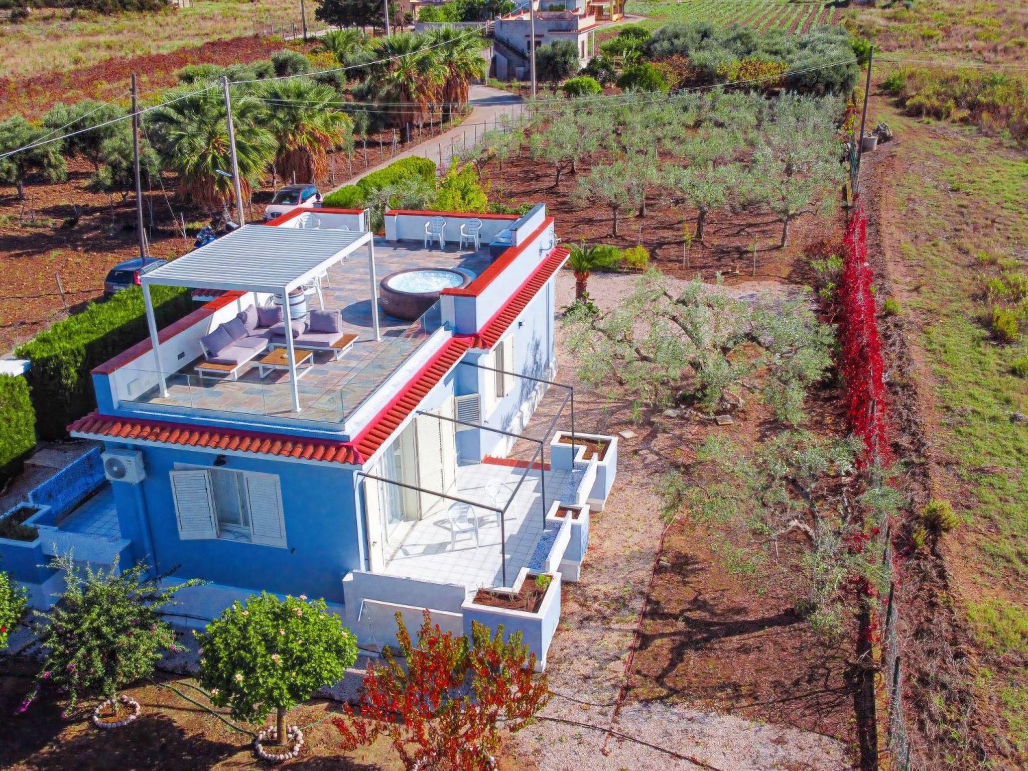 Das Haus ist neu, sauber, hell und verfügt über einen schönen Außenbereich, darunter eine wunderbare Terrasse mit Lounge, Herd und Jacuzzi. Außerdem bietet es ein unglaubliches Panorama auf das sizilianische Meer. Das Innere des Hauses verfügt über zwei Doppelzimmer, eines mit einem Queen-Size-Bett und ein Badezimmer, sowie eine Wohnküche. In allen Schlafzimmern und in der Wohnküche gibt es Klimaanlagen.