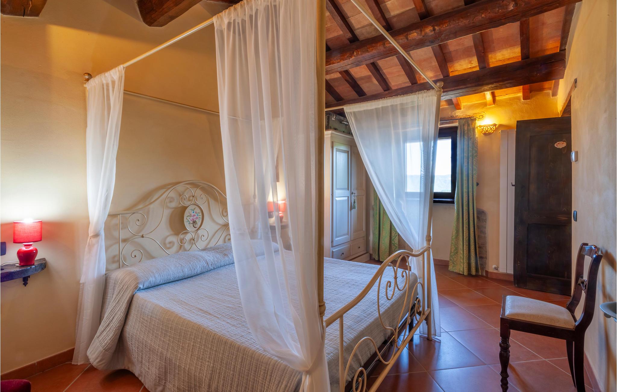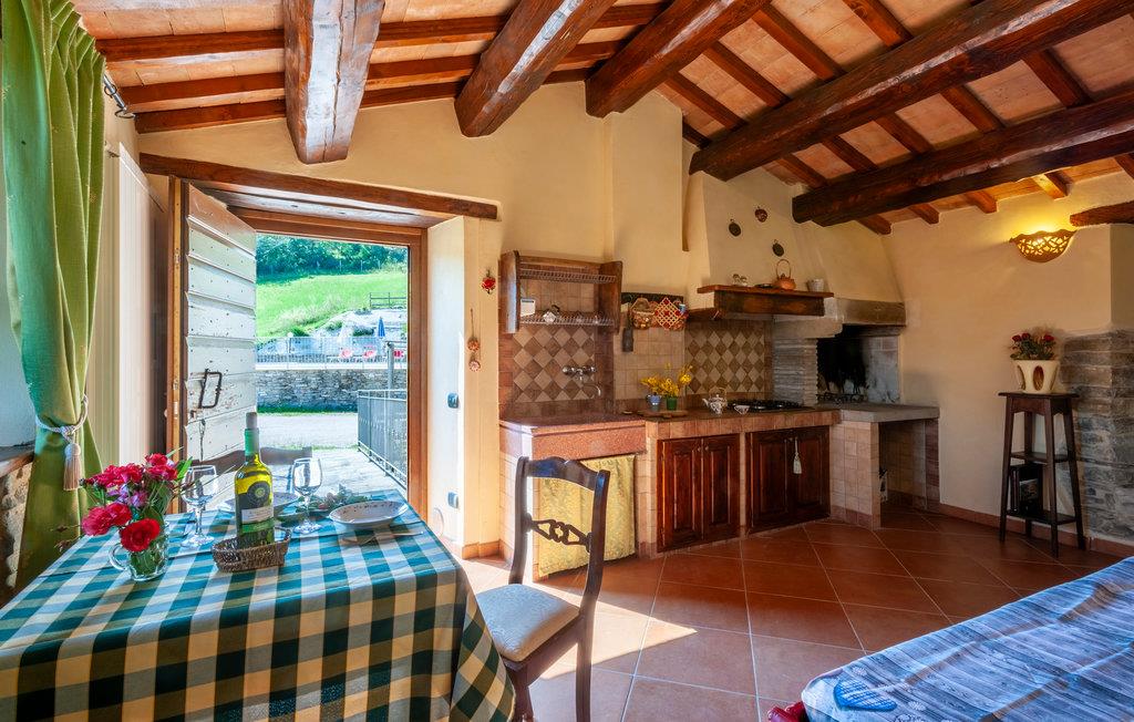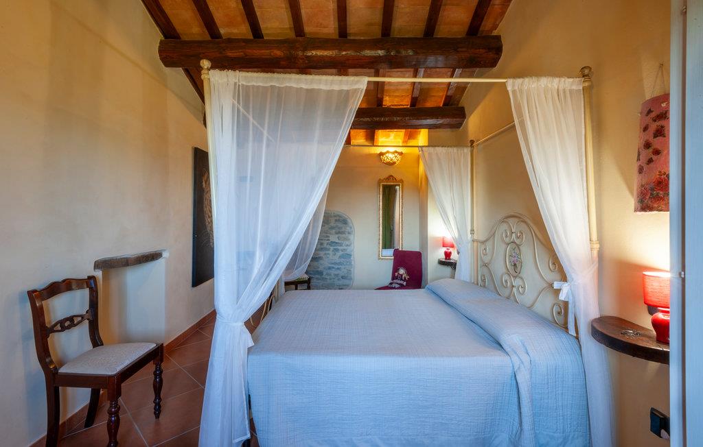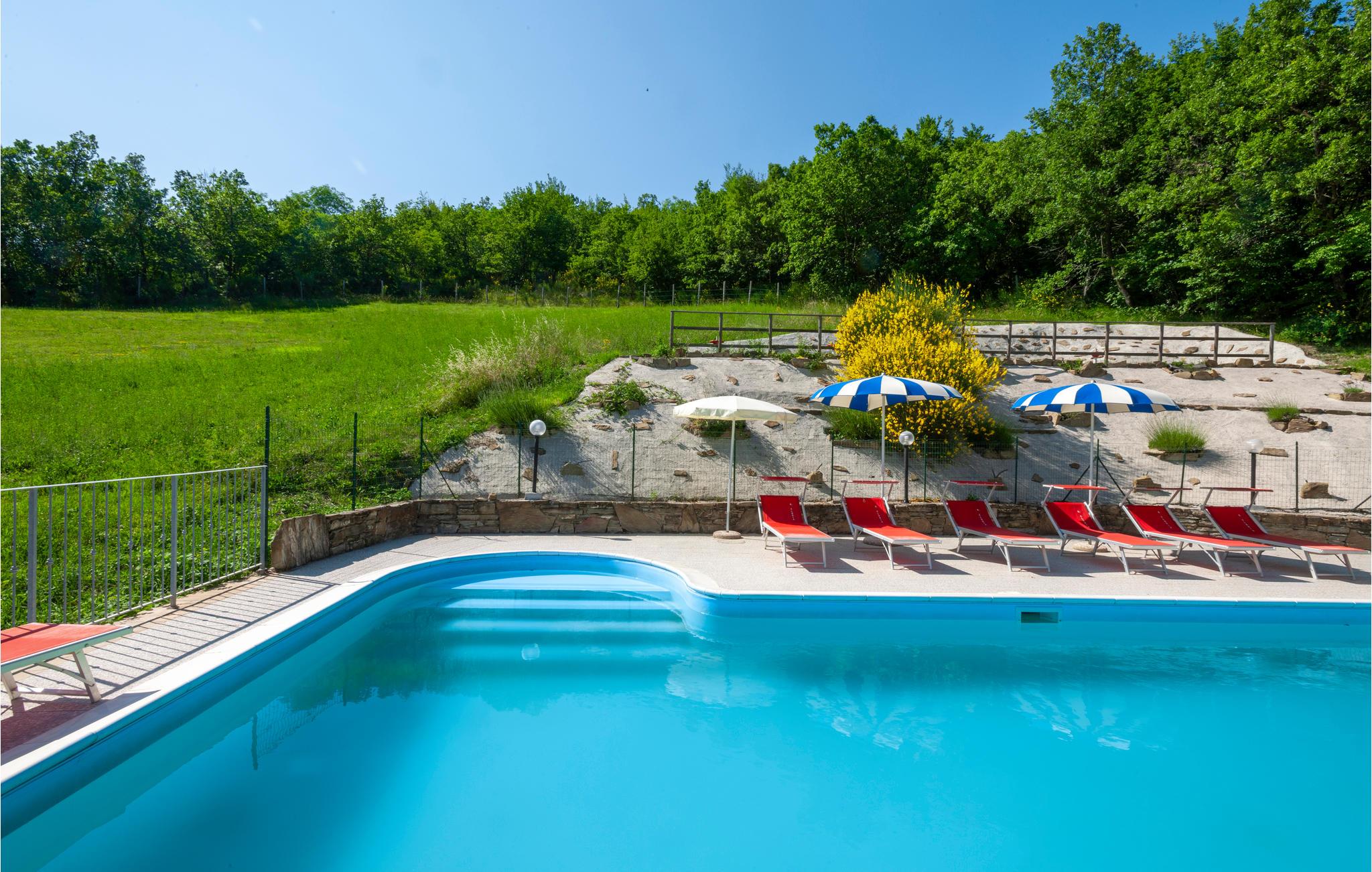 Etwa 6 km oberhalb von Mercatello sul Metauro liegt diese gemütliche Ferienwohnung mit Pool in romantischer Hügellage. Die Wohnung gehört zu einem kleinen Bio-Hof mit Tierhaltung; sie hat einen ebenerdigen Zugang zur Wohnküche, mit offenem Kamin und Schlafcouch (Etagenbetten); ein komfortables Bad (Dusche mit Wassermassage) und ein Schlafzimmer mit Baldachin-Bett. Vor der Wohnung gibt es einen privaten überdachten Sitzplatz; etwas oberhalb liegt der umzäunte Poolbereich mit Sonnenterrassen und Talblick (gemeinsam mit weiteren zwei Ferienwohnungen). – Die Eigentümerin bietet ihren Gästen auf Anfrage lokale Küche in der hauseigenen Trattoria, sowie biologische Produkte aus eigener Produktion. Von der Ferienwohnung können Sie direkt loswandern oder biken – etwa zur Badestelle im Wildbach (5 km) oder nach Mercatello sul Metauro, einer der schönsten mittelalterlichen Städte der Marken, mit Geschäften, Restaurants, Bars auf der Piazza. Spezialitäten der Gegend sind Steinpilze und Trüffelgerichte! Die Lage ist ideal für Erkundungen der sehenswerten Städte der Umgebung: Sant‘Angelo in Vado 10 km, Urbino 35 km, Sansepolcro 42 km oder für einen Badetag an der Adria (Küste bei Fano 70km). Unasphaltierte Zufahrt.