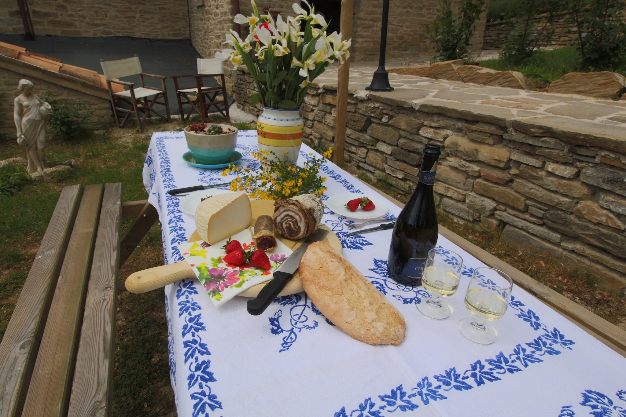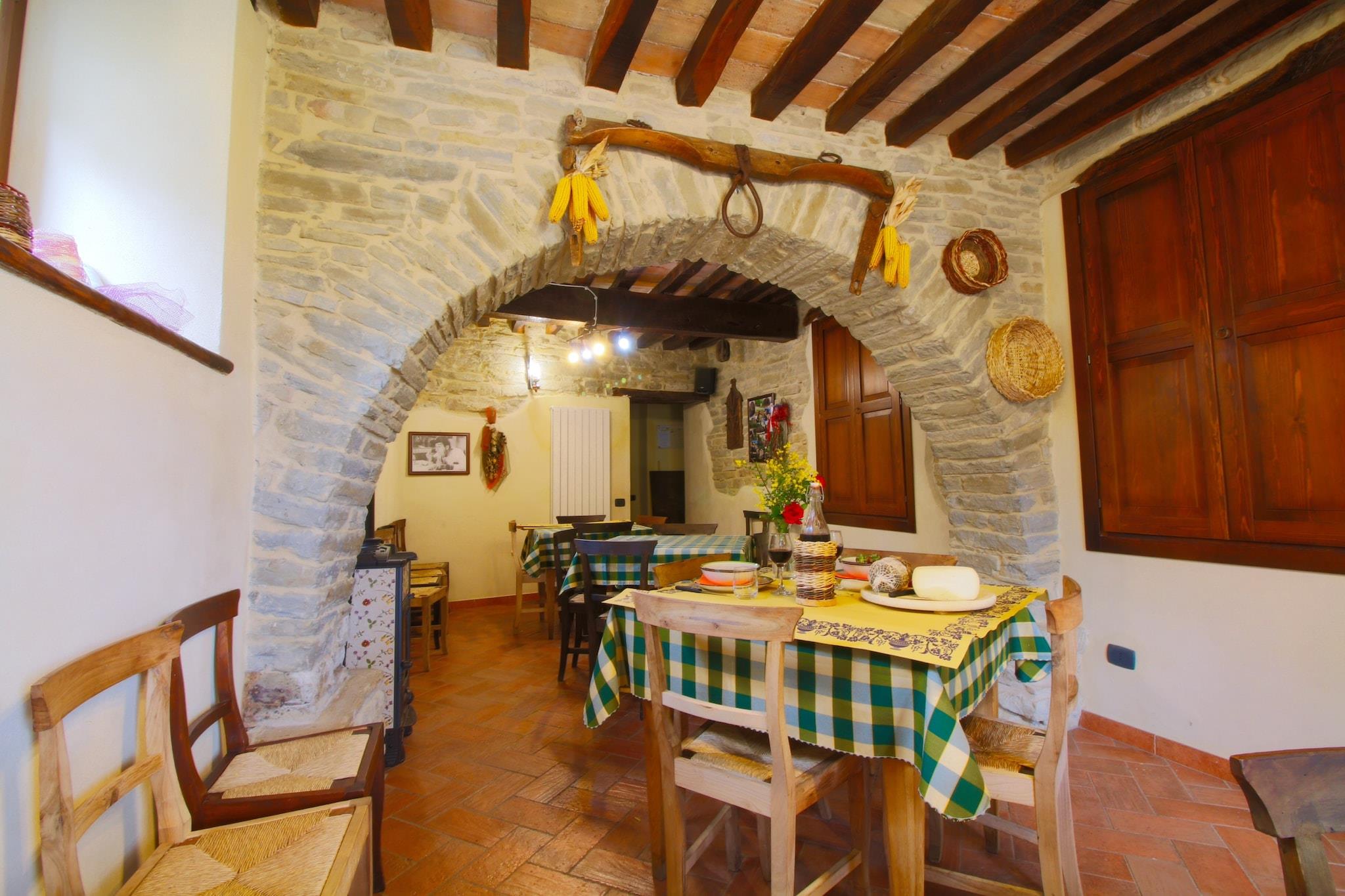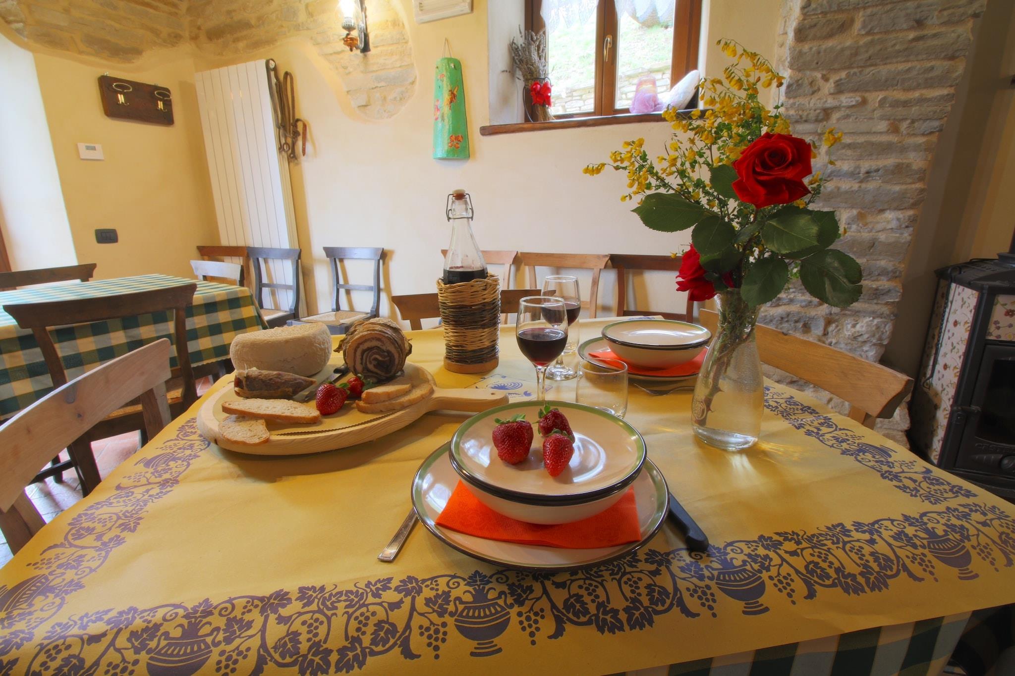 Dieses Bauernhaus stammt aus dem vierzehnten Jahrhundert und befindet sich in Mercatello an der Grenze zwischen Umbrien und der Toskana. Der Bauernhof liegt in den Hügeln in der Nähe von Massa Trabaria, ein Ableger des Apennin gelegen. Vom Ferienbauernhof hat man einen schönen Blick über die Wiesen und Wälder. Das alte Bauernhaus wurde renoviert und gibt es 3 Appartements für die Gäste. Sole Wohnung verfügt über eine geräumige Küche mit einem großen Kamin. Die Doppelzimmer sind geräumig und elegant eingerichtet mit schmiedeeisernen Betten und antiken Schränken. Die Atmosphäre ist gemütlich und rustikal. Es gibt einen schönen Pool, eine Bowlingbahn und ein Ort, wo man Bogenschießen können. Und im Restaurant, das nur für die Gäste des Agriturismo geöffnet ist, können Sie die lokale Küche probieren. Das Restaurant serviert hausgemachte Pasta, Focaccia, Pizza, Fleisch aus der eigenen Landwirtschaft und saisonalen Zutaten auf der Speisekarte. In diesem Betrieb können Sie die Natur, den Pool, die Region und das Restaurant genießen. Es sind nur maximal drei kleine Haustiere erlaubt; mittlere und große Haustiere sind nicht erlaubt.