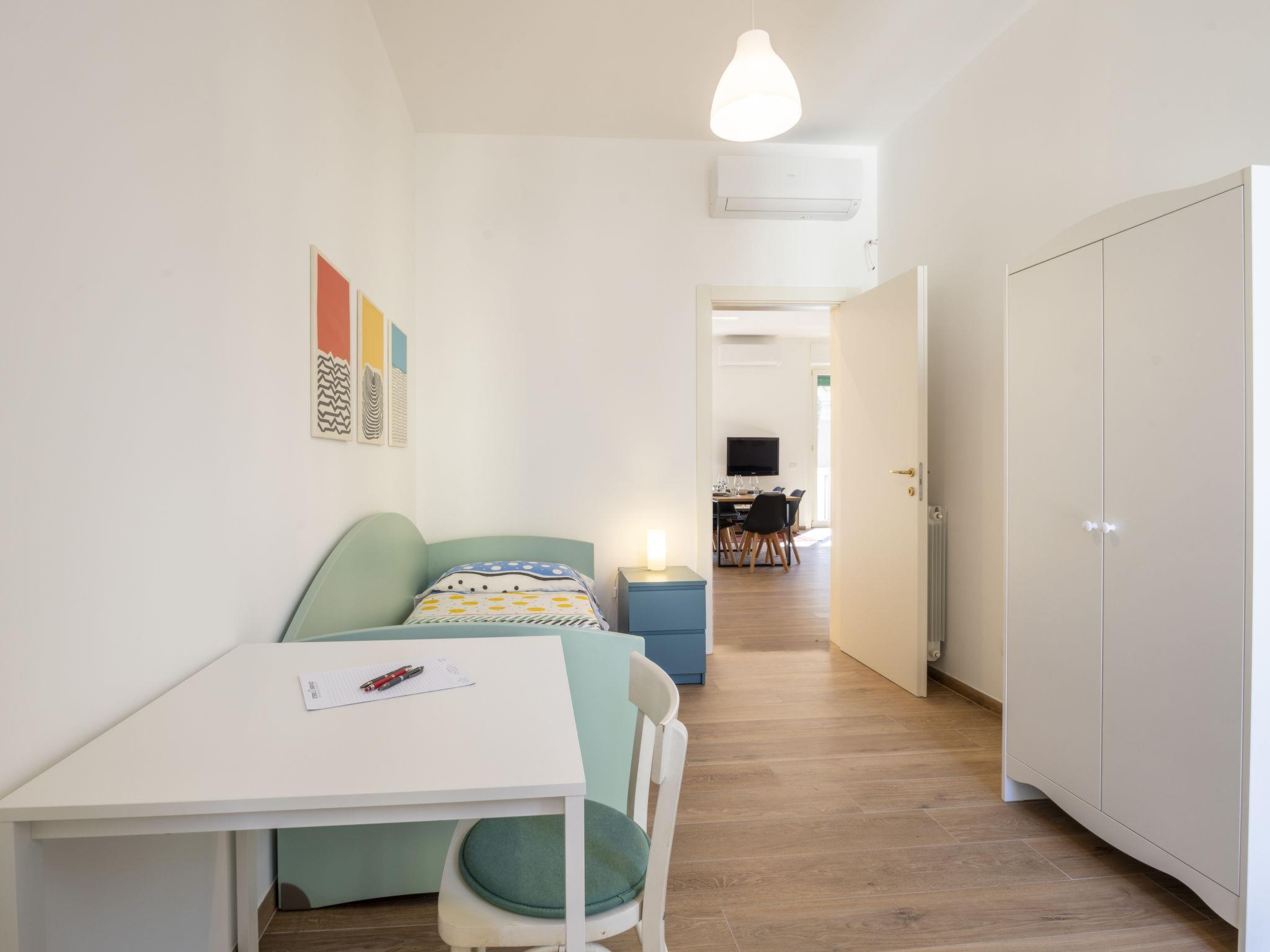 3-Zimmer-Wohnung 101 m2 im 3. Stock. Geräumig und hell, vollständig renoviert im Jahre 2025, modern und stilvoll eingerichtet: grosses Wohn-/Esszimmer mit 1 Diwanbett, Esstisch, TV, Radio, CD und Stereoanlage. Ausgang zum Balkon. 1 Zimmer mit 1 Bett, 1 Ausziehbett und Bad. Ausgang zum Balkon. 1 Doppelzimmer mit begehbarem Kleiderschrank mit TV. Gepäckraum. Grosse Kochnische (Backofen, Geschirrspüler, 4 Induktionskochplatten, Toaster, Wasserkocher, Tiefkühler, elektrische Kaffeemaschine, Kapseln für die Kaffeemaschine (Nespresso) extra, Kombinationsmikrowelle). Dusche/Bidet/WC. Heizung, Klimaanlage. 2 Balkone. Zur Verfügung: Waschmaschine, Bügeleisen, Kinderhochstuhl, Babybett, Haartrockner. Internet (WLAN, gratis). Bitte beachten: Nichtraucher-Unterkunft. Feuerlöscher. IT015146C268UZSIN2